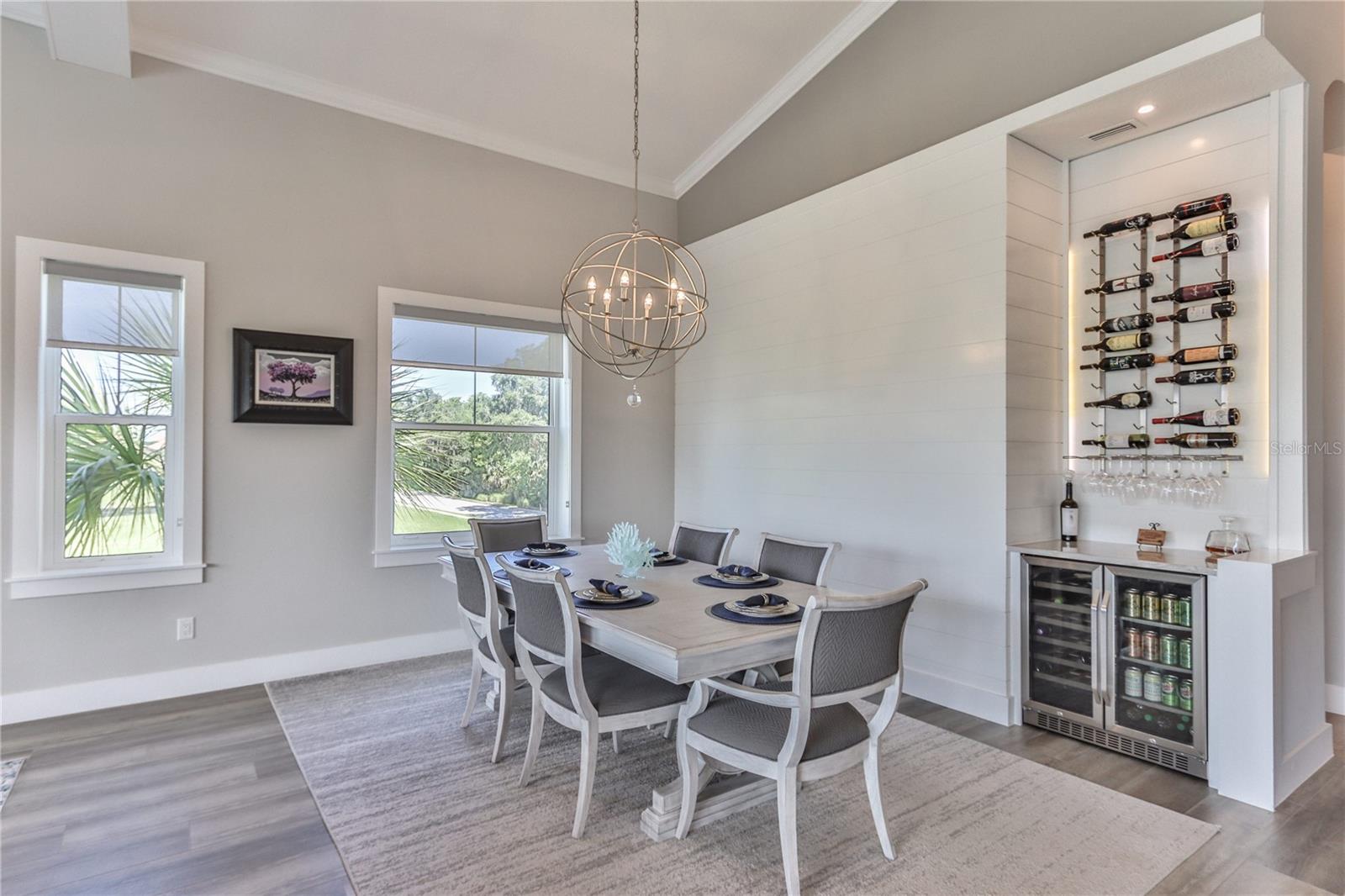 Elegant contemporary waterfront living with dock and Boat lift at Hammock Beach’s Yacht Harbor Village. This one of a kind custom waterfront pool home is a contemporary masterpiece, crafted by the esteemed Del Construction. The property boasts a brand new dock and boat lift located in the exclusive community of Hammock Beach’s Yacht Harbor Village which offers unparalleled luxury and 24 hour gated security. Upon entry of this exquisite waterfront home, one is greeted by sleek lines, modern aesthetics, and opulent finishes. On the main floor you will find bright custom large imported gloss tile flooring with two bedrooms, game room/living area with wet bar leading out to the pool deck, pool, water front and boat dock. With a downstairs laundry for guests and separate bathrooms, your company will feel as if they have their own private vacation home downstairs and easy access to all outdoor activities including, riding trails, tennis, pickle. ball, and golf. Bring your groceries upstairs in your elevator to the second floor which has stunning views of the intracoastal, marina, canal, tennis and active lifestyle community. Upon entering the second floor you will be met with an opulent spacious living plan with a living, dining and kitchen combination which meets all entertaining needs and comfort for any size family. The elegant kitchen adorns an oversized island with large walk-in pantry, beautiful cabinetry, an abundance of storage, commercial size double oven with gas stove, top of the line appliances and soaring vaulted ceilings. Adjacent, the living area boasts an electric fireplace, seamlessly connected to the main kitchen and dining room—making it perfect for grand soirees or intimate affairs. This spacious living and dining area makes it easy to entertain with easy access to a wine wall, to grab your favorite bottle and extra fridge for beverage storage. Beautiful shiplap walls and top of the line upgraded vinyl wood flooring makes cleaning a breeze and adds a touch of clean modern farmhouse to the décor. Spend evenings outside on the lanai, overlooking the water, cooking on the grill or relaxing to view some of the most spectacular sunsets in Florida. The primary suite is massive with two barn doors leading to an enormous his and her closet space and women’s separate vanity, with washer and dryer inside the closet, making it easy to do laundry in the comfort of your own space. The oversized stunning master bath comes complete with a large walk in shower, separate vanities, and stand alone soaking tub. Utilize the large upstairs 4 th bedroom as an executive office or flex room right near the access to the elevator and stairs. You will never want to move again when you have everything you have always dreamed of in a home and more. Recently built in 2019, you’ll have the peace of mind at this residence as it boasts an all-block construction, fortified with premier PGT hurricane-impact windows. Living here is akin to an endless vacation. Potential membership at the award-winning Hammock Beach Club avails you of elite amenities—from gourmet dining, invigorating pools, a lazy river, golf, tennis, to a marina boat slip. Whether you choose to stroll, bike, or drive a golf cart, the beach, club, and a plethora of recreational options await. Yacht Harbor Village, a part of Hammock Beach, is a tapestry of biking trails, water pursuits, fishing, and more, all in proximity to local boutiques and eateries.