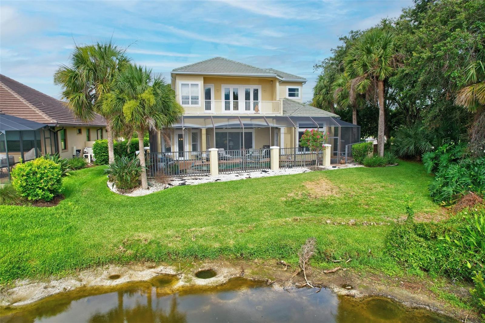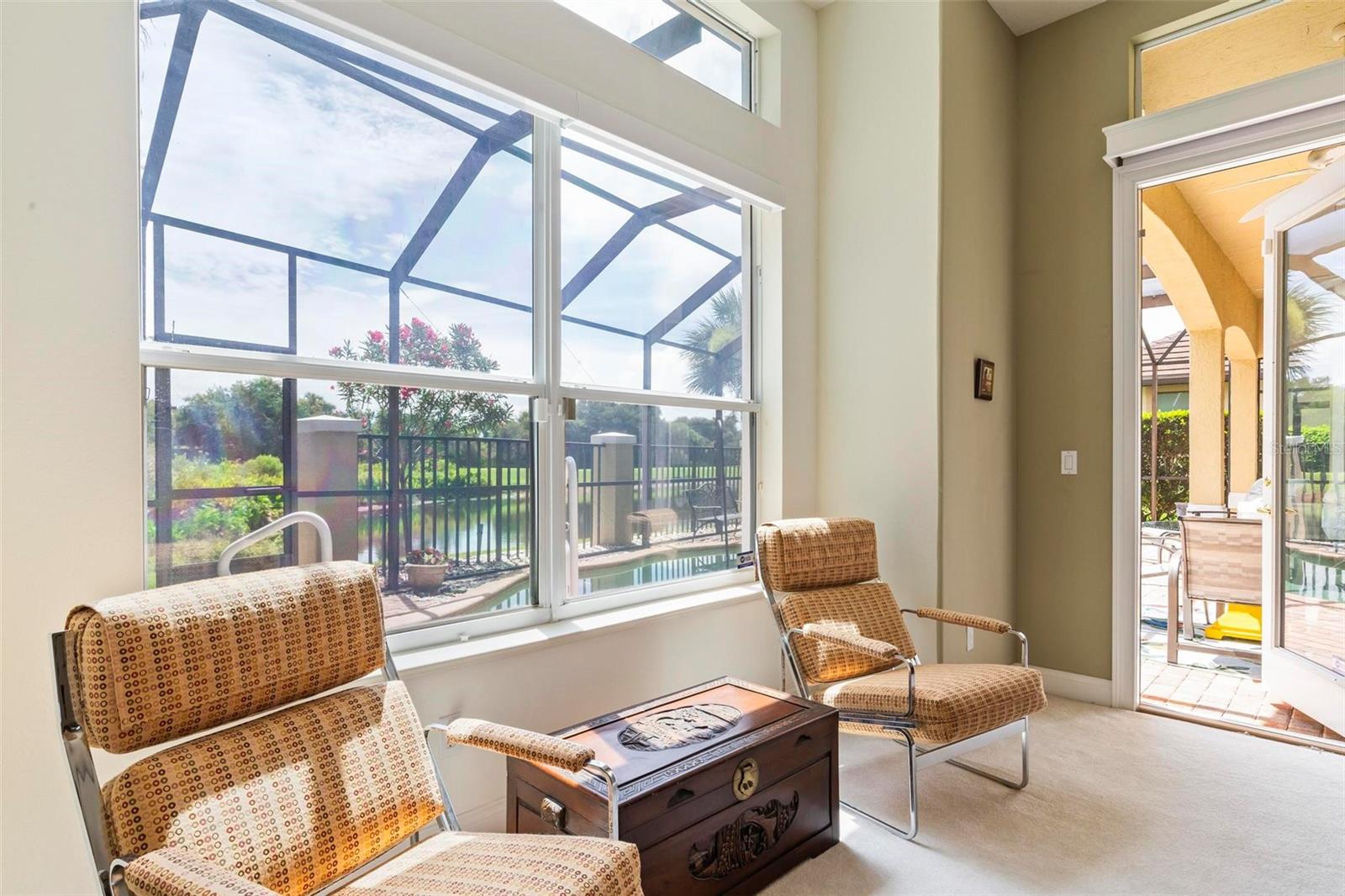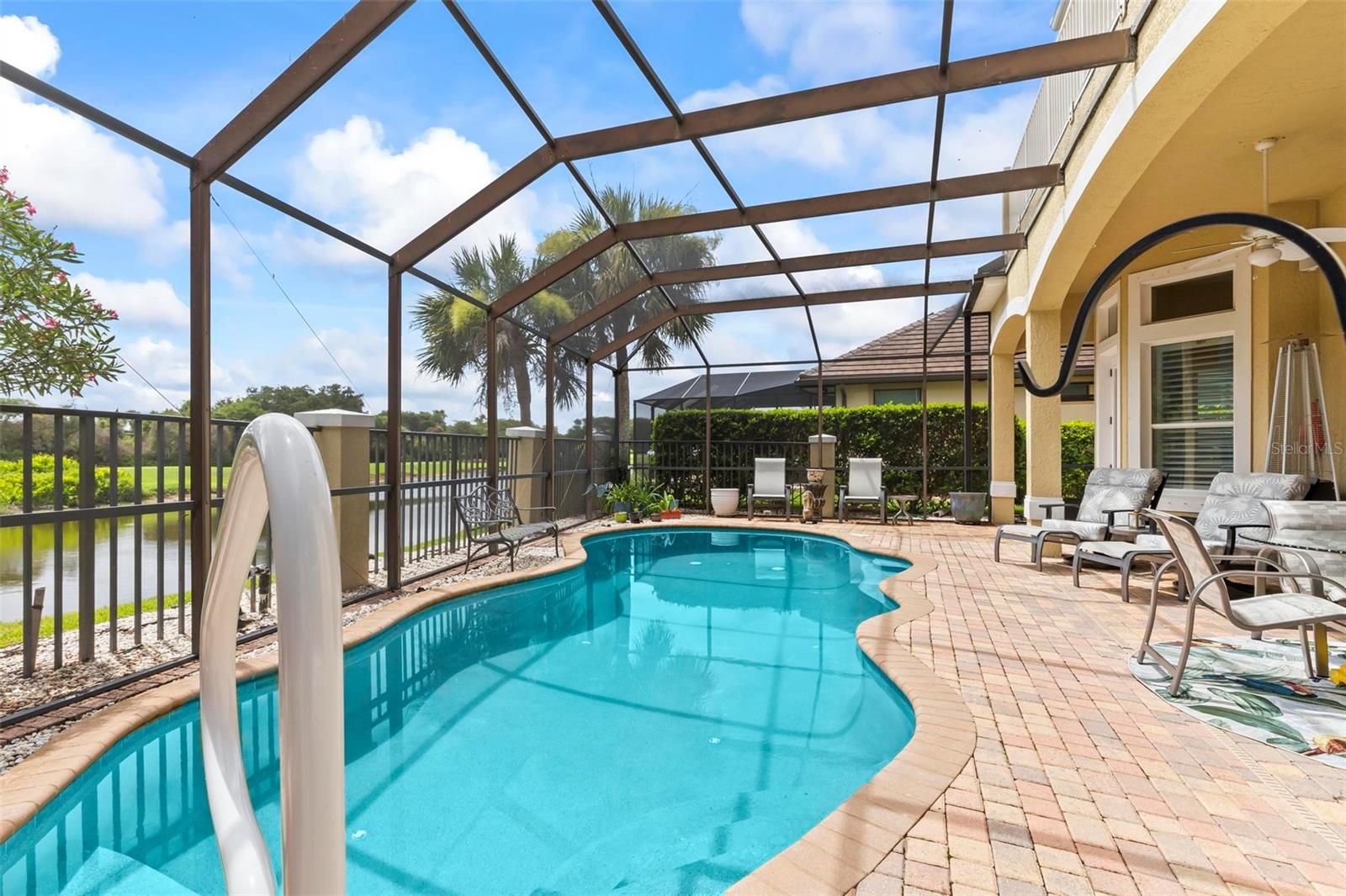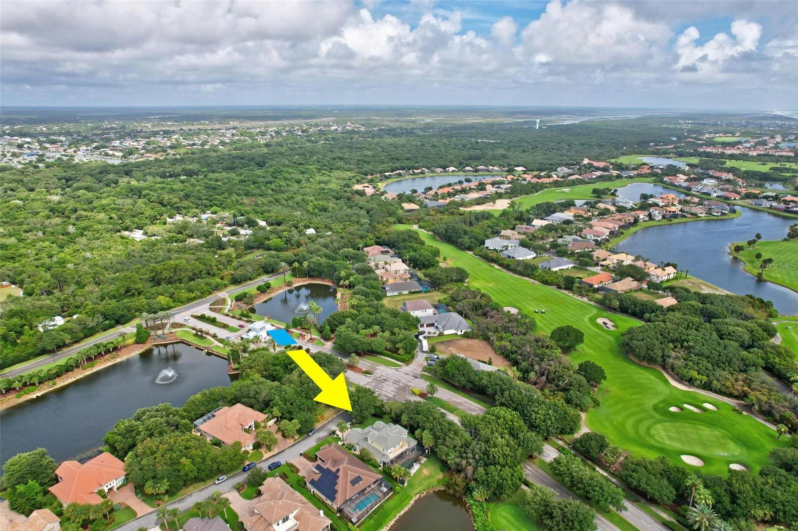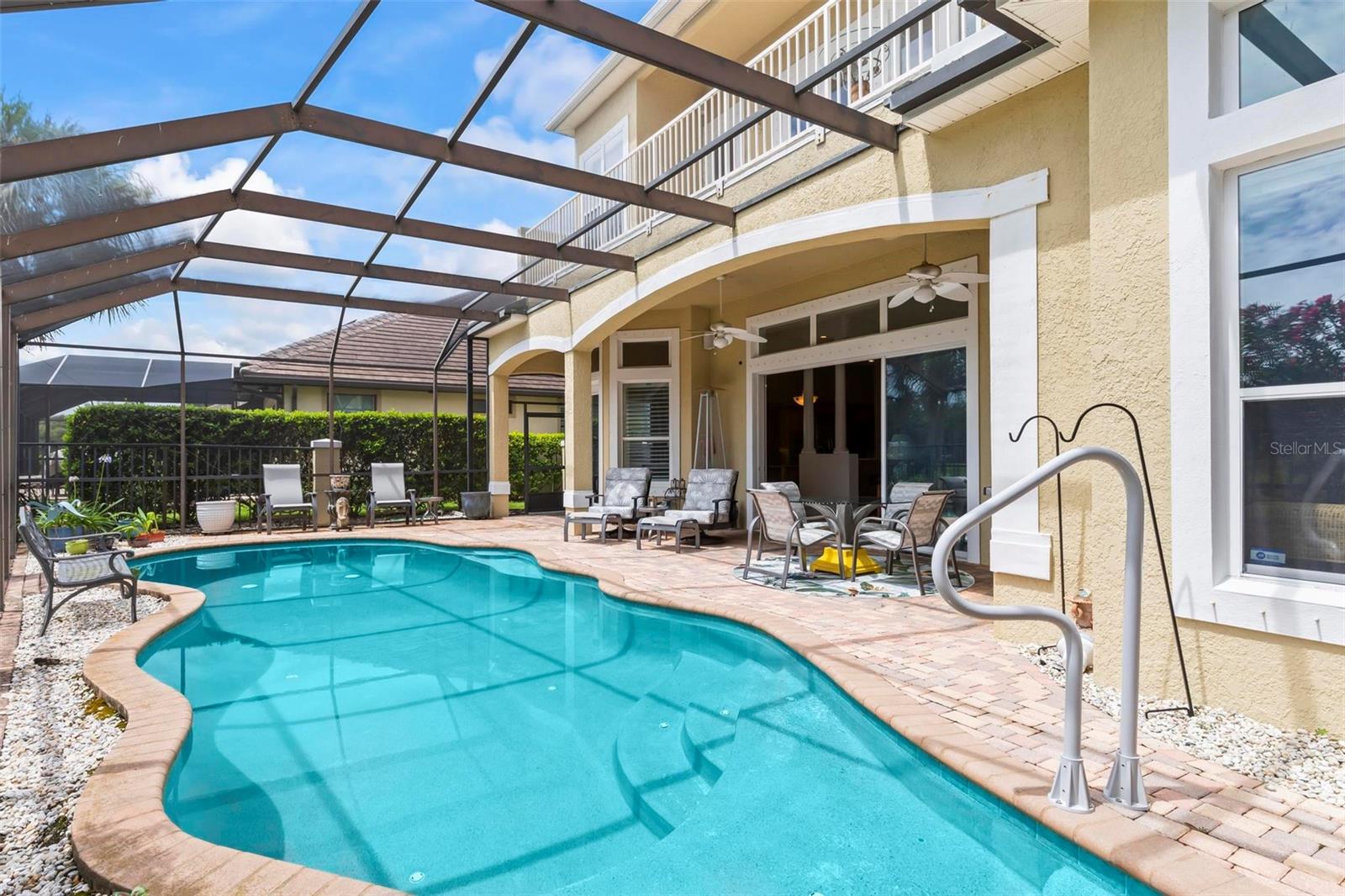 Welcome to your dream pool home in Ocean Hammock! This stunning residence is conveniently situated on the 4th fairway lake of the Ocean Course at Hammock beach. Boasting over 3,500 sq ft of luxurious living space, 3 bedrooms, 2.5 bathrooms, and a versatile office, this premier property provides endless oppotunity. As you arrive, you'll be captivated by the elegant tile roof and paver driveway. Step through the French doors into a beautiful inlay tile foyer, where the spacious study with hardwood floors awaits on your right—perfect as a potential 4th bedroom. The open and airy living space is bathed in natural sunlight, thanks to the numerous windows and sliding glass doors. These ceilings soar, climbing high with tray in the kitchen adorned with crown molding. Decorative columns on either end of the countertop bar enhance the grandeur. The living area seamlessly flows into the gourmet kitchen, featuring an eat-in nook, plantation shutters, large island, granite countertops, tile backsplash, wine refrigerator, stainless steel appliances, built-in oven, and a separate workspace leading to the laundry area. The main floor also houses the luxurious primary suite with plush carpet, offering a private retreat. The exquisite en suite bathroom includes a soaking tub, floor-to-ceiling tiled walk-in shower, expansive vanity with ample storage, large walk-in closet, and separate water room. Both the master suite and the living room provide access to the screened-in patio, leading to the serene pool and spa area with wonderful lake views. Up the hardwood stairs, the second floor offers a spacious living area with a dry bar, a bathroom with dual vanities, and two bedrooms—one with balcony access. The lush carpeted floors add warmth and comfort to this level. Enjoy the tranquility and beauty of Ocean Hammock from the privacy of your balcony or poolside patio. This exceptional property is the perfect blend of elegance, comfort, and style. Make it yours today and experience the best of Florida living. * Seller is offering a $10,000 credit for pool resurfacing *