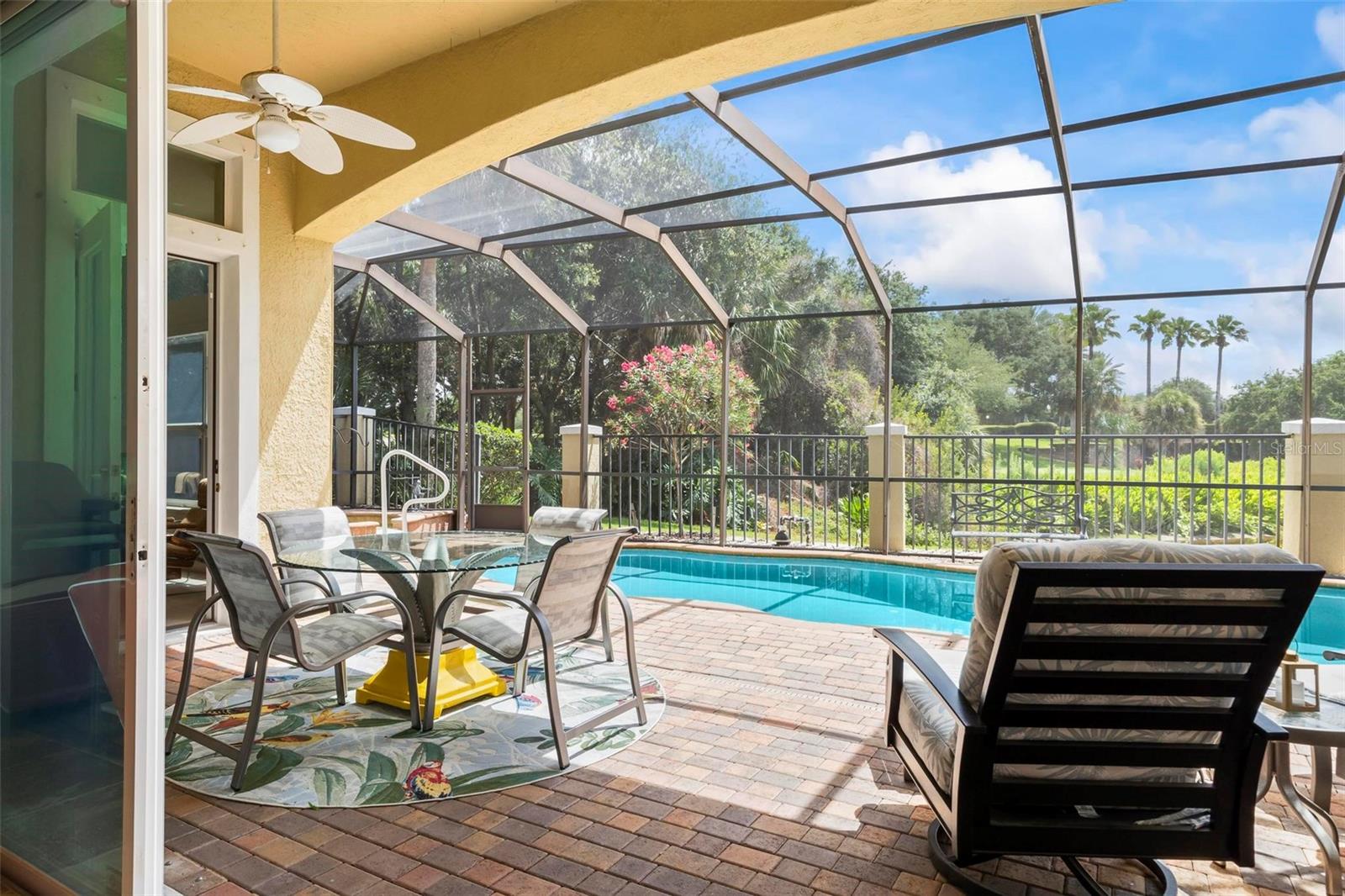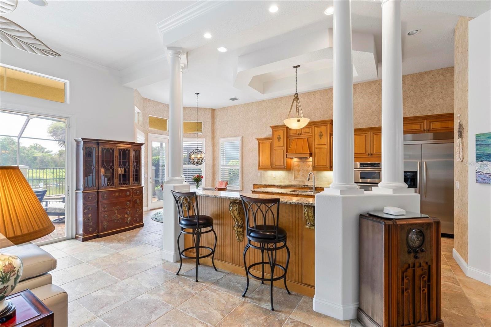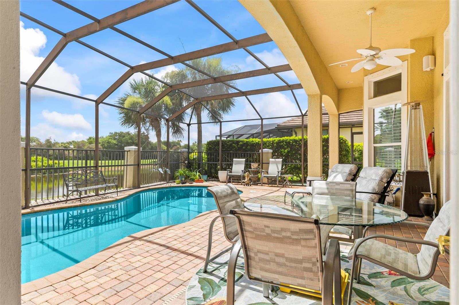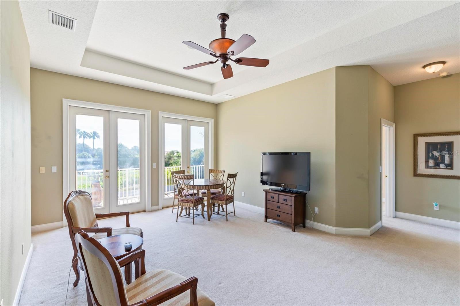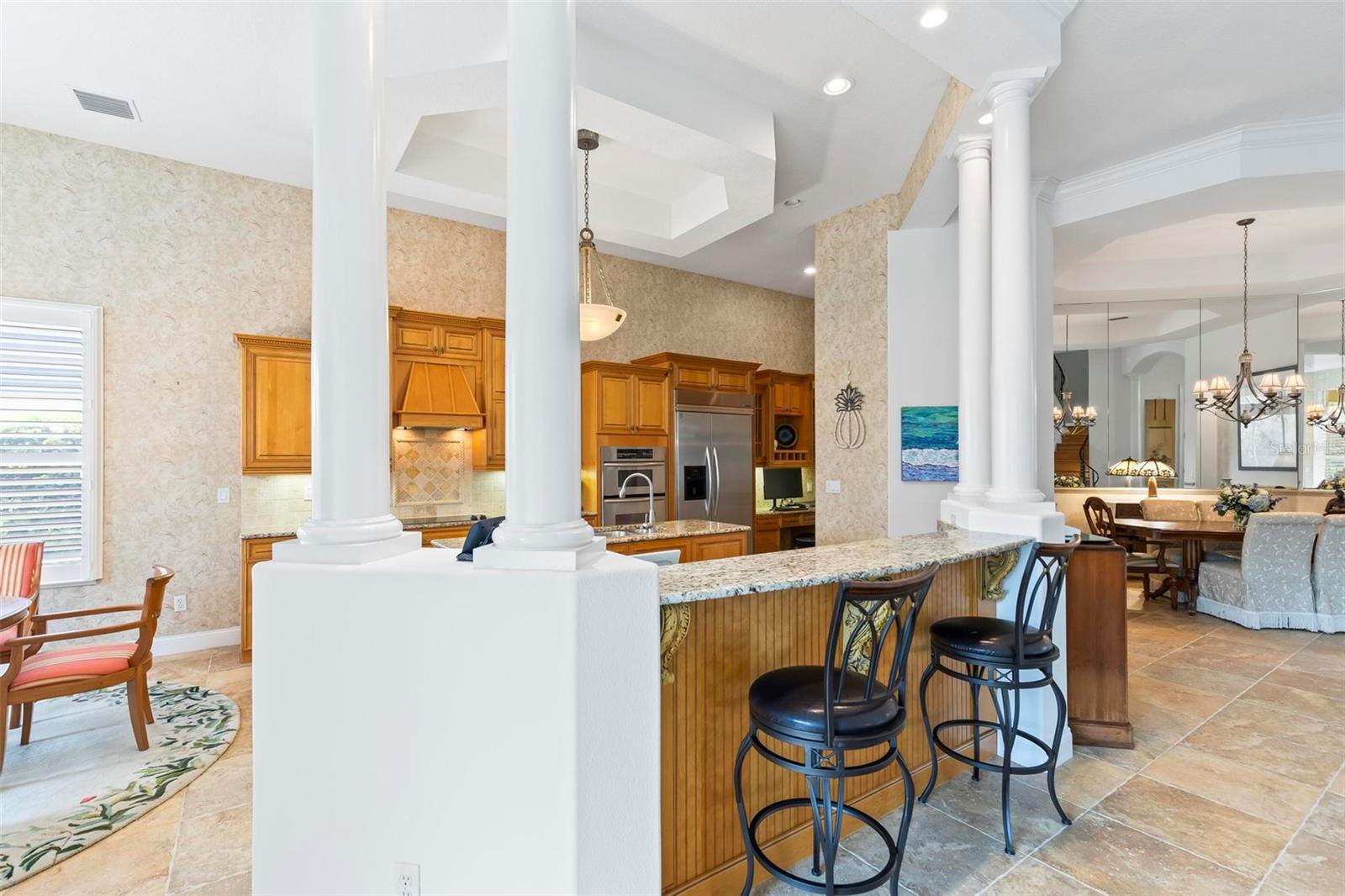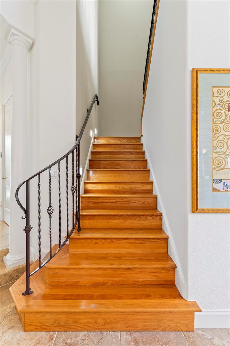 Welcome to your dream pool home in Ocean Hammock! This stunning residence is conveniently situated on the 4th fairway lake of the Ocean Course at Hammock beach. Boasting over 3,500 sq ft of luxurious living space, 3 bedrooms, 2.5 bathrooms, and a versatile office, this premier property provides endless oppotunity. As you arrive, you'll be captivated by the elegant tile roof and paver driveway. Step through the French doors into a beautiful inlay tile foyer, where the spacious study with hardwood floors awaits on your right—perfect as a potential 4th bedroom. The open and airy living space is bathed in natural sunlight, thanks to the numerous windows and sliding glass doors. These ceilings soar, climbing high with tray in the kitchen adorned with crown molding. Decorative columns on either end of the countertop bar enhance the grandeur. The living area seamlessly flows into the gourmet kitchen, featuring an eat-in nook, plantation shutters, large island, granite countertops, tile backsplash, wine refrigerator, stainless steel appliances, built-in oven, and a separate workspace leading to the laundry area. The main floor also houses the luxurious primary suite with plush carpet, offering a private retreat. The exquisite en suite bathroom includes a soaking tub, floor-to-ceiling tiled walk-in shower, expansive vanity with ample storage, large walk-in closet, and separate water room. Both the master suite and the living room provide access to the screened-in patio, leading to the serene pool and spa area with wonderful lake views. Up the hardwood stairs, the second floor offers a spacious living area with a dry bar, a bathroom with dual vanities, and two bedrooms—one with balcony access. The lush carpeted floors add warmth and comfort to this level. Enjoy the tranquility and beauty of Ocean Hammock from the privacy of your balcony or poolside patio. This exceptional property is the perfect blend of elegance, comfort, and style. Make it yours today and experience the best of Florida living. * Seller is offering a $10,000 credit for pool resurfacing *