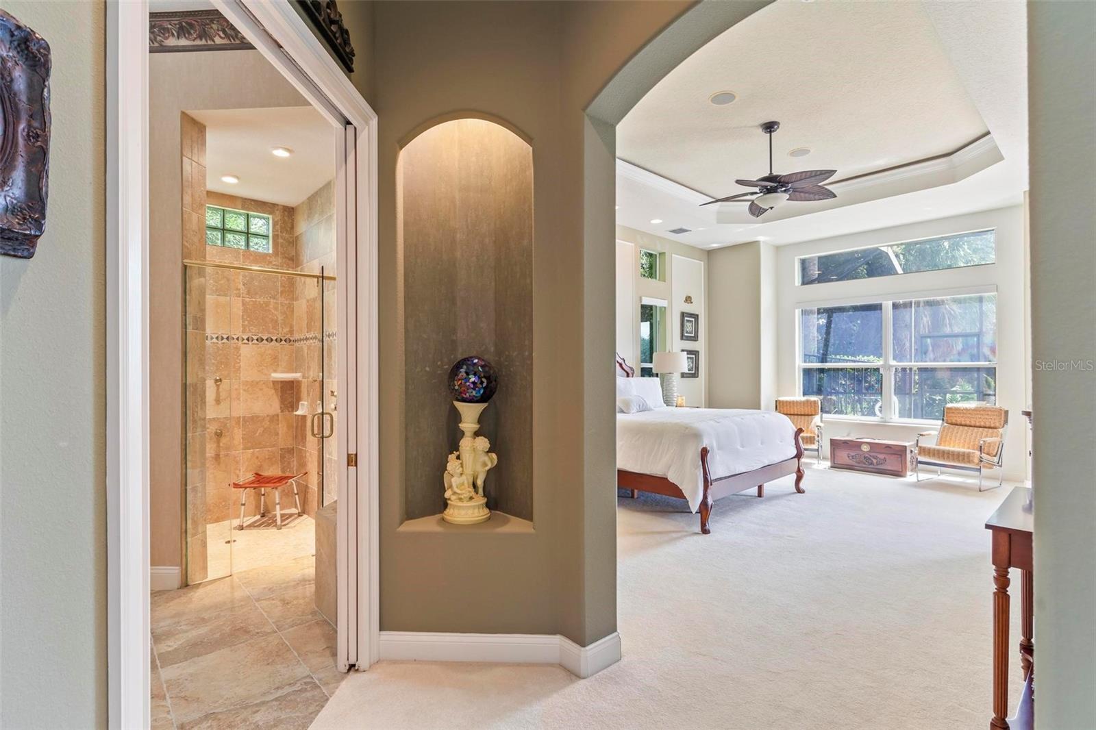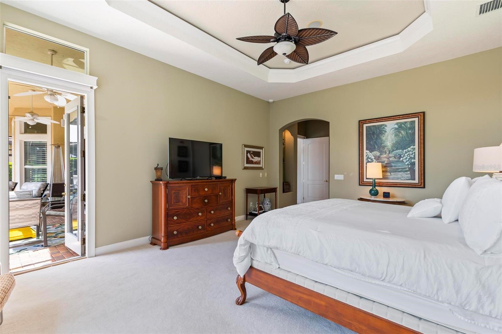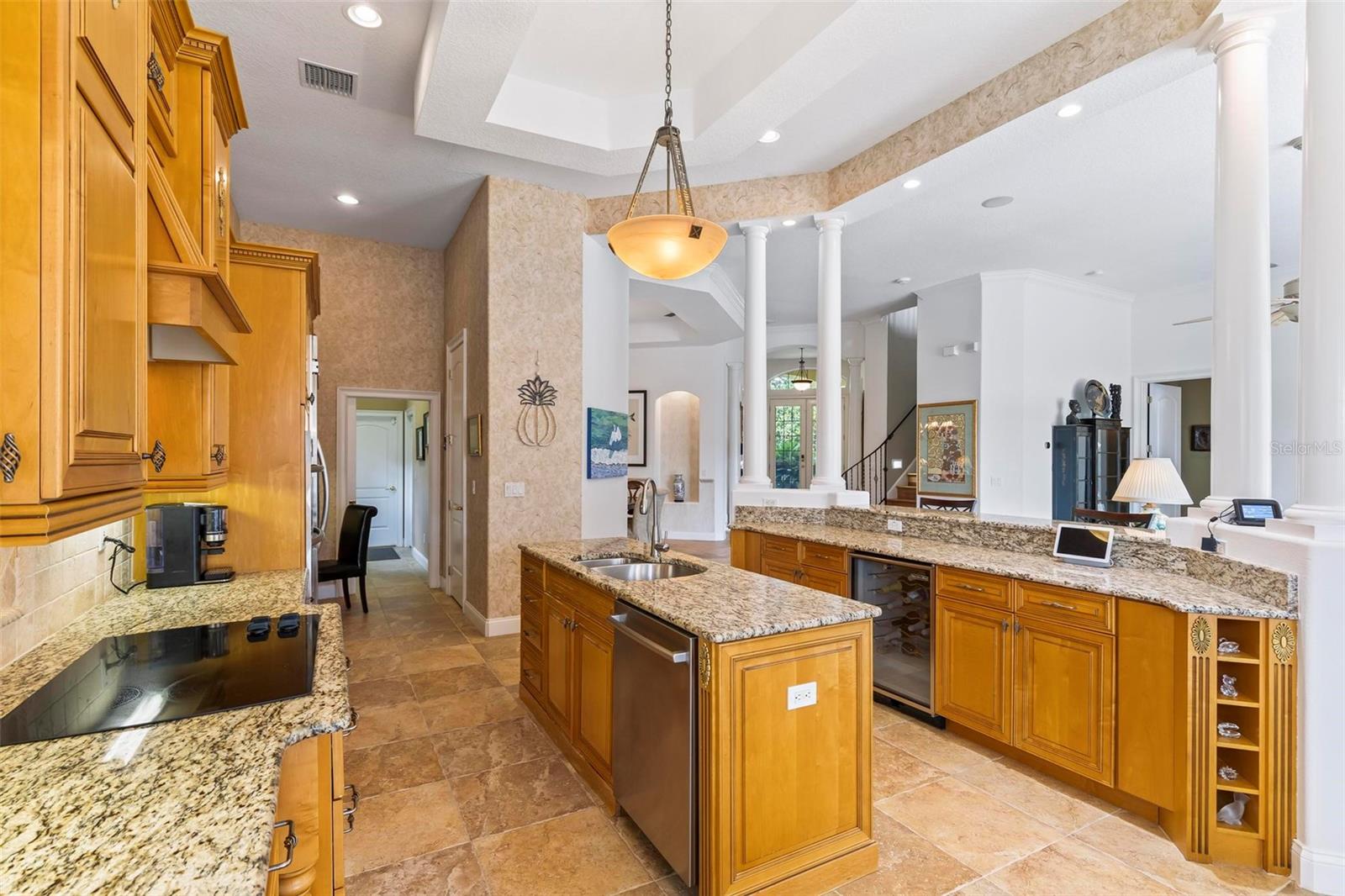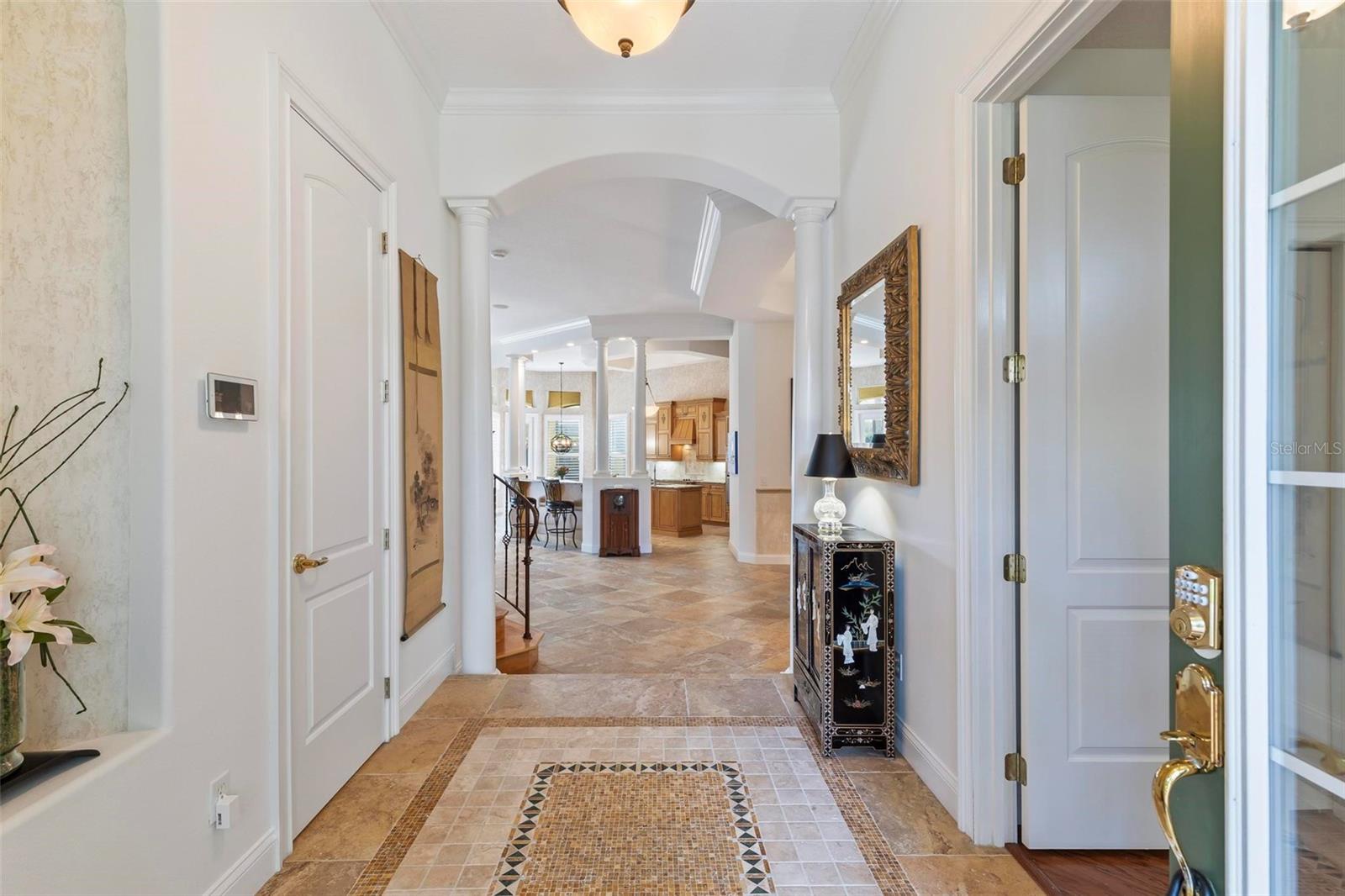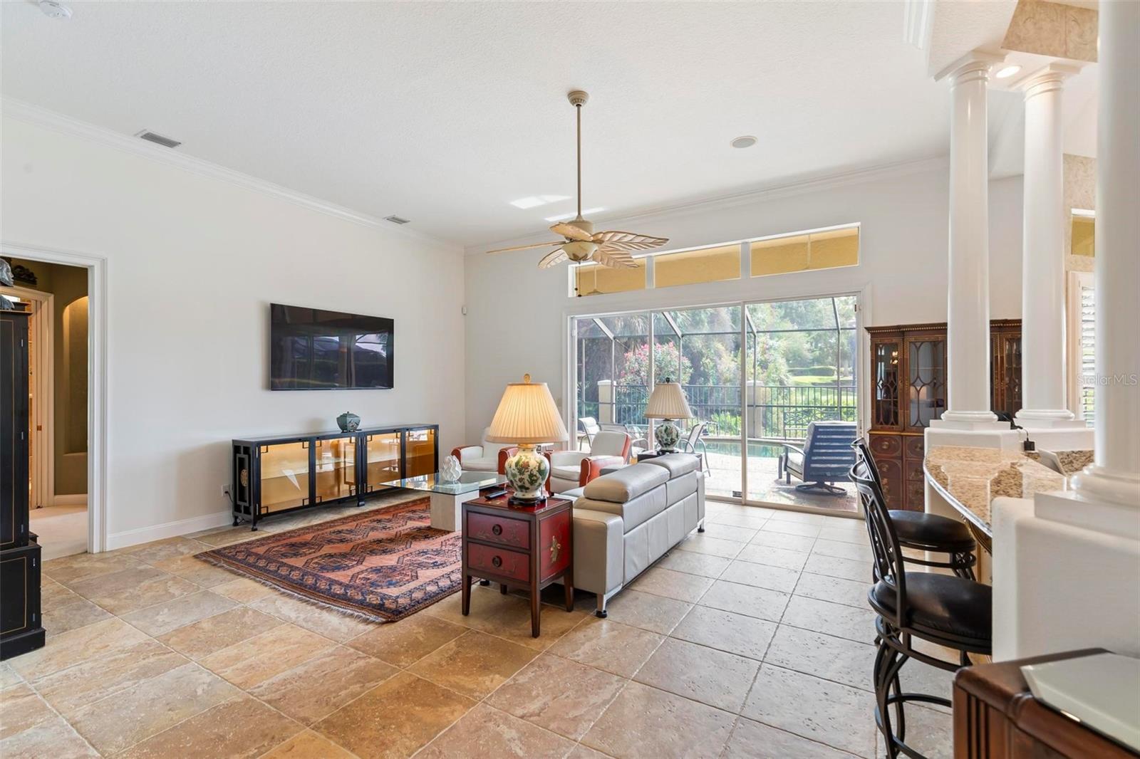 Welcome to your dream pool home in Ocean Hammock! This stunning residence is conveniently situated on the 4th fairway lake of the Ocean Course at Hammock beach. Boasting over 3,500 sq ft of luxurious living space, 3 bedrooms, 2.5 bathrooms, and a versatile office, this premier property provides endless oppotunity. As you arrive, you'll be captivated by the elegant tile roof and paver driveway. Step through the French doors into a beautiful inlay tile foyer, where the spacious study with hardwood floors awaits on your right—perfect as a potential 4th bedroom. The open and airy living space is bathed in natural sunlight, thanks to the numerous windows and sliding glass doors. These ceilings soar, climbing high with tray in the kitchen adorned with crown molding. Decorative columns on either end of the countertop bar enhance the grandeur. The living area seamlessly flows into the gourmet kitchen, featuring an eat-in nook, plantation shutters, large island, granite countertops, tile backsplash, wine refrigerator, stainless steel appliances, built-in oven, and a separate workspace leading to the laundry area. The main floor also houses the luxurious primary suite with plush carpet, offering a private retreat. The exquisite en suite bathroom includes a soaking tub, floor-to-ceiling tiled walk-in shower, expansive vanity with ample storage, large walk-in closet, and separate water room. Both the master suite and the living room provide access to the screened-in patio, leading to the serene pool and spa area with wonderful lake views. Up the hardwood stairs, the second floor offers a spacious living area with a dry bar, a bathroom with dual vanities, and two bedrooms—one with balcony access. The lush carpeted floors add warmth and comfort to this level. Enjoy the tranquility and beauty of Ocean Hammock from the privacy of your balcony or poolside patio. This exceptional property is the perfect blend of elegance, comfort, and style. Make it yours today and experience the best of Florida living. * Seller is offering a $10,000 credit for pool resurfacing *