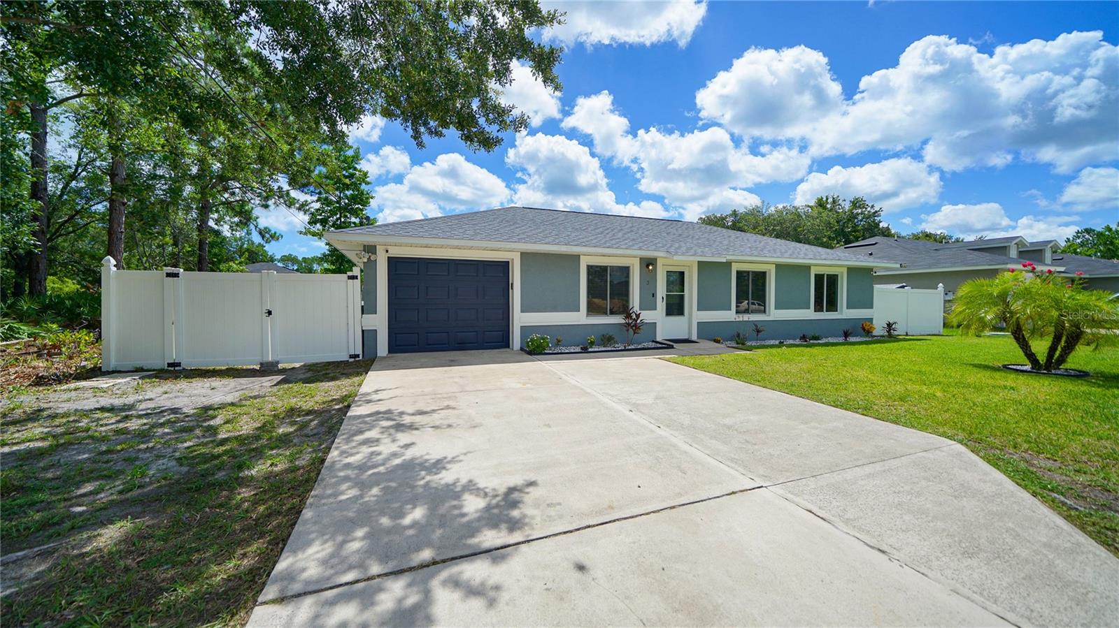 Discover the charm of this meticulously maintained concrete block 3-bedroom, 2-bathroom home, perfect for first-time homeowners! Featuring a modern kitchen with stainless steel appliances, updated bathrooms, and no carpet throughout, this residence is move-in ready. The exterior boasts a fresh coat of paint, and the 2021 roof ensures peace of mind. Enjoy the expansive, fully fenced backyard, perfect for outdoor activities and entertaining. Conveniently located, just a 5-minute drive to Publix, 10 minutes to Advent Health Hospital, and 15 minutes to Flagler Beach, making this home ideally situated for all your needs! All information pertaining to the property is deemed reliable, but not guaranteed. Information to be verified by the Buyer. Be advised that cameras may exist recording audio and video inside/outside the property, such as ring doorbells.