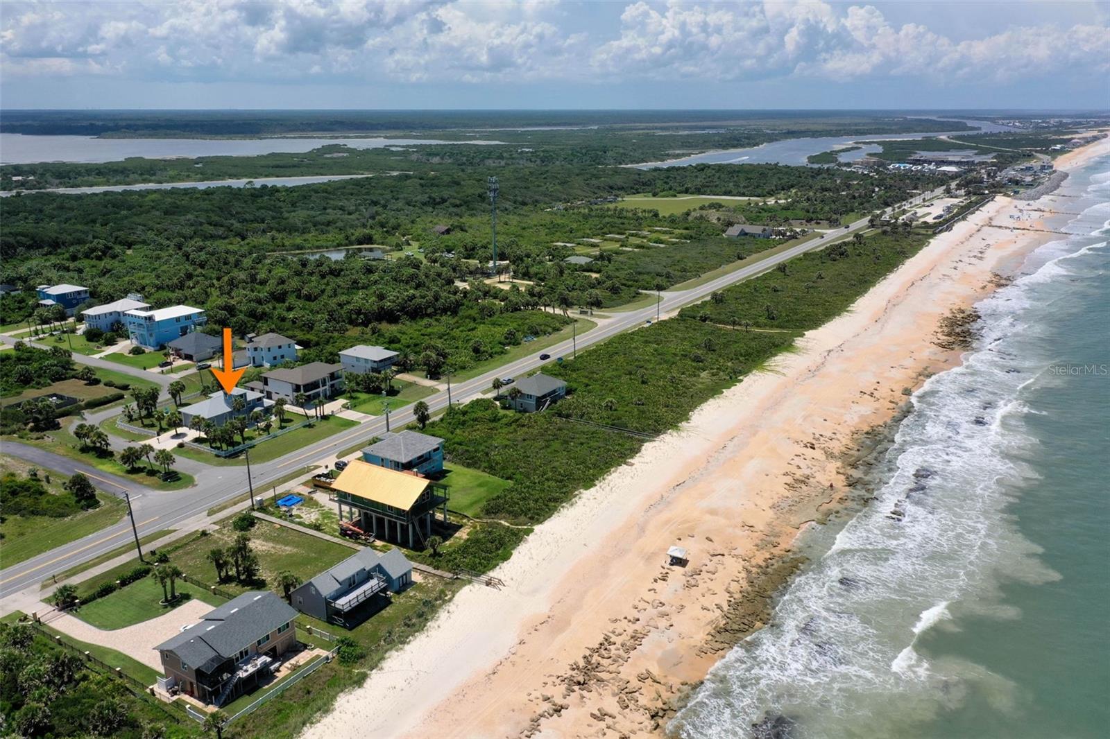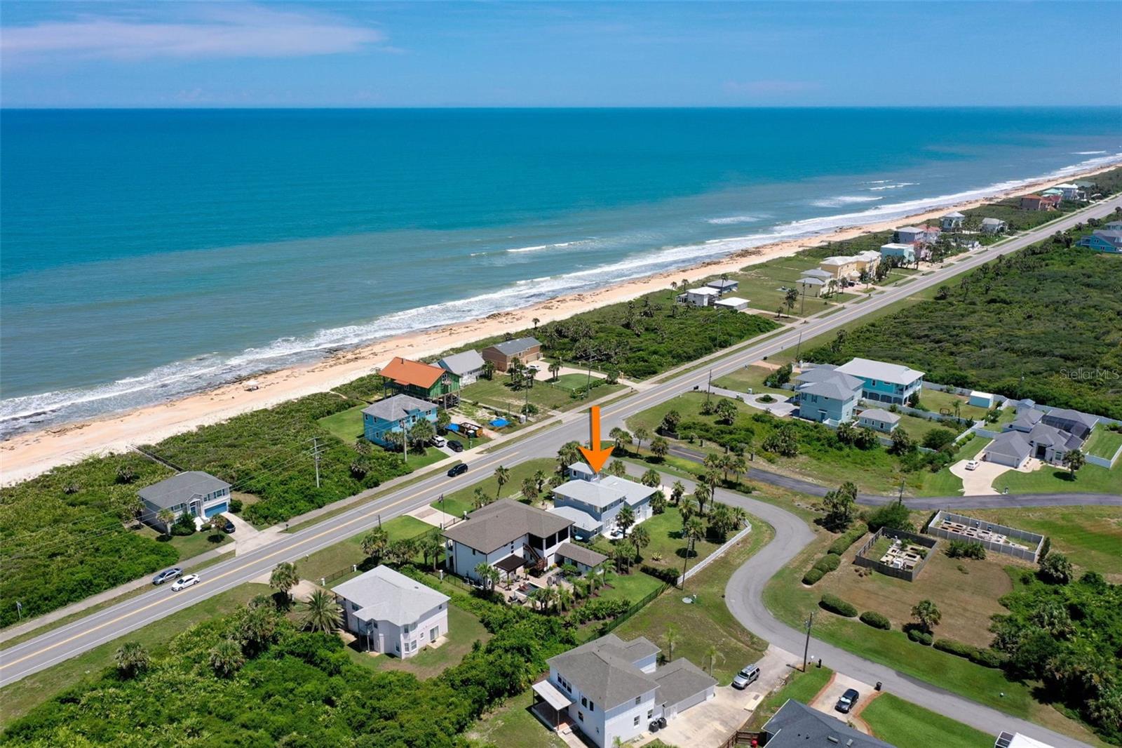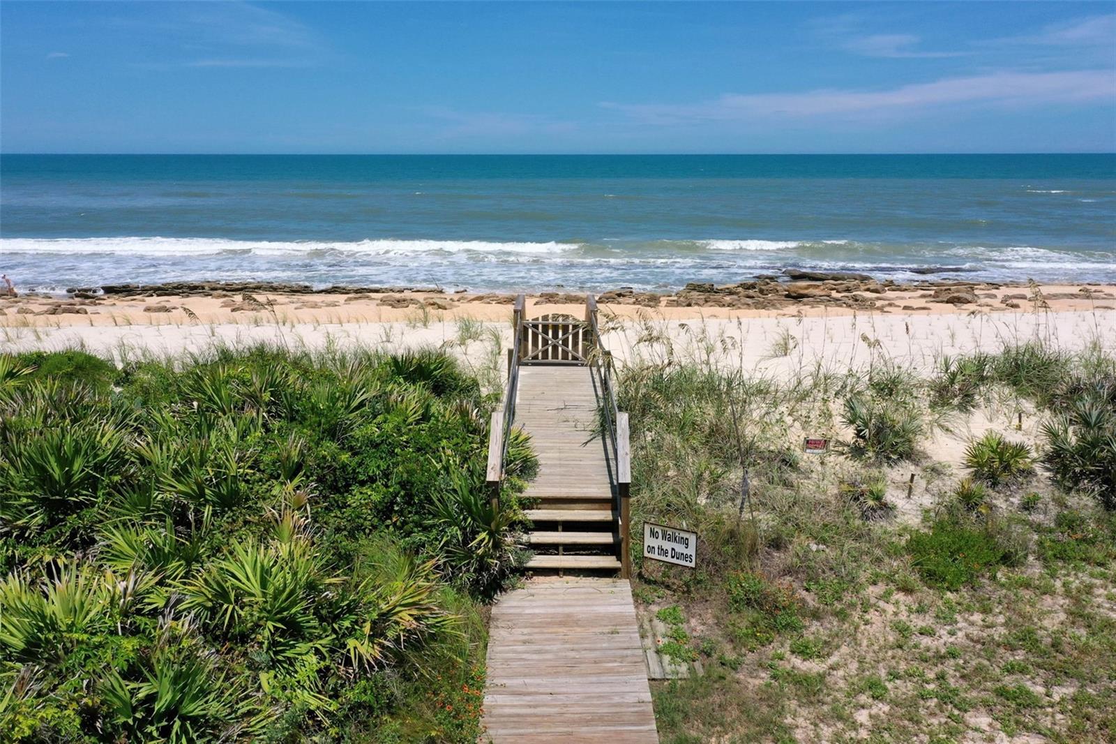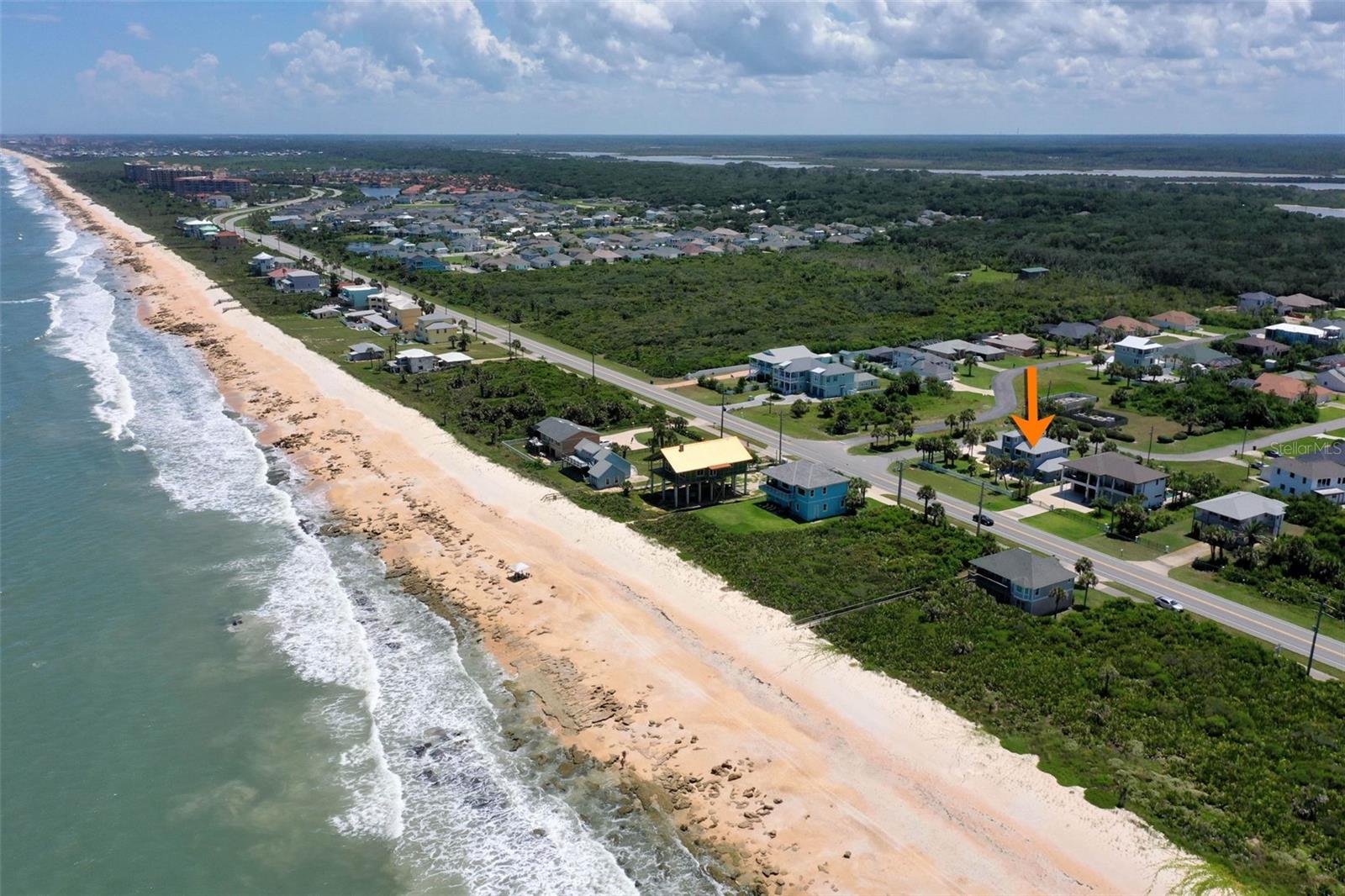 Oceanview home steps to the beach. Big home ready for friends and family. Beach access is directly across street. Pretty concrete block home on oversized corner lot! Room to add a pool. Nice ocean view from 2nd floor anf the 3rd floor loft area. Lots of room to spread out. First floor has 2 large bedrooms with Jack and Jill Bath, large great room and really nice kicthen. Kitchen has solid granite cabinets, farm sink, and a breakfast nook. Upstairs is a private main bedroom suite with huge 5 piece en-suite bath, sitting area and loft, with ocean views. Huge garage with Rv door and 2 car garage on other. 40’x29’ with tall doors. Use as bonus game room park your boat, trailer, mother home and still have room for 2 cars. Nice backyard with fire pit, and outdoor shower. Beach is a pretty mix of soft sand and unique and rare coquina rock formations. Access is directly across the street. Just 20 mi ties to historic St. Augustine and a short drive to 6 golf courses. Adjacent to River to sea county park, for easy dog walking. Great location for vacation home or full time residence.