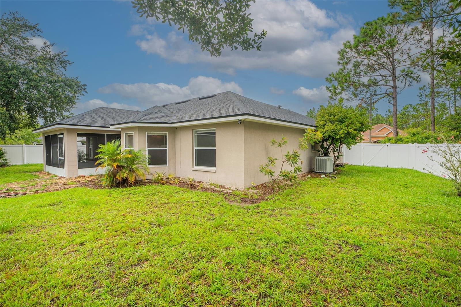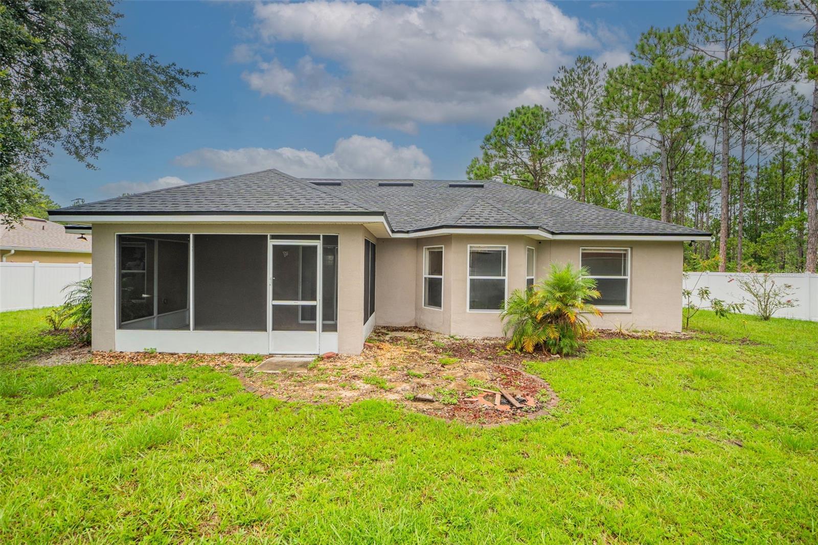 Welcome to an oasis in serene Palm Coast, FL - a charming, updated single-family residence perfectly tailored for families seeking comfort and privacy. This three-bedroom, two-bathroom home showcases a split floor plan that offers a harmonious balance for family living and entertainment. Nestled on a quiet cul-de-sac, this home boasts a new roof and a two-car garage paired with an extended driveway for ample parking. Step into tranquility with a screened-in porch overlooking a spacious, fenced-in backyard, complete with a storm-protected privacy gate. Here, the possibilities are endless: envision a future pool, a lush garden retreat, or your very own outdoor oasis. The heart of the home features a well-equipped kitchen with a sunlit breakfast nook, leading into a soaring high-ceiling living room that seamlessly connects to the dining area. The owner's suite offers a private sanctuary with a walk-in closet and an en-suite bathroom, featuring an oversized tub perfect for unwinding. Located in a family friendly neighborhood, with convenient access to shops just 5 minutes away, this home is more than a residence - it's a foundation for memories. Don't miss this exceptional opportunity. Schedule your visit and come see why this should be your next address!