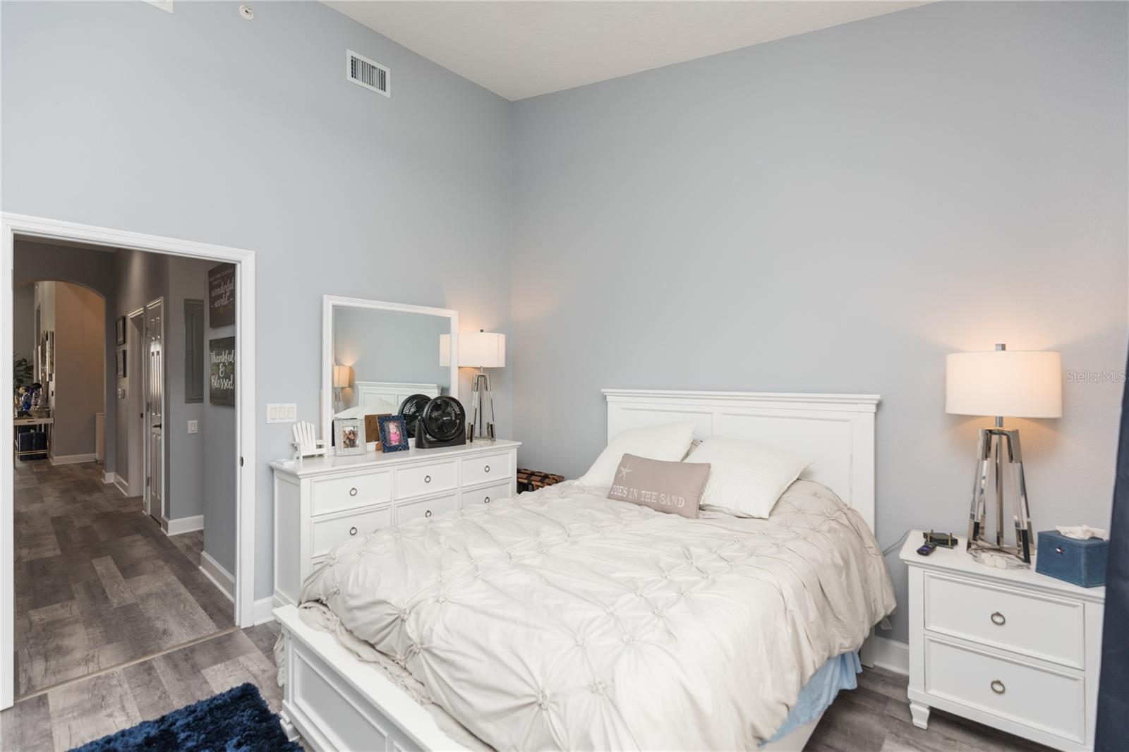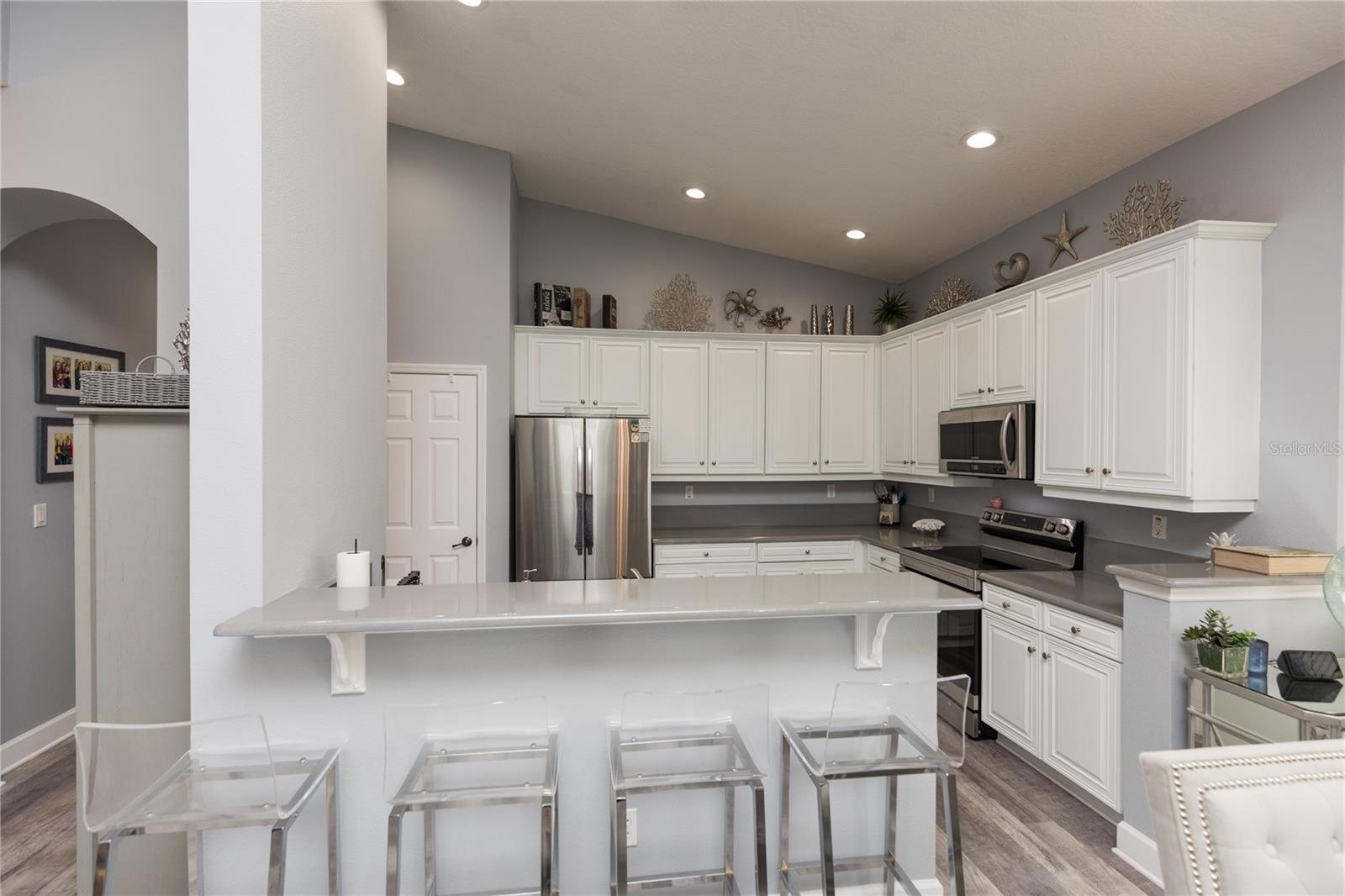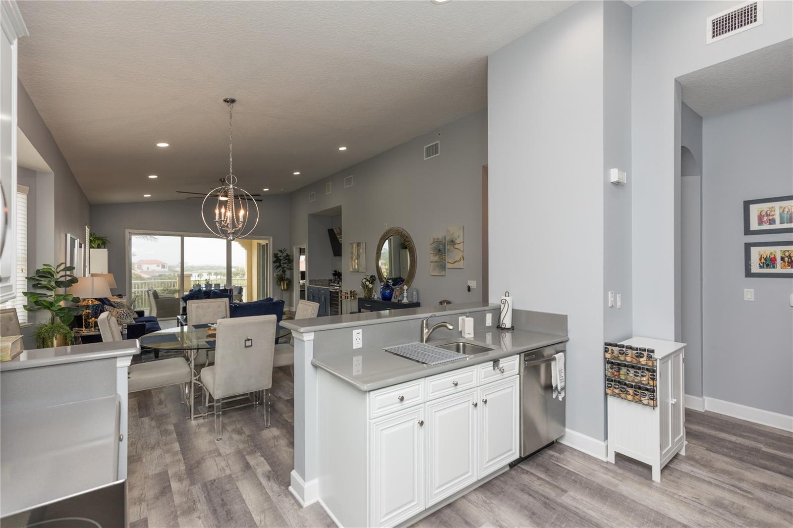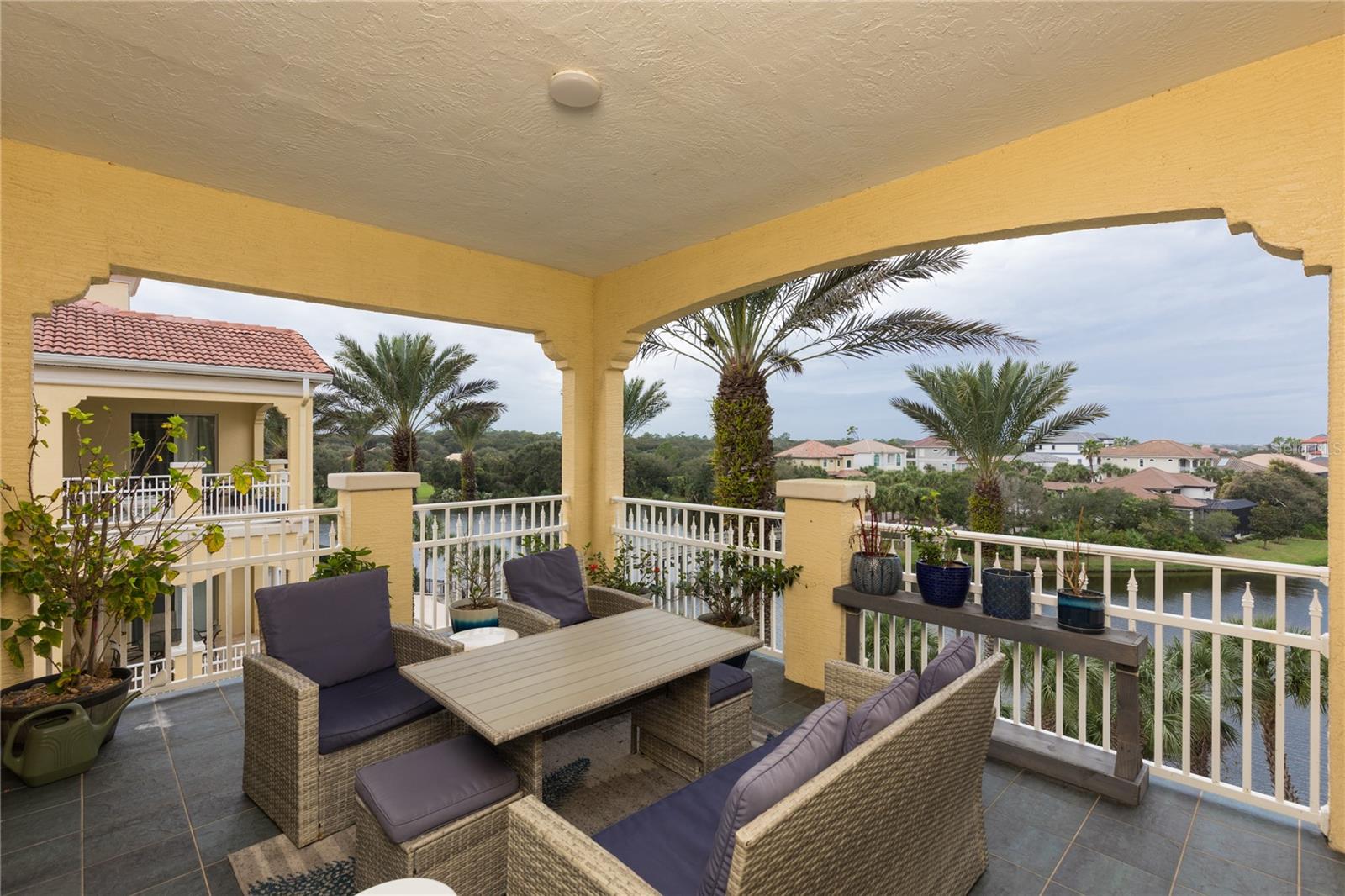 RARELY AVAILABLE PENTHOUSE 2 car private garage villa with vaulted ceilings, lake vistas annd peak of the ocean. Only 6 units in each building. The villa has been upgraded with the following NEW features. Samsung SS appliances, hot water heater, vanity in 1/2 bath, built in cabinets with granite countertop in LR, Additional shelving in closets, added cabinets to MB, Fresh paint throughout, Epoxy garage floor, LED lighting and LVP flooring throughout, 3 new fans and shelving and LED lighting in garage Large balcony and a short walk to the beach and club amenities. With the purchase of a club membership you can enjoy all 9 pools, 5 restaurants, fitness center and spa, 2 signature golf courses, 8;har-thru tennis courts and 4 pickleball courts. Live in paradise or benefit investment income. Don’t miss out on this unique opportunity!