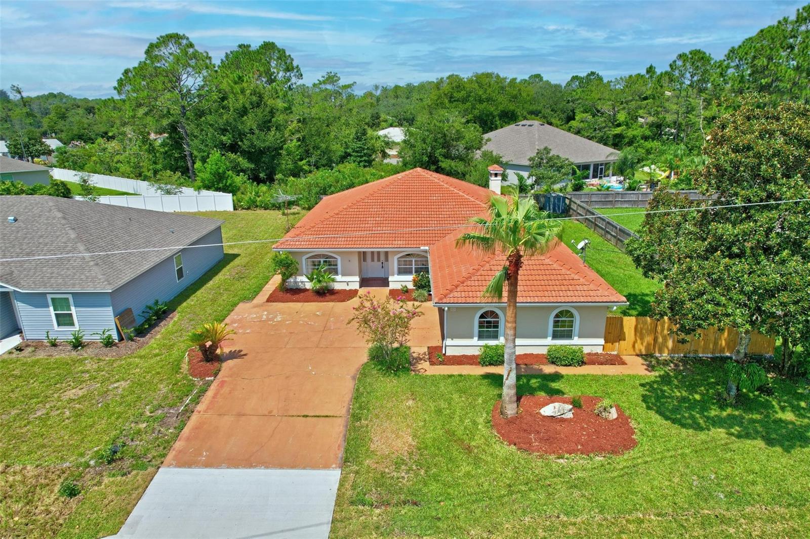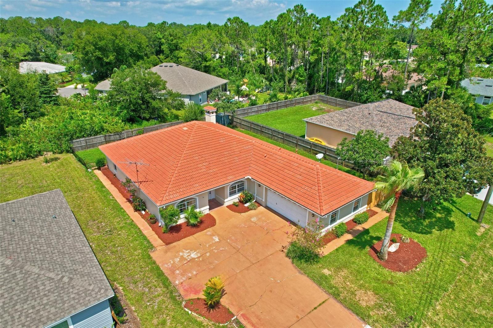 Spacious 4-Bed, 2-Bath home in Central Palm Coast Discover this fantastic tile-roofed gem, offering over 2400 square feet of living space and oversized side garage. Conveniently located in the heart of Palm Coast, this home boasts a variety of appealing features. Split floor plan for added privacy; combination of elegant tile flooring and comfortable brand new carpet; spacious Florida room featuring a charming wood-burning fireplace; roof replaced and A/C in 2021 for worry-free living. Recently exterior painted and landscaped. This home is ideally situated near churches, shopping centers, and schools, ensuring you have everything you need within easy reach. Don't miss out on this opportunity to make this centrally located Palm Coast residence your own!
