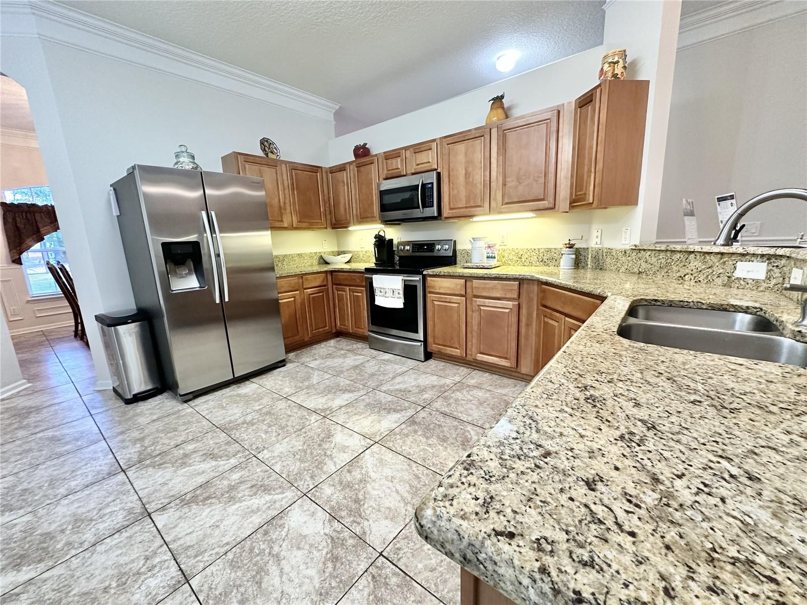 Welcome to this meticulously maintained pool home, only one owner and used only part-time. This spacious 4 bedroom home is located in a quite neighborhood on a cul-de-sac street. Numerous custom upgrades are featured throughout this home, like 10' high ceilings, elegant crown molding, a cozy fireplace for some of the cold evenings, are just a few. The home offers tile floors in the main areas, bathrooms and kitchen and quality carpet in the bedrooms. The kitchen and bathrooms boast granite counter tops and solid wood cabinets. The kitchen also includes a convenient eating area overlooking the family room. The over sized hall bath is a stand out and the owners suite offers a walk-in closet and additional closets. A window also brings light in this large bathroom with garden tub, separate shower, double vanity and separate toilet area. In the backyard, a nice pool with waterfall, surrounded by a paved deck and a comfortable seating area, awaits you for relaxation and entertaining. There's also a small shed available for your pool and garden equipment. Roof was replaced in 2018 and HVAC 2015. Washer & Dryer convey. Make your Florida dream come true with this amazing, spacious pool home, perfect for relaxing or entertaining. Some of the furniture can be purchased separately.