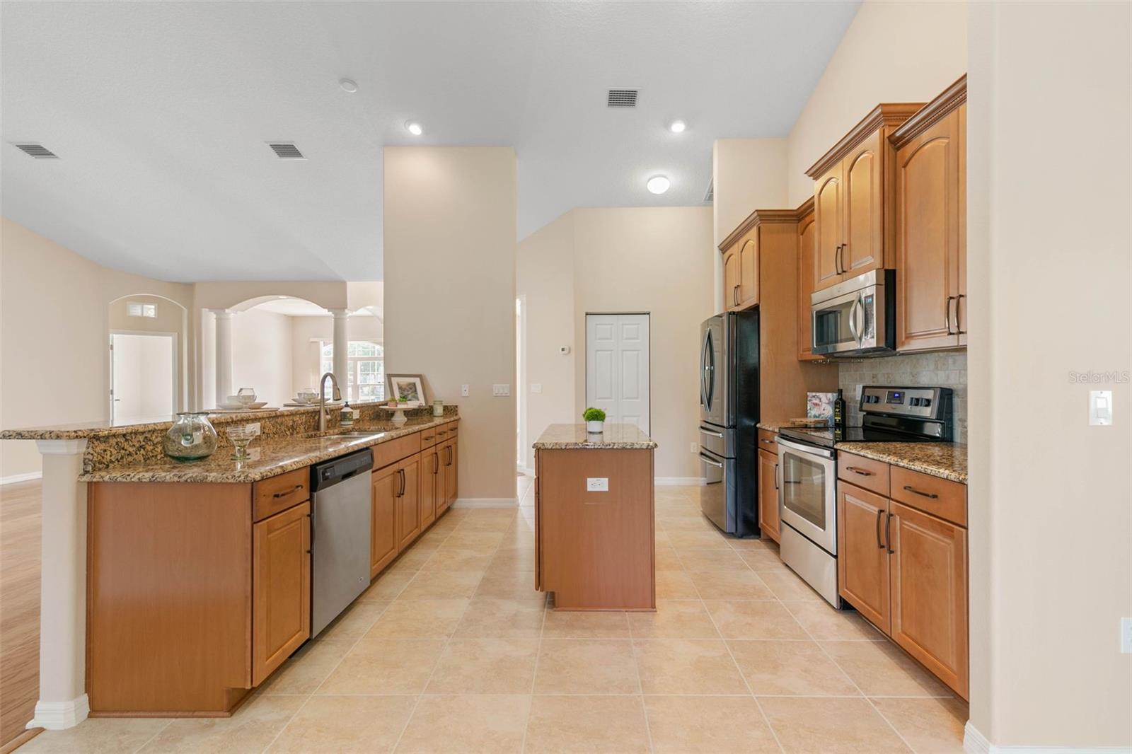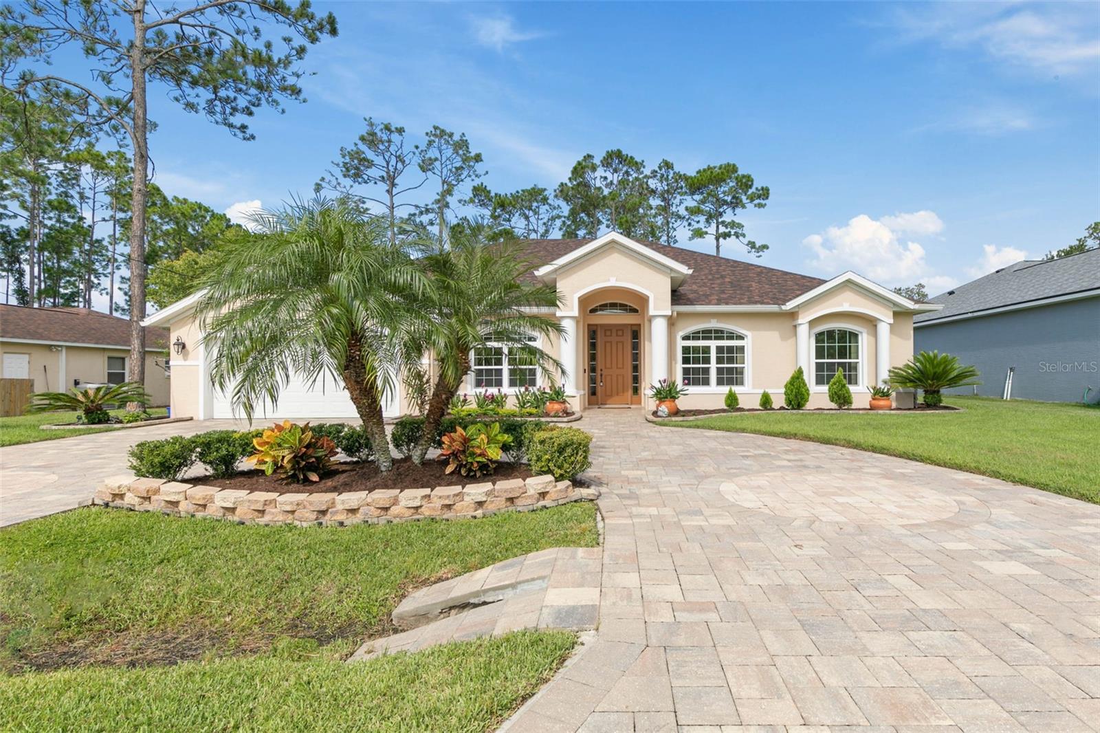 Welcome to your dream home in the exclusive golf neighborhood of Cypress Knoll in Palm Coast, Florida! This impeccable four-bedroom, two-bathroom residence, built in 2016, perfectly blends elegance and functionality. Designed with a desirable split floor plan, the home offers privacy with three bedrooms on one side, one of which is ideal for a home office with a tranquil view of the backyard, while the primary suite is on the opposite side for ultimate seclusion. This primary suite is a luxurious retreat with two large walk-in closets, dual vanities, a walk-in shower, and a separate soaking tub. As you enter, you're greeted by an expansive open floorplan and cathedral ceilings that seamlessly connect to the formal dining room, formal living or sitting room, and a spacious family room at the heart of the home. The chef’s kitchen is a culinary delight, featuring a large island, a walk-in pantry, and a cozy eat-in area, all overlooking the family room. Just off the kitchen is a well-sized laundry room with a large closet for additional storage. Triple sliders off the open up onto a beautiful oversized screened-in paver patio, perfect for outdoor relaxation and entertaining. A private backyard is for a future pool or a palette for your creative landscaping. Exquisite details throughout include solid engineered wood flooring, large ceramic tiles, and a meticulously designed circular paver driveway. The beautifully landscaped yard adds to the home’s curb appeal, reflecting the loving care and gentle use it has received. This home received a NEW ROOF IN JUNE OF 2024, so no worries with insurance coverage. Centrally located, this home is just minutes away from the new Pickleball & Recreation Center, 75 miles of biking and walking trails, and a short drive to the historic Flagler Beach. Just 30 minutes to Daytona, and St. Augustine. Don’t miss the opportunity to own this meticulously maintained gem in a prime location! Note: The pictures reflect Virtually staged furniture.