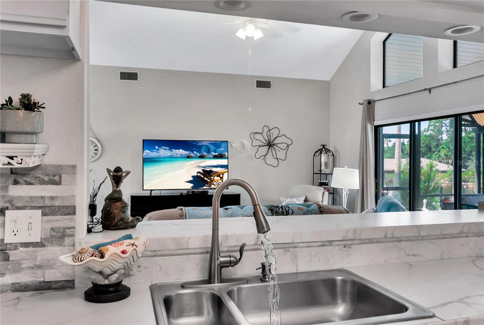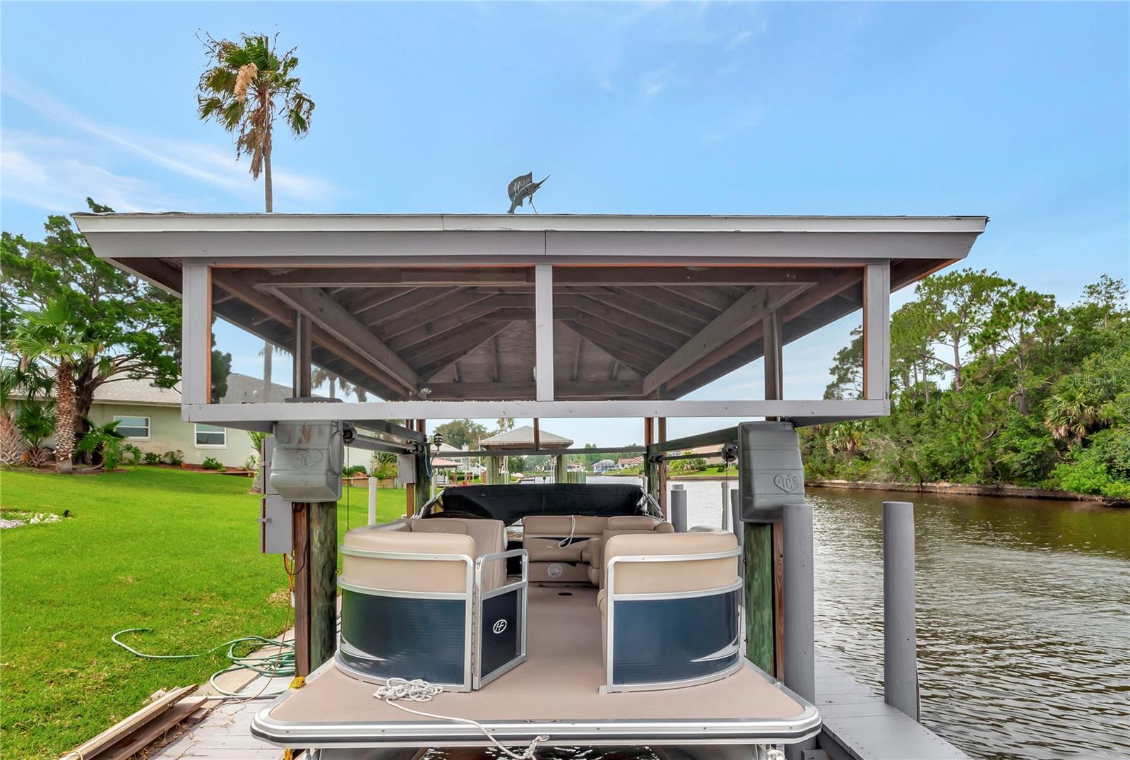Discover coastal living at its finest in this stunning 3-bedroom, 2-bathroom saltwater canal home in the heart of Palm Coast, Florida. This waterfront paradise features a private boat dock with a cover and a boat lift, offering quick access to the Intracoastal Waterway. Step inside to find a beautiful living space with modern finishes throughout. The kitchen is perfect for entertainment! Unwind in your spacious master suite, complete with a luxurious soaking tub, dual vanities, and a walk-in closet. Every detail of this home has been thoughtfully designed from the high ceilings, beautiful lighting, and large slider doors. The outdoor space is an entertainer's delight, featuring a solar-heated pool where you can relax and enjoy Florida's year-round sunshine. With solar panels powering the entire home, you'll enjoy energy efficiency. Don't miss the opportunity to own this exceptional waterfront home, where every day feels like a vacation. Schedule your private showing today. New A/C 2024.