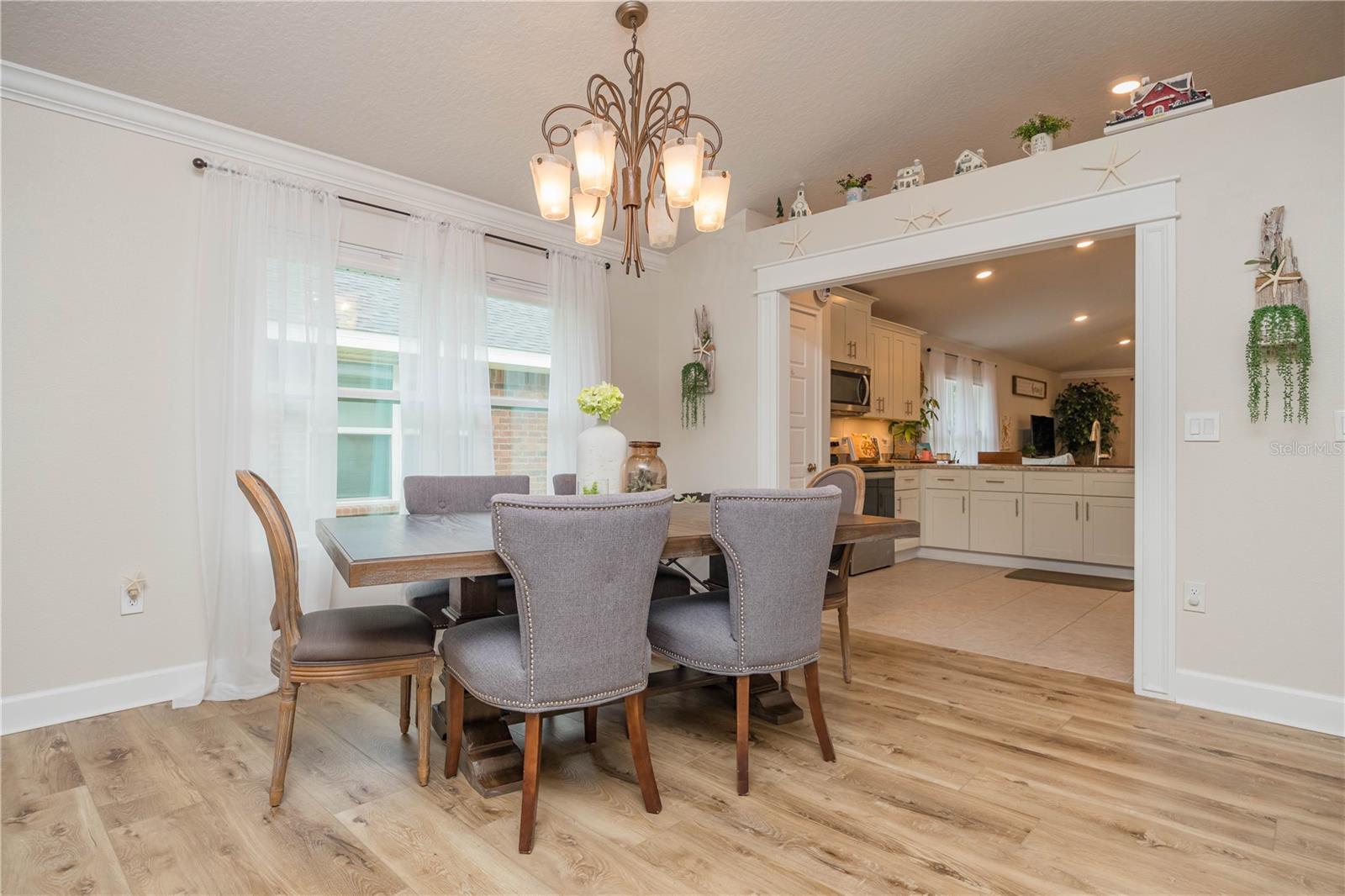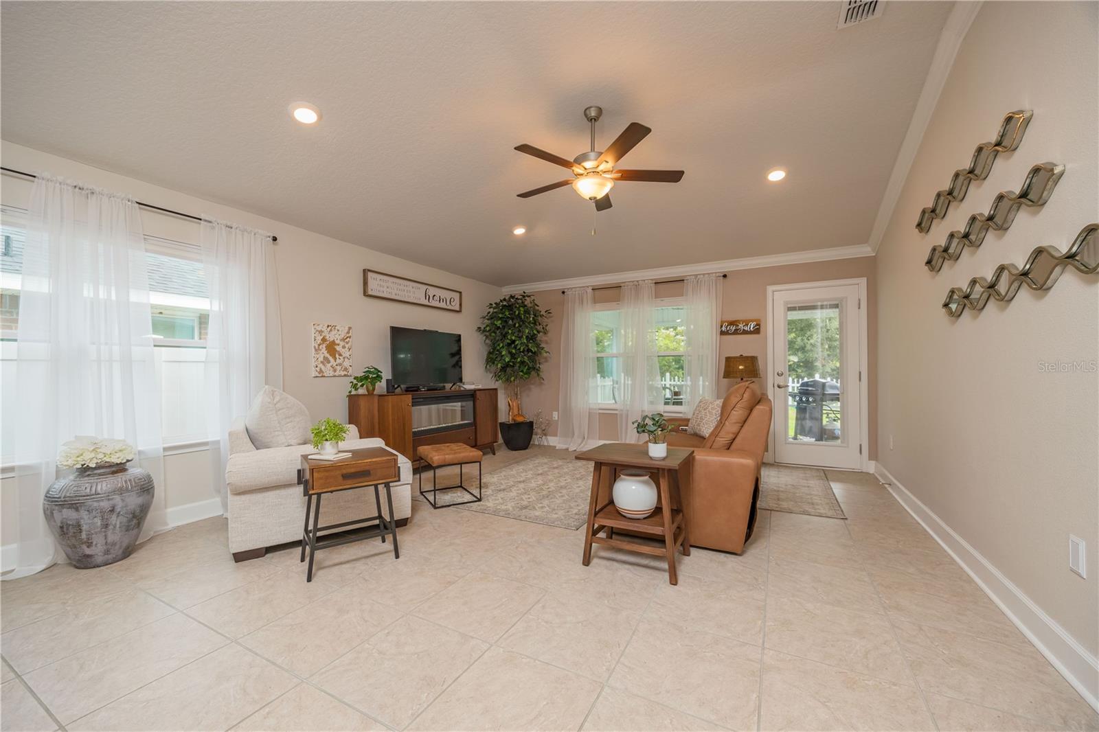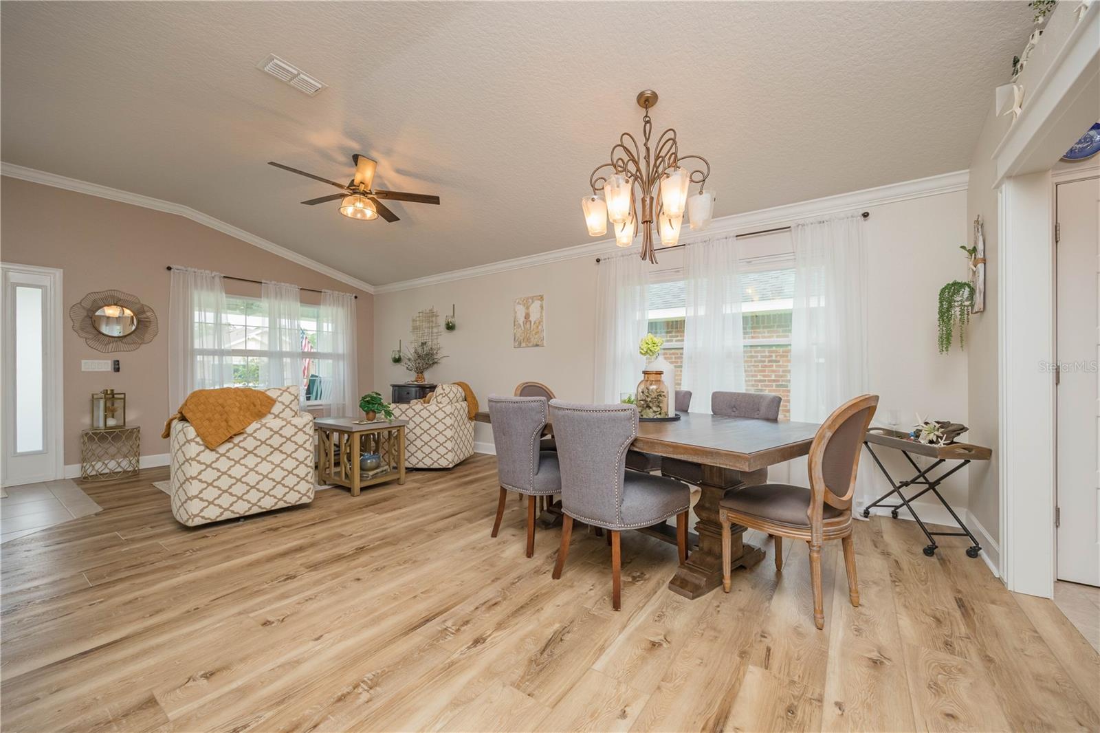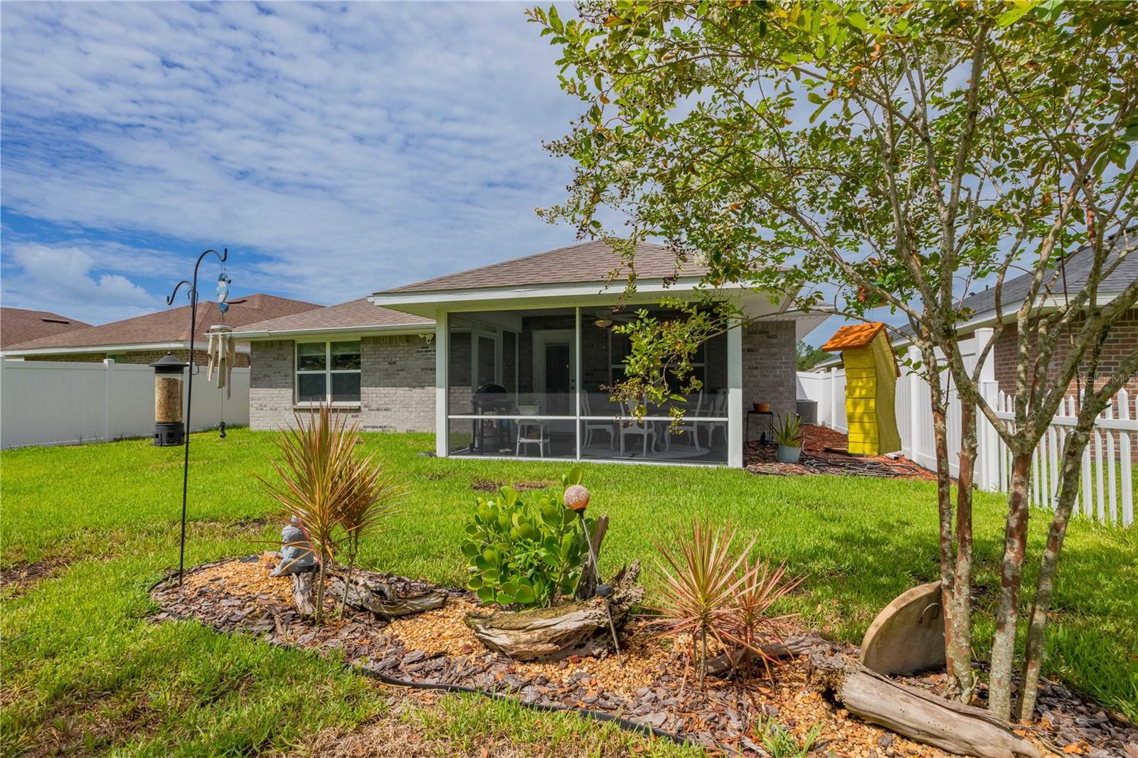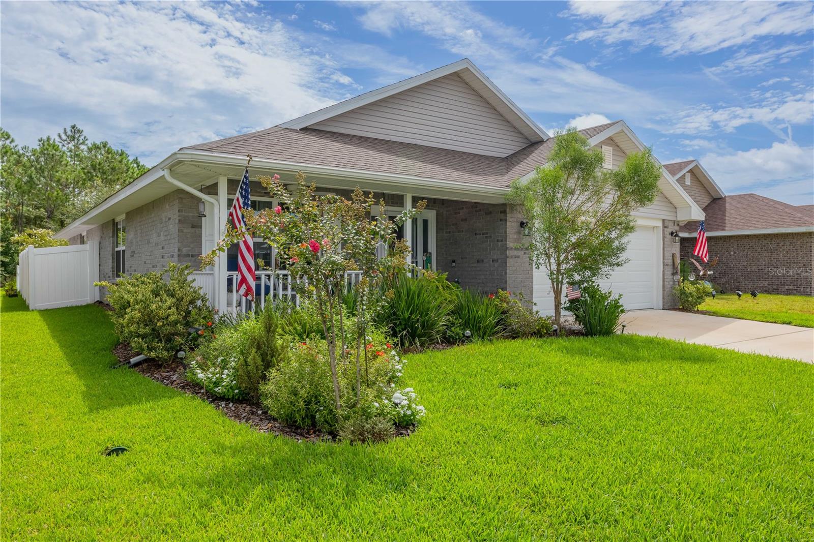 METICULOUS 2 YEAR OLD BRICK HOME SHOWS LIKE A MODEL - PERFECT HOME FOR BIKE ENTHUSIASTS! This stunning 3BR/2BA brick construction is loaded with lots of upgrades! Luxury vinyl plank floors, crown molding, 6" baseboards, fresh satin finish paint, versatile light control with cellular blinds with up & down functionality, water softener, Large kitchen with upgraded 42" cabinets with molding, stainless steel appliances, upgraded sink & faucet & pantry. Split bedroom plan with large owner suite with walk in closet & owner bathroom with double vanity, walk in shower plus walk in linen closet! Updated back door w/sleek blind inset from great room leads to 10x13 screened lanai overlooking beautiful yard with white picket fence. Gate in picket fence leads you to miles of bike/hiking trails right in your backyard! Newly installed sprinkler system & gutters. Smart home features, including Ring doorbell camera & Ring floodlight camera. Vibrant, fun loving community in easily accessible location!