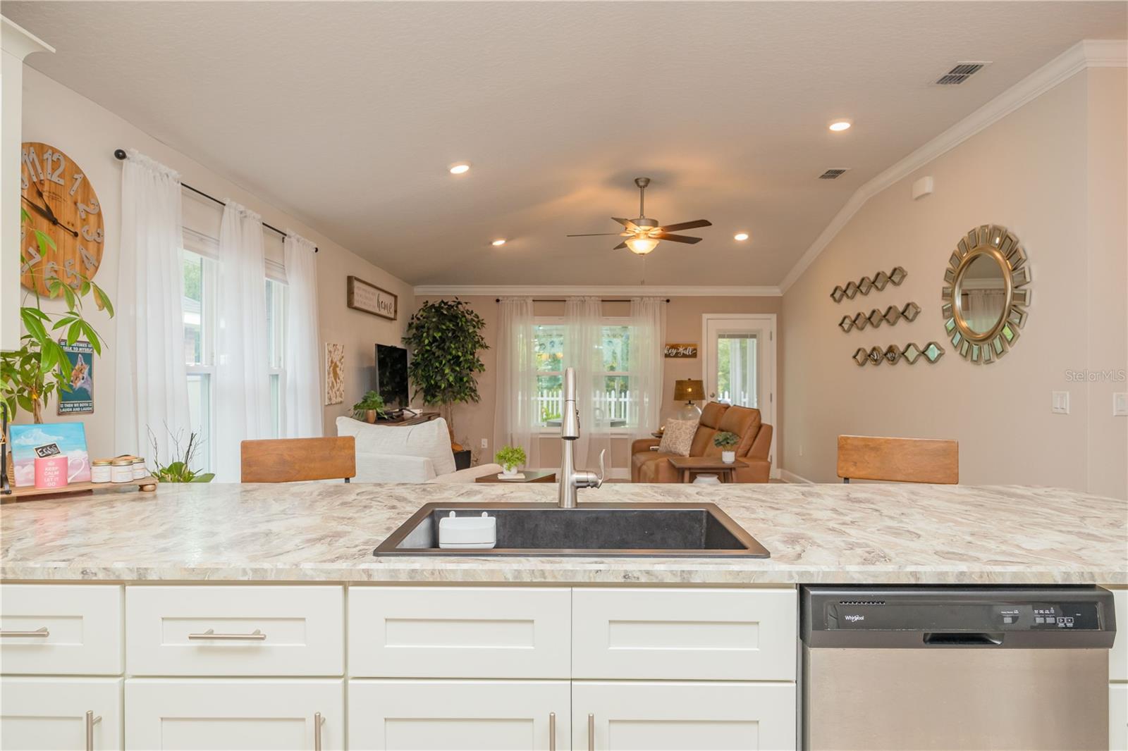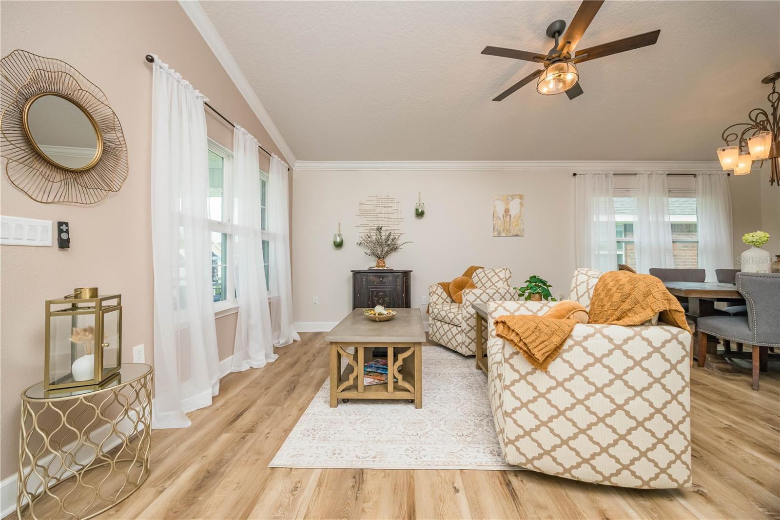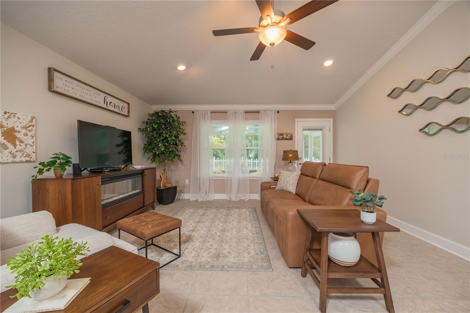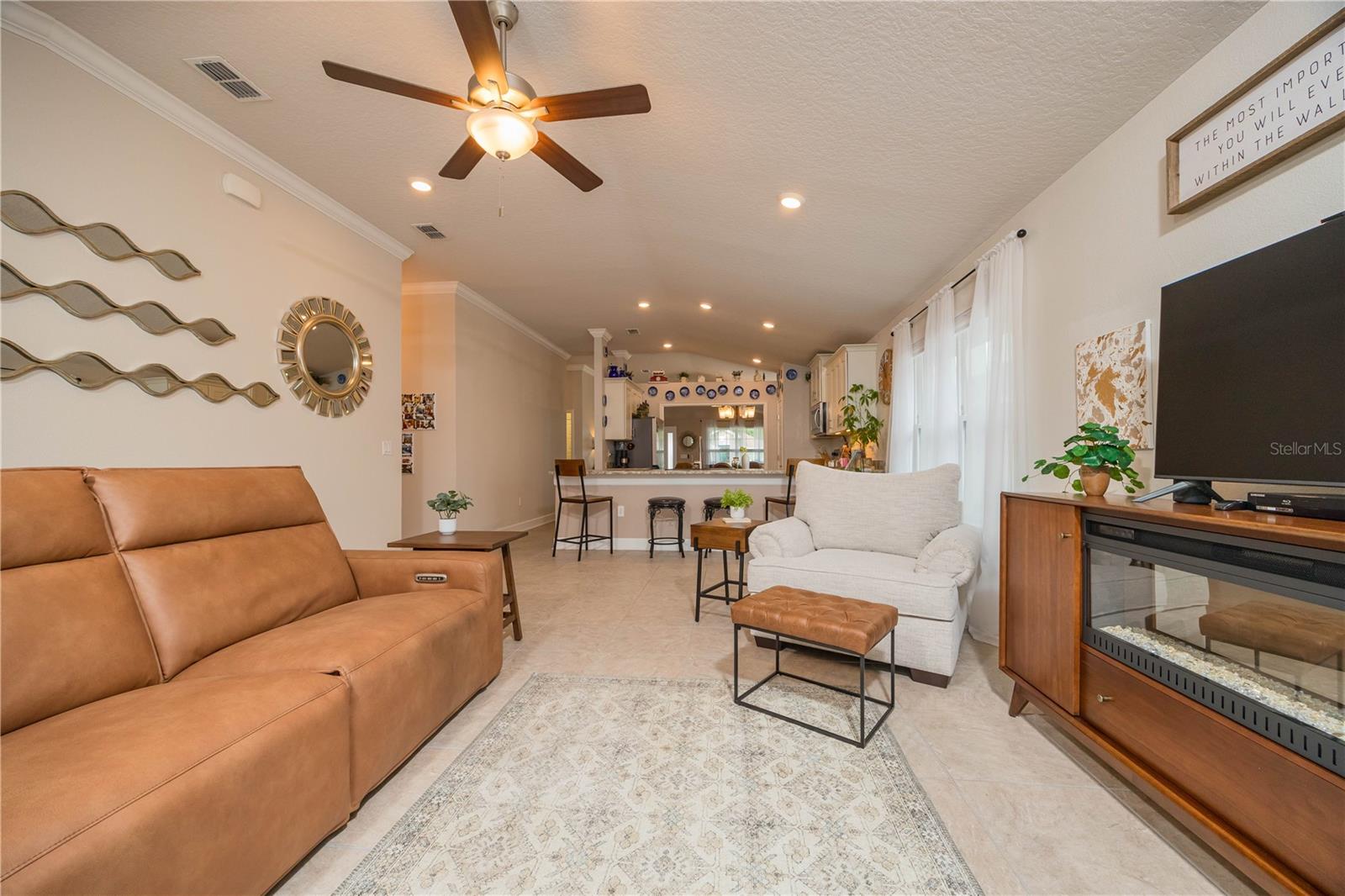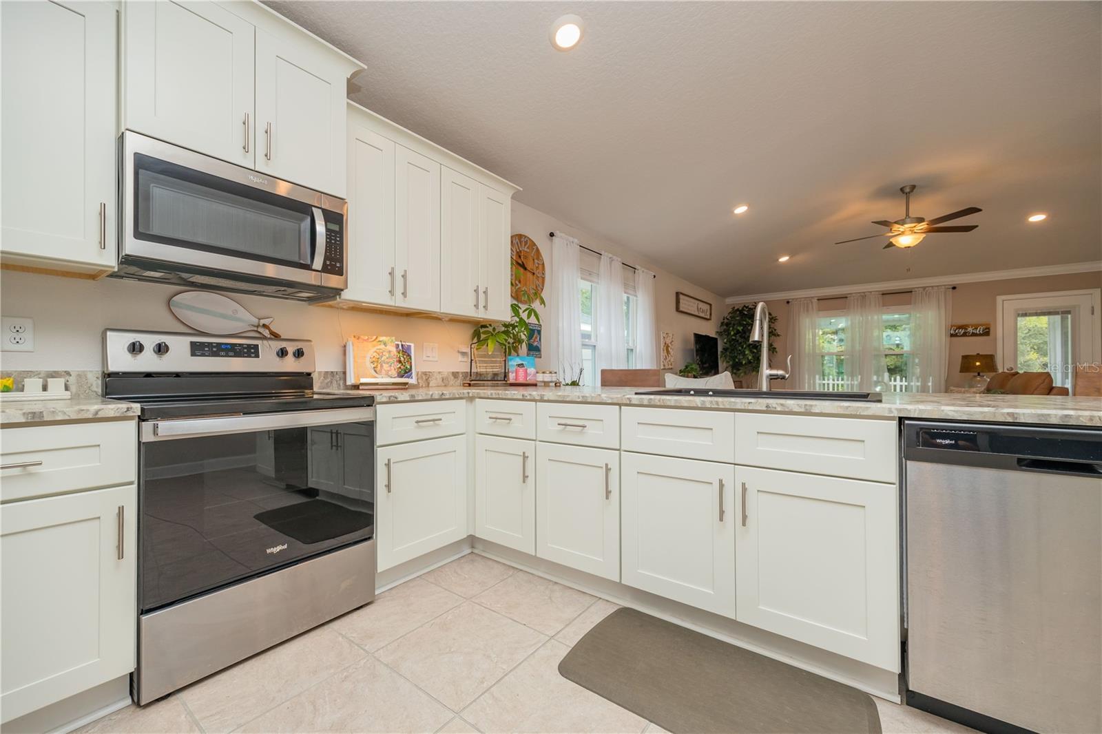 METICULOUS 2 YEAR OLD BRICK HOME SHOWS LIKE A MODEL - PERFECT HOME FOR BIKE ENTHUSIASTS! This stunning 3BR/2BA brick construction is loaded with lots of upgrades! Luxury vinyl plank floors, crown molding, 6" baseboards, fresh satin finish paint, versatile light control with cellular blinds with up & down functionality, water softener, Large kitchen with upgraded 42" cabinets with molding, stainless steel appliances, upgraded sink & faucet & pantry. Split bedroom plan with large owner suite with walk in closet & owner bathroom with double vanity, walk in shower plus walk in linen closet! Updated back door w/sleek blind inset from great room leads to 10x13 screened lanai overlooking beautiful yard with white picket fence. Gate in picket fence leads you to miles of bike/hiking trails right in your backyard! Newly installed sprinkler system & gutters. Smart home features, including Ring doorbell camera & Ring floodlight camera. Vibrant, fun loving community in easily accessible location!