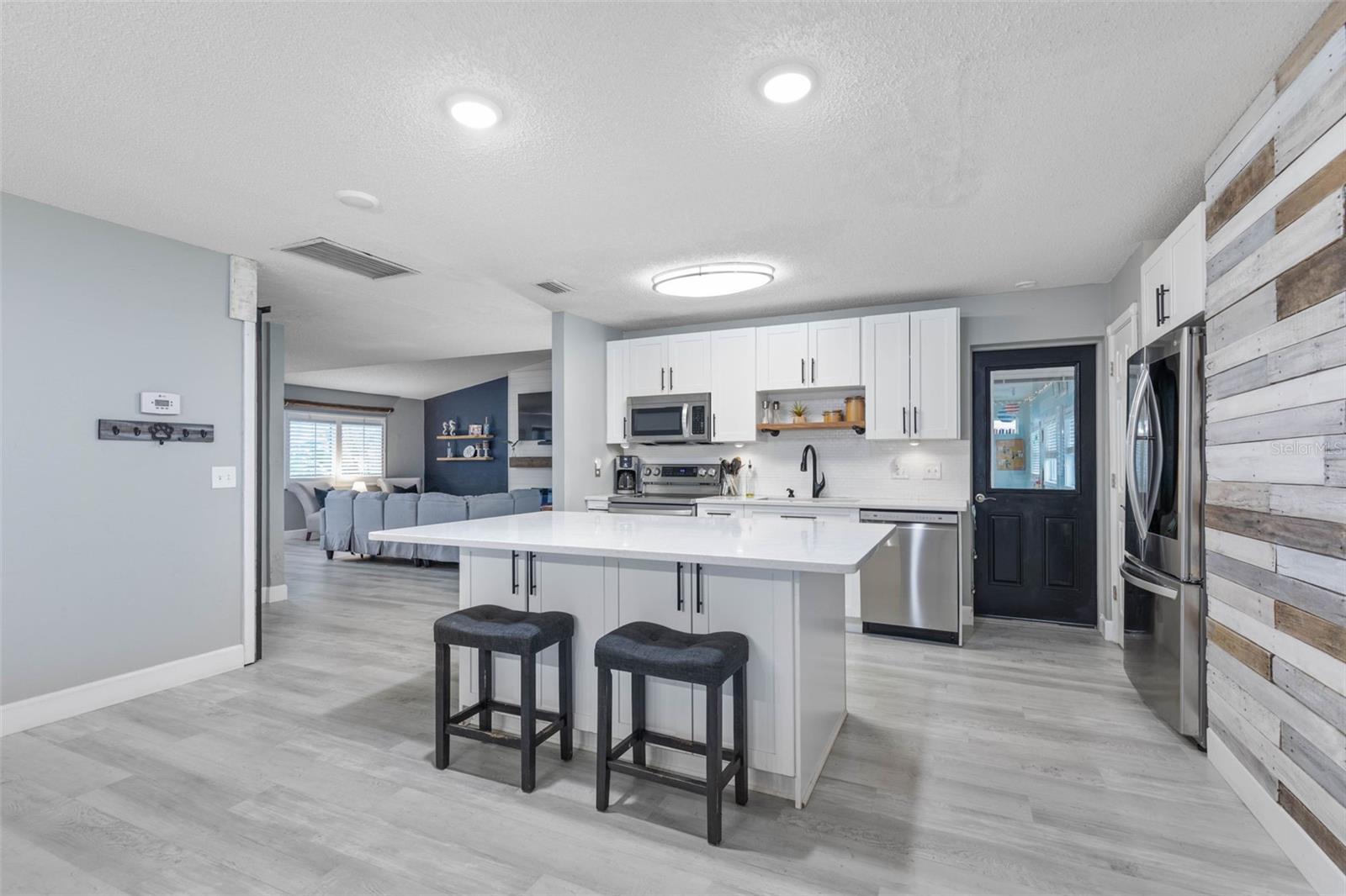 Newly remodeled freshwater canal home located in the desired neighborhood of Cypress Knoll. Four bedrooms for that growing family. New kitchen cabinets, quartz countertops and stainless steel appliances. Luxury vinyl throughout. Custom electric fireplace design. Wet bar in dining room with wine fridge is convenient while entertaining. Enormous studio can be used for an art room or a small business. Built in stone/brick fire pit outback to sit around and hang out with your friends.