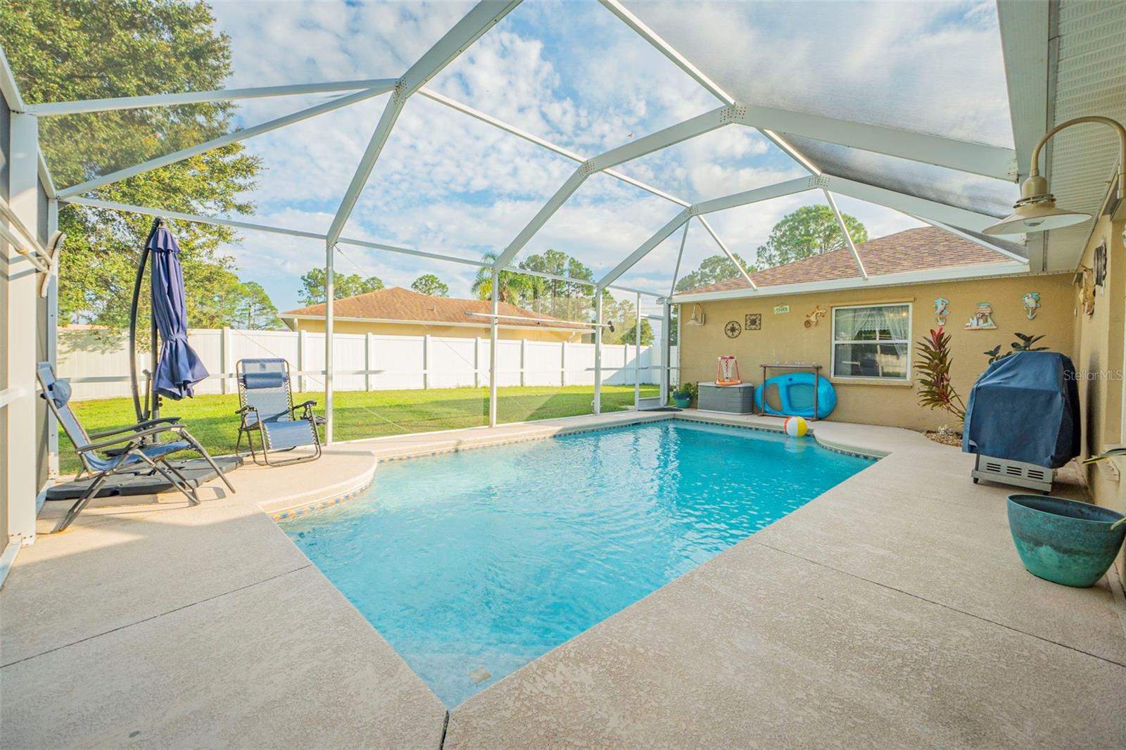 LARGE DOUBLE LOT! Welcome to this stunning single-family residence nestled in the serene Palm Coast community of Florida. This exquisite home, ideal for growing families, boasts 4 spacious bedrooms and 3 elegant bathrooms, offering comfort and style for daily living. SELLERS ARE EXTREMELY MOTIVATED TO SELL!! OPEN TO ALL OFFERS!! Step inside to discover the modern luxury of newer LVP flooring that flows effortlessly throughout the living area, creating a cohesive and inviting atmosphere. The heart of the home, a gourmet kitchen, is equipped with stainless steel appliances, including a double oven range that will inspire your culinary adventures. The farmhouse stainless steel sink adds a touch of rustic charm to this sleek and functional space. Entertain with ease in the open floor plan that gracefully connects the living spaces, or step out to the beautiful screened pool area for a refreshing dip and relaxation. The large backyard is a family's dream, featuring a durable vinyl fence for privacy, a spacious deck for gatherings, and an additional shed for extra storage needs. This double lot has so much room for your family and friends to enjoy backyard gatherings and celebrations! The mature trees helps create a serene oasis for all to relax. Imagine your family creating lasting memories in this Palm Coast haven, where every detail caters to a comfortable and luxurious lifestyle. Make this home the backdrop for your new beginning.