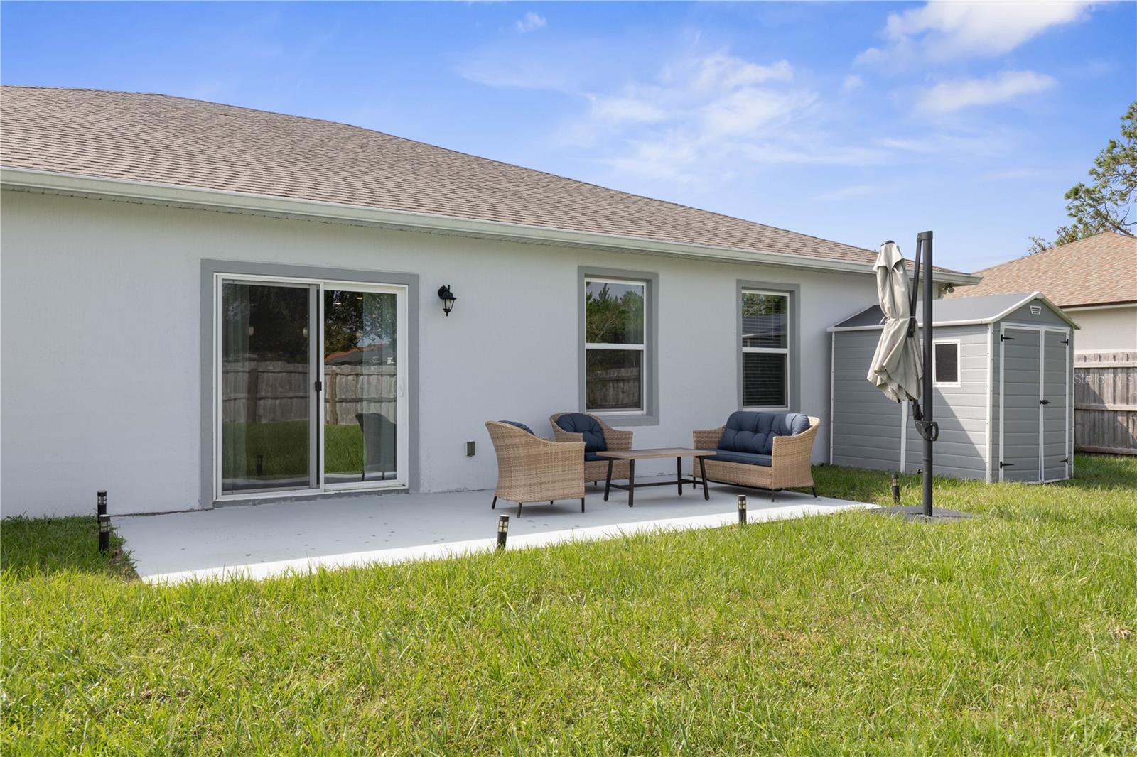 **PRICED TO SELL **!! Maronda Homes is selling this Willow Model much higher for $384,900 and $387,900. Welcome to 9 Prince Walter Ln, where comfort and style seamlessly come together. CONCRETE BLOCK BUILT 2022, A MUST SEE Beautiful residence features 4 bedrooms, 2 bath and a versatile flex space with French doors that can easily serve as a home office, den, gym or an additional bedroom, depending on your needs. THIS HOME IS LOADED WITH UPGRADES; it offers an open floor plan where the family room, kitchen and dining area effortlessly flow into one another, creating and inviting space for everyday living or entertaining. Built in 2022; this home shows like new. The kitchen is a Chef’s dream with a 9 ft Island that serves as the perfect centerpiece for cooking, dining, or social gatherings. Countertops in both the kitchen and bathrooms elevate home’s aesthetic, adding a refined touch to your daily routine. Throughout the House, luxury LVP (Luxury Vinyl Plank) flooring is not only a sleek, elegant appearance but also comes with a warranty for added peace of mind. All bedrooms are generously sized, providing ample room for relaxation and personalization, while remote-controlled fans throughout the home ensure perfect airflow and comfort at the touch of a button. Other upgrades include a completely fenced oversized backyard (with plenty of room to build a large pool), Alarm security system, 3 Pendant lighting over the kitchen island, light fixtures, garage door remote openers, professionally painted inside and new outside storage shed 5x7. When you step outside to the fenced backyard that is ideal for hosting barbecues, family get togethers and private retreat; you will be enjoying some peaceful solitude. There is no HOA or CDD. Located close to shopping, restaurants, schools, parks, nature walking and bike trails, top rated golf courses, top tier medical facilities, major highways and 17 minutes to Flagler Beach. This home strikes the perfect balance between seclusion and accessibility. It’s ready for you to move in and enjoy. LOOK AT THIS COMPLETE PACKAGE FOR $349,000. Contact us today to schedule a private showing.