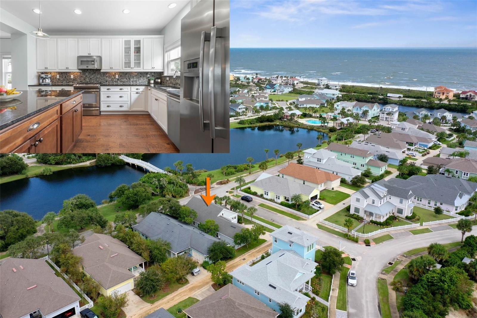 JUST STEPS TO THE BEACH and a LAKE VIEW! - Welcome to your dream coastal retreat in a beautiful Key West-style beach front community located along the scenic A1A of Palm Coast Florida. With private beach access just steps away, this vibrant neighborhood offers the perfect blend of relaxed seaside living and modern amenities. Residents enjoy exclusive access to a community pool, serene walking trails, and a picturesque bridge walkover that spans a sparkling lake—ideal for a tranquil evening stroll. Boasting over 2,200 square feet, this 4-bedroom, 2.5-bathroom home welcomes you with a charming front porch that hints at the relaxed lifestyle awaiting inside. Step into the open floor plan where natural light flows effortlessly through the living spaces, and serene views of the lake greet you. High ceilings and thoughtful architectural details enhance the spacious feel of this beautiful home, making it ideal for both entertaining and everyday living. The heart of this home is the gourmet kitchen, which features a large island with seating, stunning wood cabinetry, and a gas stove that’s perfect for any culinary enthusiast. Whether you’re hosting family dinners or casual get-togethers, this kitchen provides the perfect backdrop for creating meals and memories. The adjoining dining room and living area flow seamlessly, offering a welcoming space to gather and relax. The first-floor primary suite is a true retreat. It features two large closets, an ensuite bathroom with a garden tub and walk-in shower, and an attached office with French doors and a built-in bookcase, while offering serene lake views. Whether you’re working from home or simply enjoying the peace and quiet, the office is a wonderful addition to this luxurious suite. Two additional bedrooms and a full bathroom are also located on the first floor, providing ample space for family or guests. Each room is generously sized and filled with natural light, making them perfect for family, guest rooms, or even a home gym. Upstairs, a large fourth bedroom with a two-piece ensuite and access to a private balcony offers a peaceful sanctuary. Step out onto the deck and enjoy your morning coffee or evening breezes while taking in the surrounding natural beauty of the community. Outside, this home truly shines. The large driveway with a rear entrance leads to a spacious two-car garage, providing ample parking and storage. Whether you’re looking to relax by the sparkling community pool, enjoy the private beach access, or take a walk along the scenic trails, this beach-front community offers everything you need to embrace Florida’s coastal lifestyle. Located along A1A, you’re close to local shops, restaurants, and all the attractions of nearby beach towns. Don’t miss your chance to own this beautiful lake-view home in a one-of-a-kind beach-front community. Schedule your private tour today and start living your dream of coastal elegance and comfort! Hurricane shutters, AC 11/2023, new propane tank. SEE ATTACHED BROCHURE OR CALL FOR MORE DETAILS ON LENDER INCENTIVE OFFER.