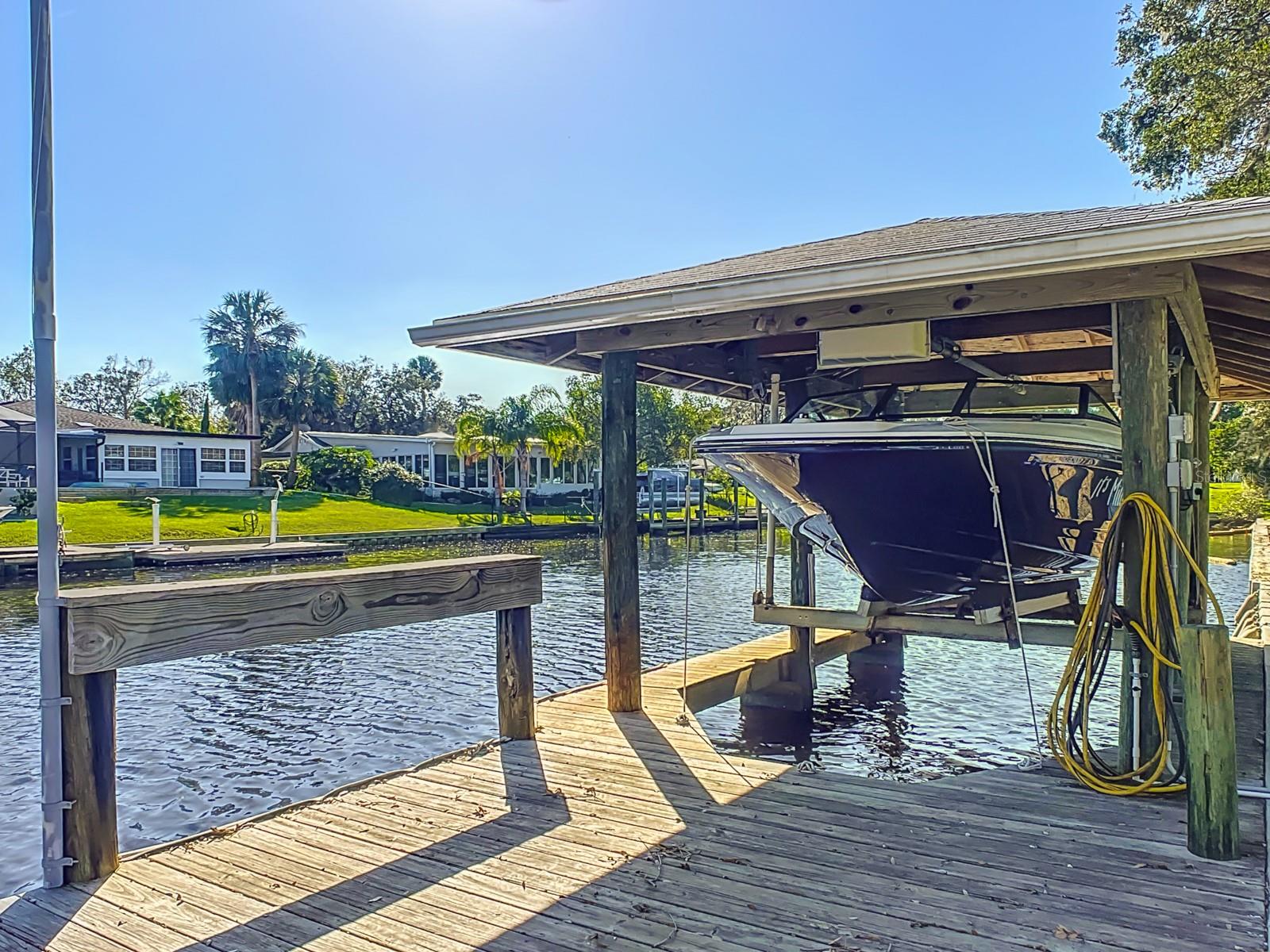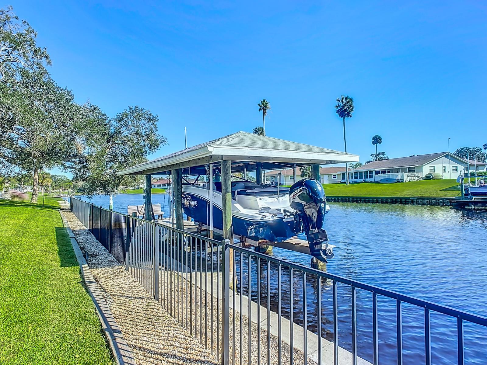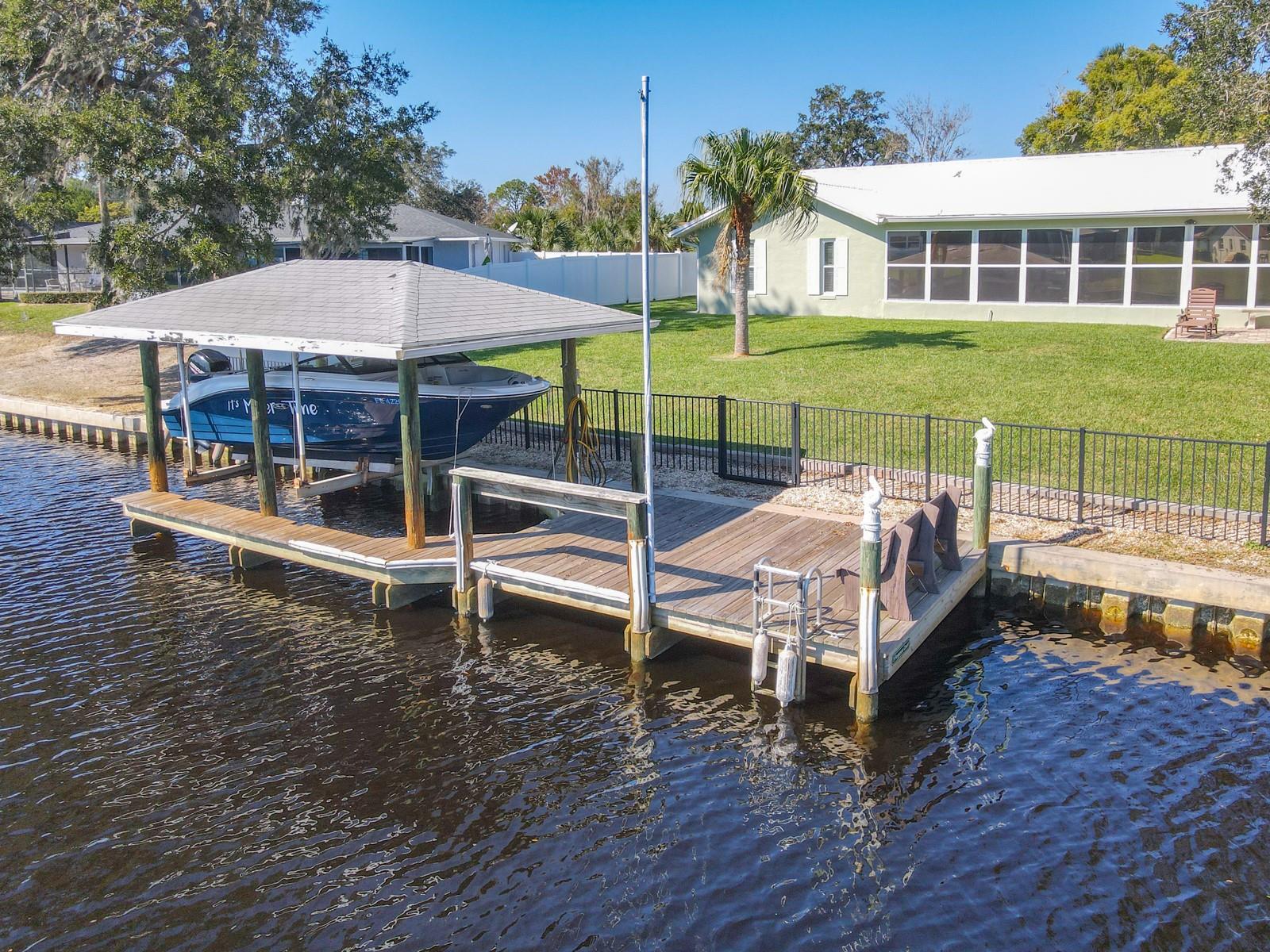Qualified buyers may receive a significant lender credit at closing through a preferred lending program. Come and see this well maintained 3Bed/2Bath home in a beautiful Palm Harbor saltwater canal neighborhood of Palm Coast. This home has been updated at every turn and is situated in one of the most desirable locations in Paradise. The AC and hot water tank were just replaced in 2023 along with a new electrical panel with a transfer switch to run a generator. The concrete break-wall was newly built in 2018, rain gutters were also installed that year, new windows and sliding glass doors replaced in 2015. This spacious home is ready to move into with hardwood and tile floors through out, new ceiling fans every where, recessed lighting in the adjoining living room, dining room and family room. The kitchen remodel includes new cabinets with granite countertops plus a glass tile backsplash. New garage door with screening in 2023, fully fenced backyard, exterior security lighting, extra large laundry room with more cabinetry for storage. There is even a huge air conditioned great room overlooking the saltwater canal with additional covered and screened outdoor patio, all overlooking the water with boat dock that includes a 5000lb boat lift with electric and water. This home has it all, please schedule your appointment to see it today.