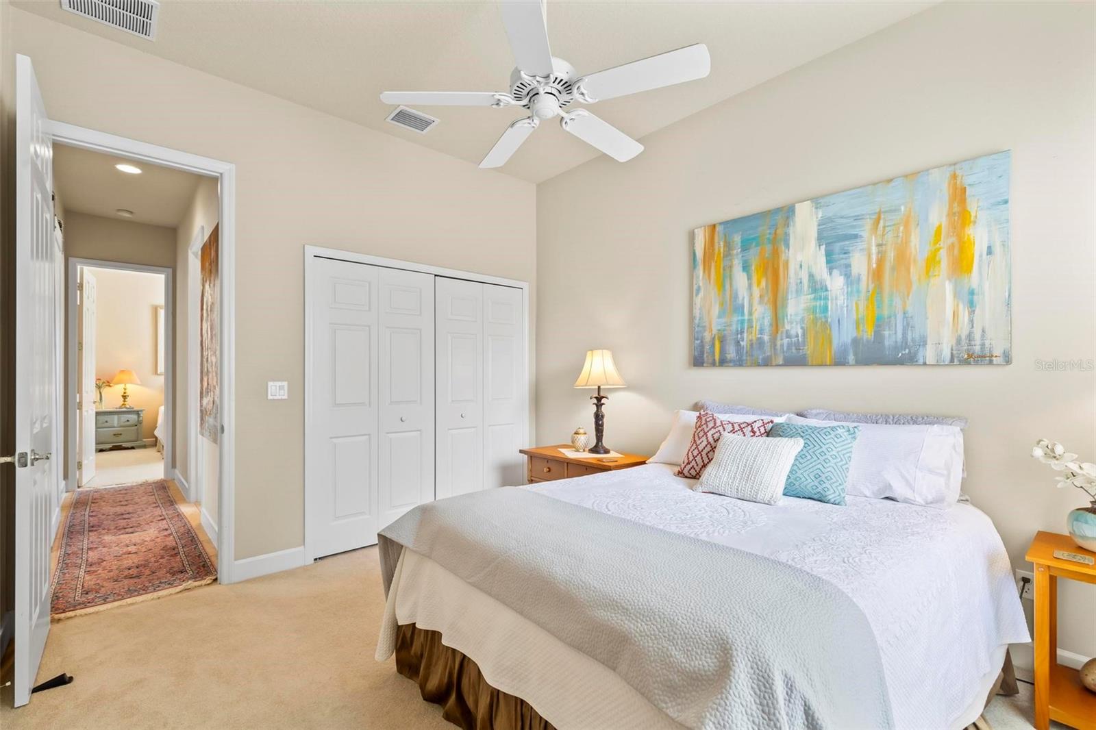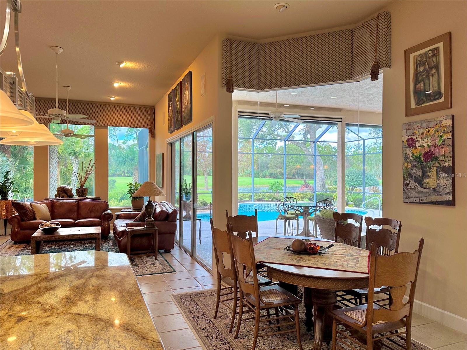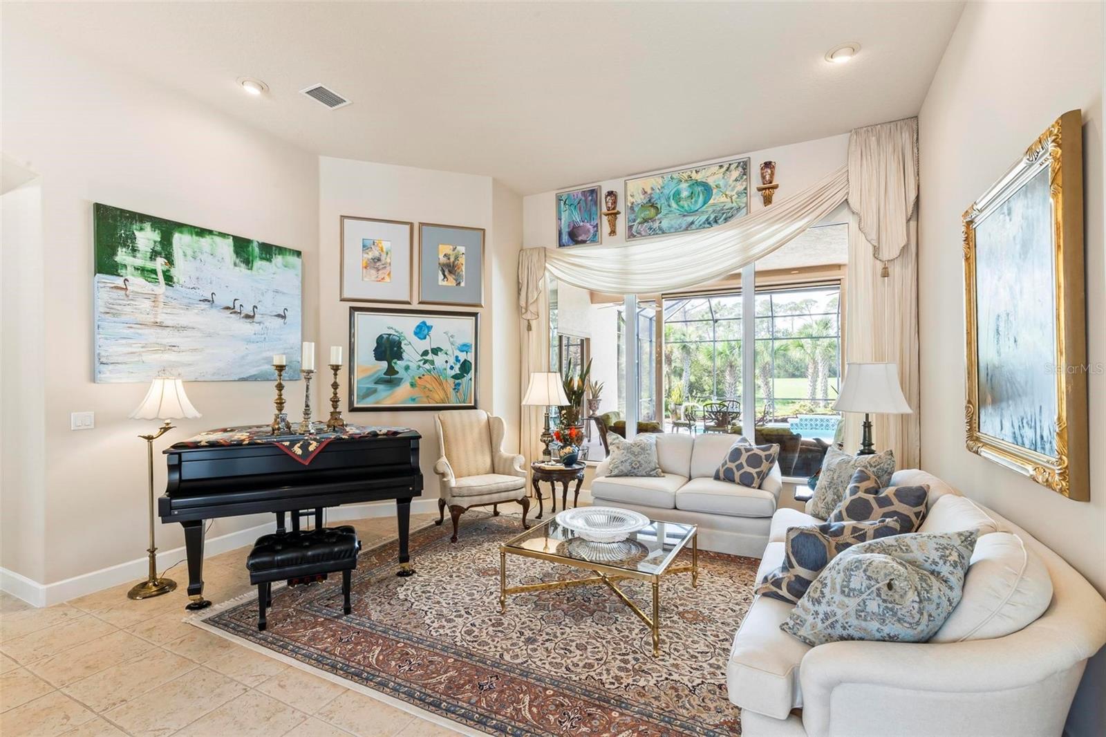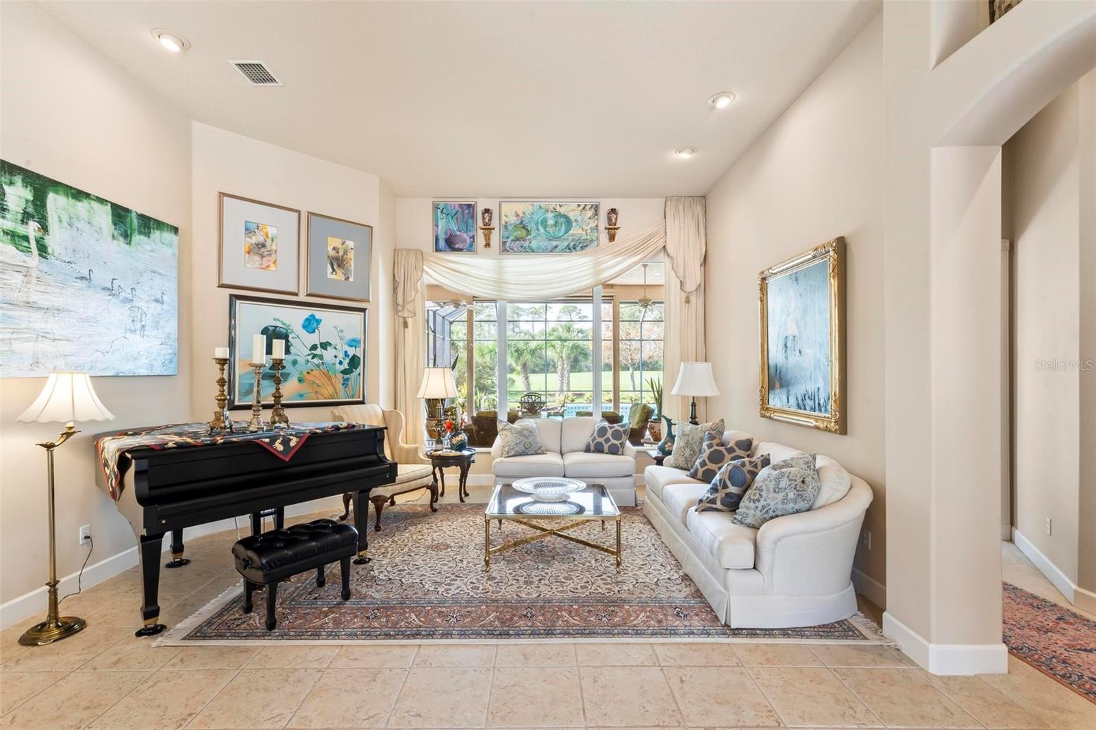 Situated within the exclusive Waterfront Golf Course Community of Grand Haven, 24 Osprey Circle is a masterpiece of custom craftsmanship and luxury living, offering sweeping views of tranquil water and the par-5, 7th hole of the renowned Jack Nicklaus Grand Haven Golf Club with no homes across the way. This thoughtfully enhanced ICI Preakness II model stands out with a multitude of custom features, including an extended family room and an under-air full bathroom accessible exclusively from the pool area for effortless indoor-outdoor living. The home greets you with striking 8-foot double etched glass entry doors that open into a grand living space with 12-foot ceilings, floor-to-ceiling windows framed with upgraded wwhite marble sills, and an abundance of natural light flooding the formal dining room. The primary suite is a true sanctuary, highlighted by elegant trayed ceilings, direct access to the pool, and a luxurious bathroom with dual sinks, a soaking tub, a newly upgraded glass shower, and a spacious walk-in closet. Just down the hall, you'll find a versatile room currently used as an office, which can seamlessly transform into a bedroom, studio, or any space that suits your needs, with a full bathroom conveniently located right outside. The open-concept kitchen is perfect for culinary enthusiasts, featuring solid wood cabinetry with custom trim, an island, a built-in oven and microwave, a cooktop, and 2021-replaced stainless steel appliances. A reverse osmosis water filtration system ensures pure, fresh water at your fingertips. The adjacent family room is a showstopper with its expansive, tinted floor-to-ceiling windows, dual ceiling fans, and a bespoke mahogany entertainment center, expertly crafted by North Carolina’s renowned cabinet makers. Behind a newly added barn door, you’ll discover two secondary bedrooms with that share a well-appointed full bathroom. Beyond the kitchen lies an additional studio space that can serve as a bedroom or a creative retreat. The customized laundry room offers plentiful cabinet storage, a utility sink, and marble countertops. Step outside to a sprawling, screened-in lanai equipped with an electric roll-down screen to provide shade during sunsets. The pristine pool overlooks the serene lake and the manicured fairway of the 7th hole, creating a picturesque backdrop for relaxation or entertaining. Completing this exceptional property is an extended side-facing, oversized 2-car garage with an additional access door and ample space for storage. Notable features include a durable tile roof, dual air handlers (2014 and 2015), a 2021 hot water heater, and an elegant paver driveway with a welcoming sitting area. As a resident of Grand Haven, enjoy access to two premier amenity centers featuring pools, fitness facilities, tennis courts, and a variety of community activities. This meticulously customized estate offers a rare blend of sophistication, comfort, and the coveted lifestyle of Grand Haven. Don’t miss your chance to make this exceptional home yours.