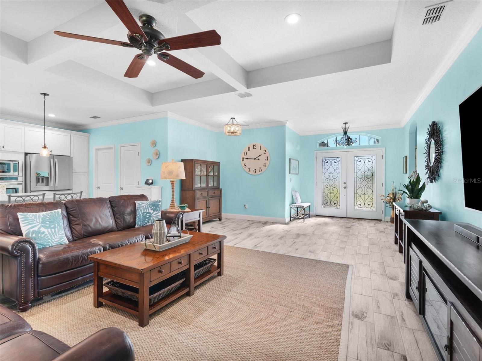 Discover your dream home in the desirable gated Grand Landing community of Palm Coast! This beautifully maintained end unit, featuring 3 bedrooms and 2 bathrooms, was built in 2018 and has undergone numerous upgrades since it was purchased, offering a perfect mix of modern elegance and comfortable living. As you enter, you'll be greeted by an open floor plan featuring new flooring throughout, creating a warm and inviting atmosphere. The updated kitchen is a chef’s delight, showcasing gorgeous cabinetry, quartz countertops, and a stylish backsplash—perfect for all your cooking needs. The spacious living area is ideal for entertaining and relaxation, enhanced by upgraded lighting, ceiling fans, and crown molding. Retreat to the luxurious master suite, which features a stand-up shower and upgraded fixtures in the master bath for a spa-like experience. Step outside to your private outdoor oasis, where the covered and screened lanai, complete with an epoxy floor, offers a perfect setting to enjoy serene views. Sit in your lanai with a cup of coffee and take in the tranquil backyard view of the water. Being an end unit means you have no nearby buildings, providing extra privacy to fully enjoy your surroundings. The beautifully landscaped backyard, complete with a fence for added privacy, also offers plenty of space to add a swimming pool, enhancing your outdoor living experience! The Grand Landing community boasts fantastic amenities, including a community pool, fitness center, and a kids' park, making it perfect for active lifestyles. Located in a superb area, this home is conveniently close to restaurants and stores, with easy access to walking paths and just minutes from the beach. Being part of a gated community adds an extra layer of security and peace of mind. Many enhancements have been made since purchase, ensuring this home is move-in ready and tailored for modern living. What’s not to love about this incredible opportunity? Don’t miss out! Call to schedule a showing today and experience the lifestyle this property has to offer! The seller will also provide 6 months of lawn maintenance.