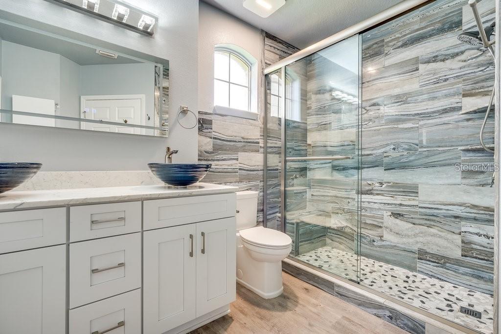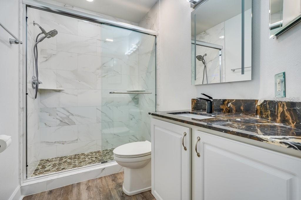 Experience the best of Grand Haven living with this one-of-a-kind fully renovated 3 bedroom 3 bath condominium including an oversized 2 car garage. This is a coveted ground floor, corner unit with lots of natural light, over 2000 square feet, and beautiful golf course views from the owner’s suite, living room and kitchen. Walk right out your large, screened lanai and hit balls on the driving range or walk along the intracoastal waterway and take in the views and Florida sunshine. The huge Master suite has his and her closets and a spacious bathroom with 2 separate sink vanities, a garden tub and luxurious shower. The guest bedroom includes an en-suite bathroom with walk in closet for extra convenience. The third bedroom has a murphy bed and can be used for an office, gym or additional friends and family that will come to visit. Plus, there's a large laundry room with cabinets & laundry tub for added efficiency! Your condo is located on the Jack Nicklaus golf course and next to the clubhouse with a full-service restaurant and only 1 block to the Village Center with its cafe, pool, spa, fitness center, tournament croquet court, bocce ball, tennis & pickle ball courts! Explore miles of walking and bike trails right out your door! Grand Haven is a private 1400-acre community bordered by the Intracoastal Waterway and a 4000 acre natural preserve. It is close to Flagler Beach and a short drive to St Augustine and Daytona Beach.
