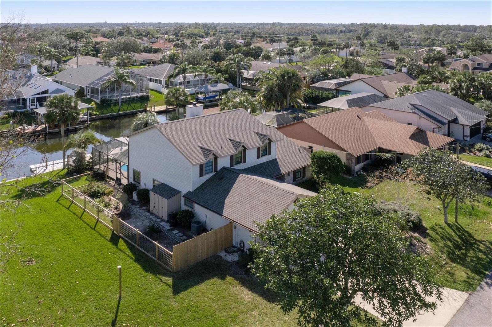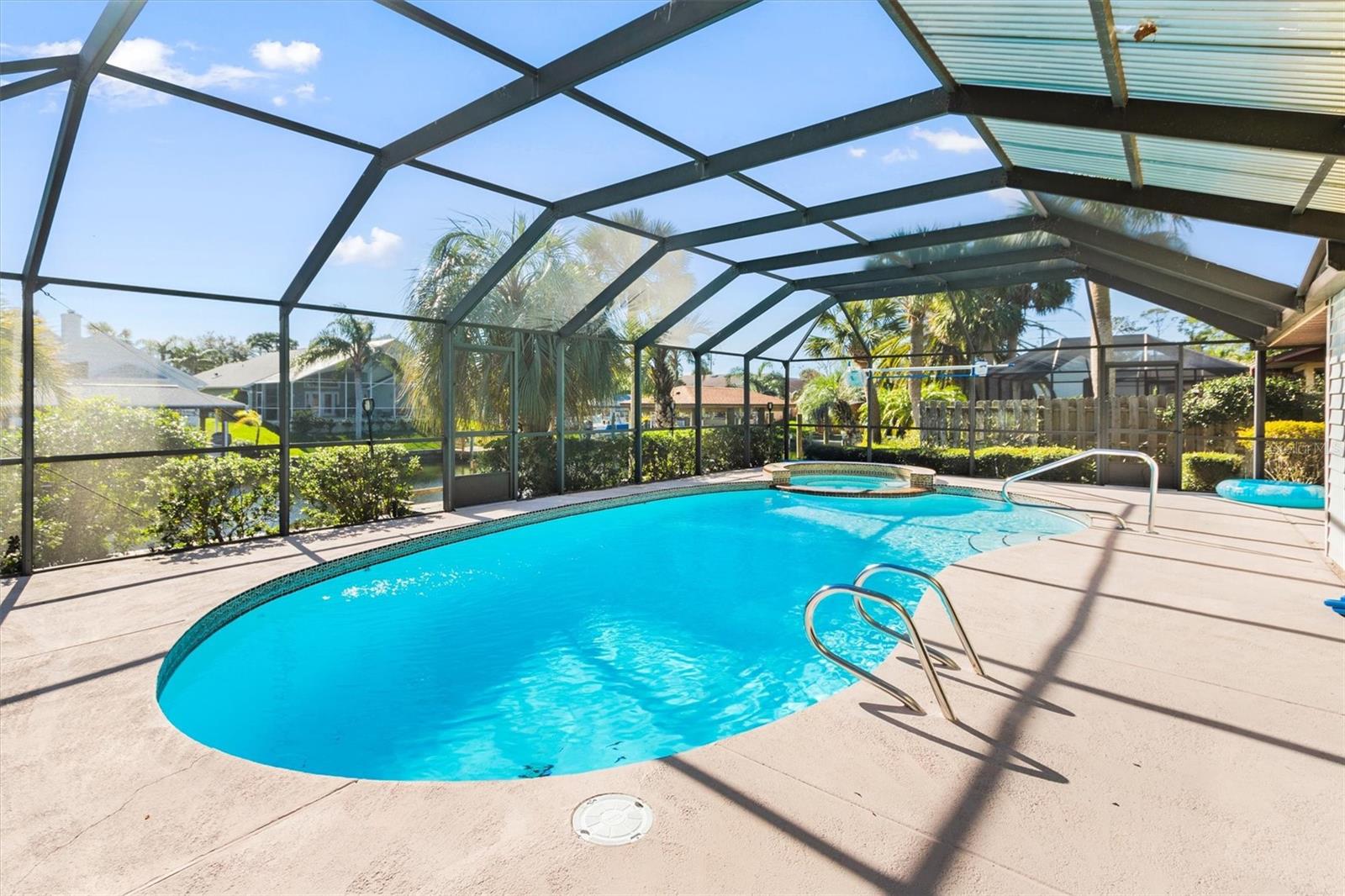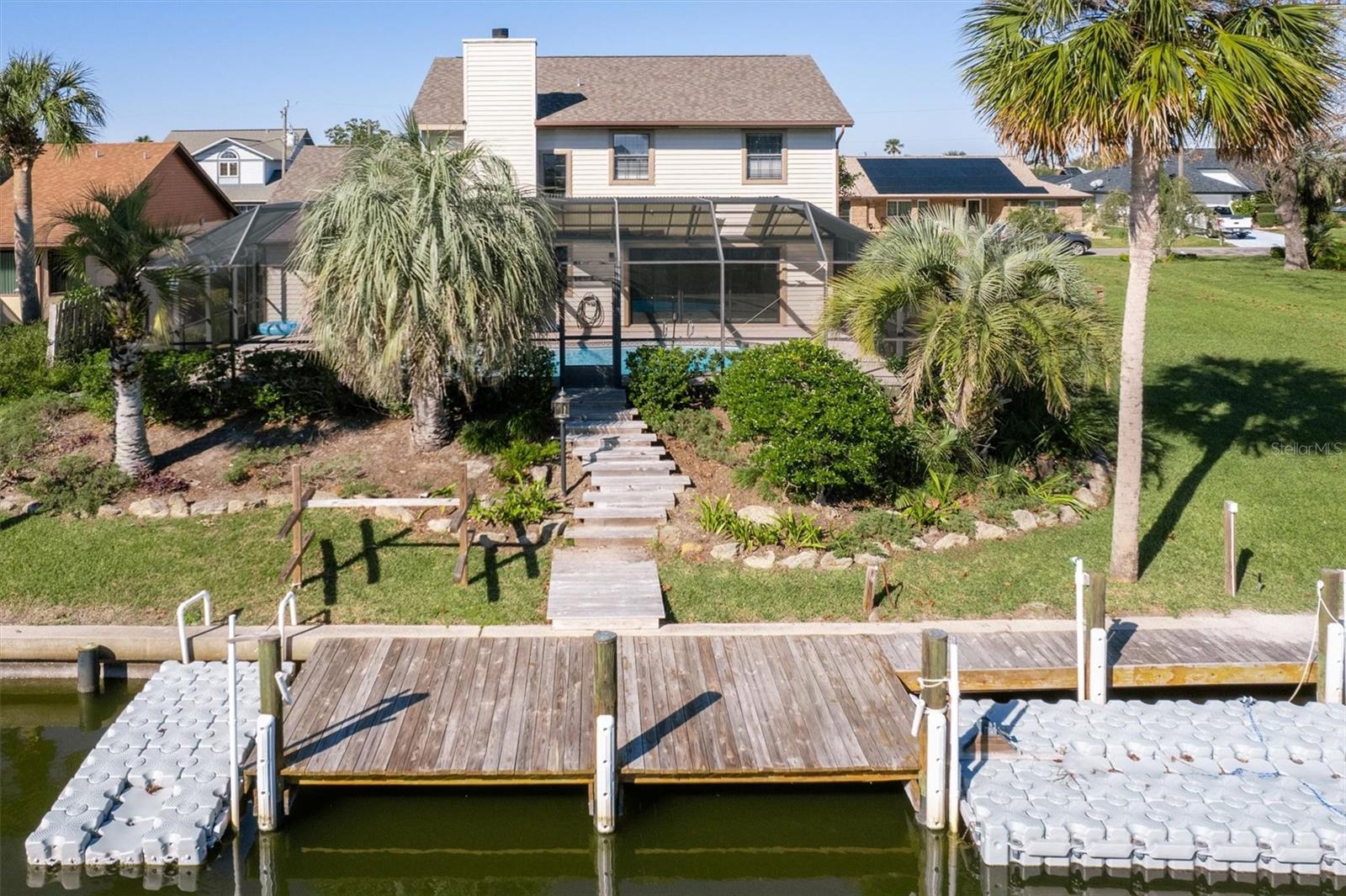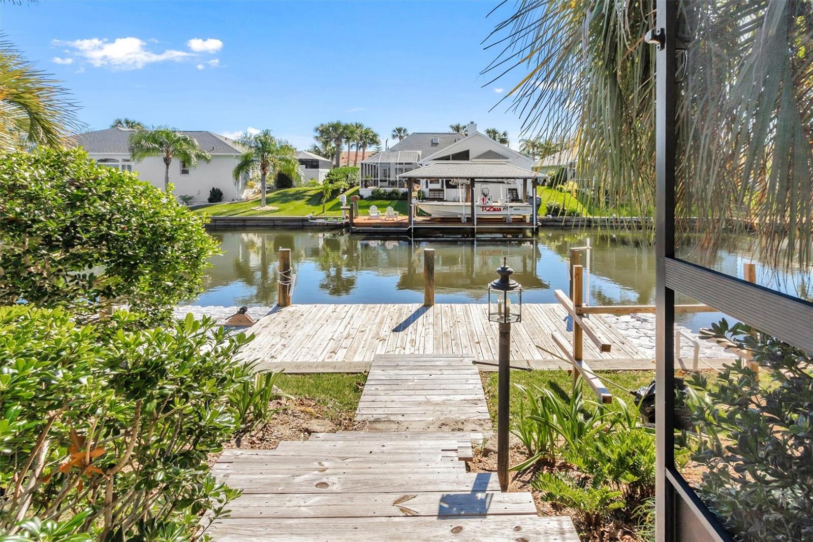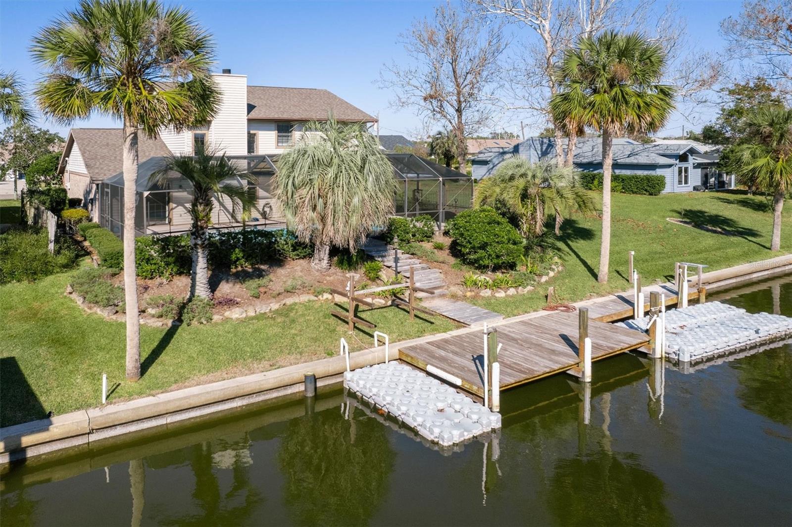 Experience the best of Florida living in this stunning canal-front pool home. This 3-bedroom, 2.5-bathroom home embodies the relaxed lifestyle it was created to provide, blending comfort, elegance, and functionality in every detail. From the moment you enter through the double front doors, you’re greeted by a sense of warmth and charm. The kitchen is a true centerpiece, perfectly equipped for everything from casual meals to grand gatherings. With ample cabinet and counter space, an island for seating, and a pantry closet to keep essentials neatly tucked away, this space is both practical and beautiful. The family room and dining room offer stunning views to enjoy while you dine. The living room is a welcoming retreat, featuring a cozy fireplace and tall ceilings that enhance the sense of space.. The outdoor living area includes a sparkling screened in pool overlooking the canal. Beyond, the backyard provides green space ideal for gardening or play, and a walkway leads to the dock and canal. Here, you’ll find a platform-style dock, the perfect spot for fishing, boating, or simply soaking in the Florida sunshine as dolphins swim by. The en-suite master bedroom can be found downstairs and is a private sanctuary, offering tranquil views of the pool and a luxurious master bath with a walk-in shower. Head up the stairs where a spacious 10x9 loft that overlooks the living room, can be used as a second family room or just a spot to read. There are two additional bedrooms and a shared bathroom on the second level. Nestled on a quiet street, this home offers the charm of a small neighborhood while being just minutes from beaches, shopping, dining, and more. Come and see for yourself—your perfect Florida lifestyle awaits!