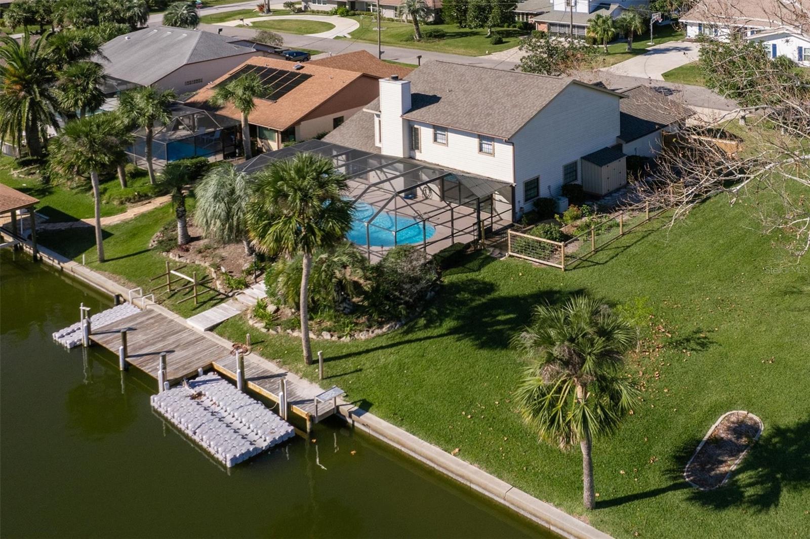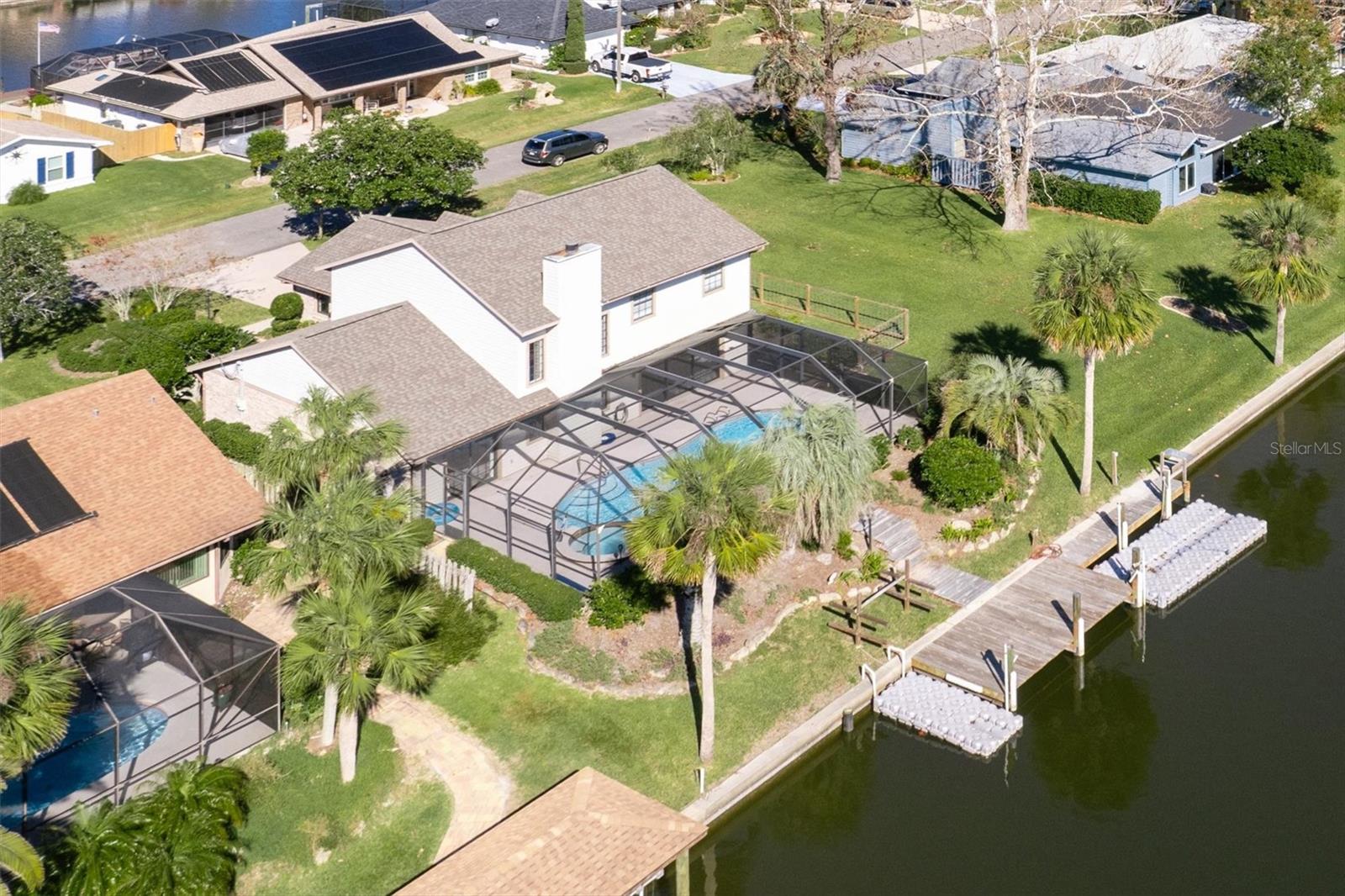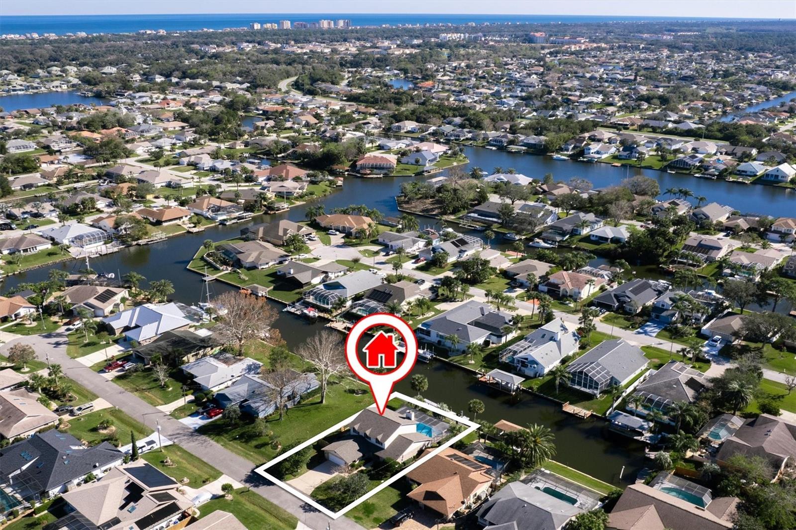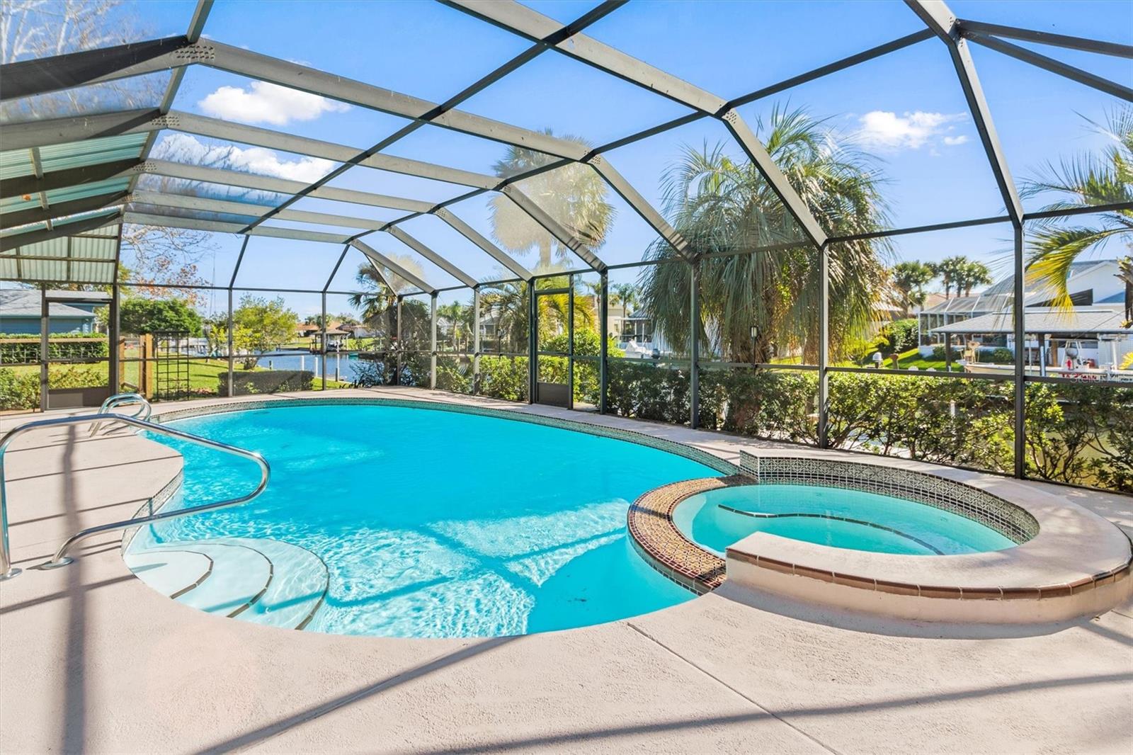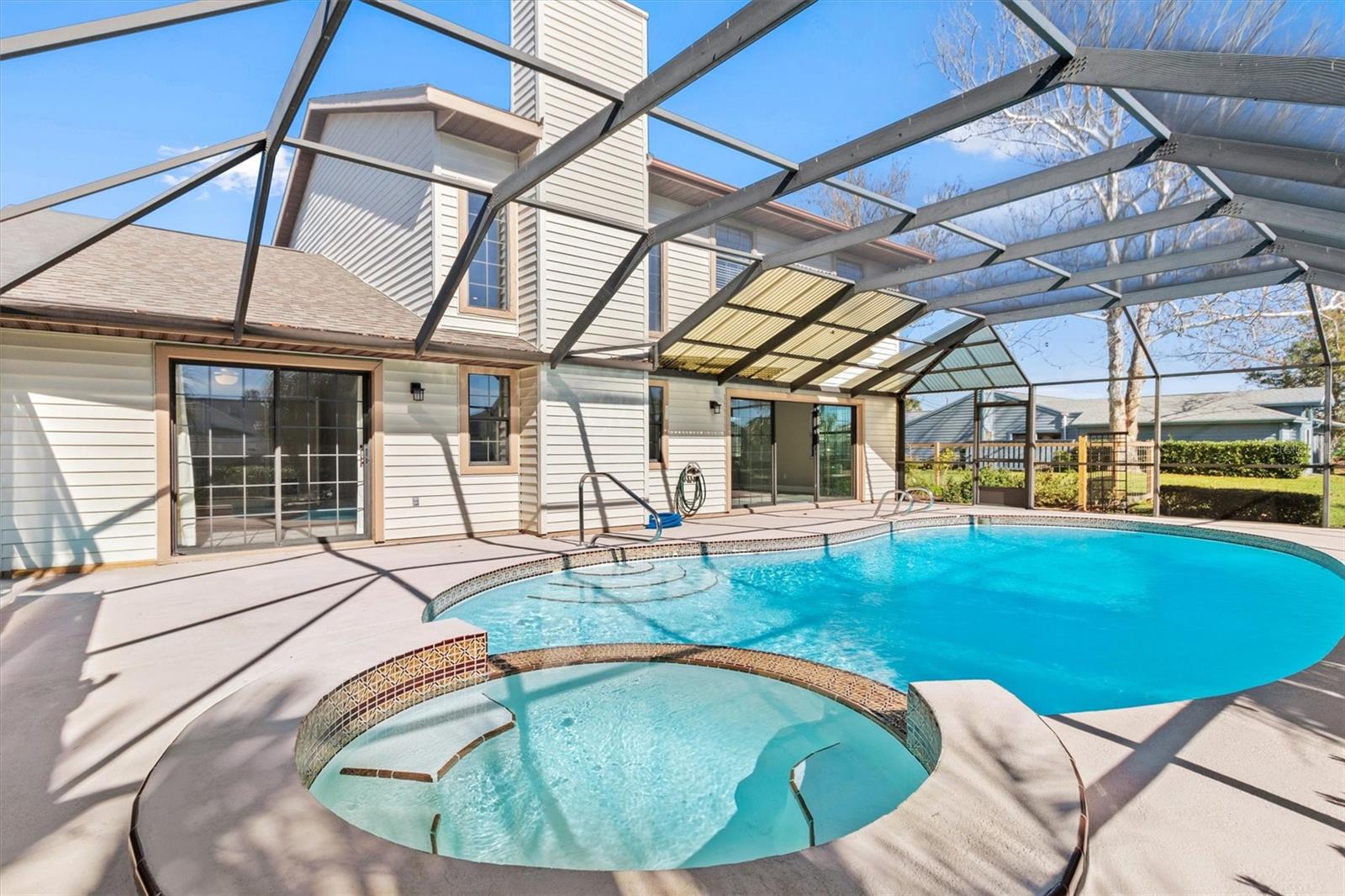 Experience the best of Florida living in this stunning canal-front pool home. This 3-bedroom, 2.5-bathroom home embodies the relaxed lifestyle it was created to provide, blending comfort, elegance, and functionality in every detail. From the moment you enter through the double front doors, you’re greeted by a sense of warmth and charm. The kitchen is a true centerpiece, perfectly equipped for everything from casual meals to grand gatherings. With ample cabinet and counter space, an island for seating, and a pantry closet to keep essentials neatly tucked away, this space is both practical and beautiful. The family room and dining room offer stunning views to enjoy while you dine. The living room is a welcoming retreat, featuring a cozy fireplace and tall ceilings that enhance the sense of space.. The outdoor living area includes a sparkling screened in pool overlooking the canal. Beyond, the backyard provides green space ideal for gardening or play, and a walkway leads to the dock and canal. Here, you’ll find a platform-style dock, the perfect spot for fishing, boating, or simply soaking in the Florida sunshine as dolphins swim by. The en-suite master bedroom can be found downstairs and is a private sanctuary, offering tranquil views of the pool and a luxurious master bath with a walk-in shower. Head up the stairs where a spacious 10x9 loft that overlooks the living room, can be used as a second family room or just a spot to read. There are two additional bedrooms and a shared bathroom on the second level. Nestled on a quiet street, this home offers the charm of a small neighborhood while being just minutes from beaches, shopping, dining, and more. Come and see for yourself—your perfect Florida lifestyle awaits!