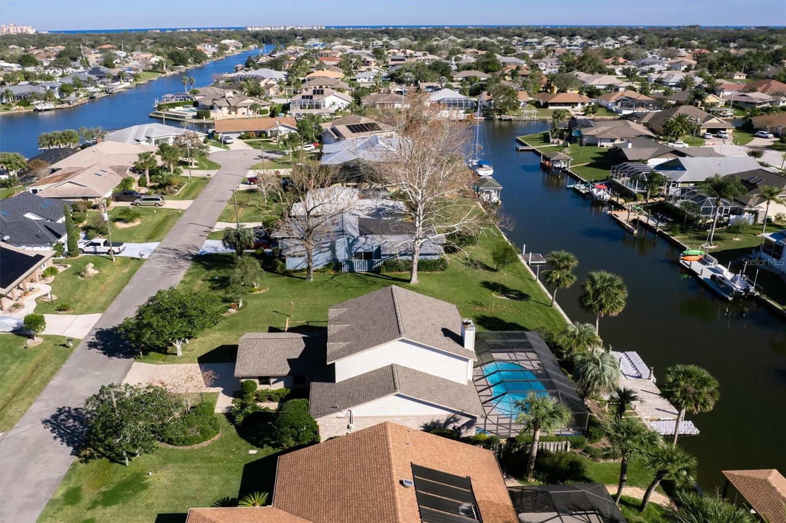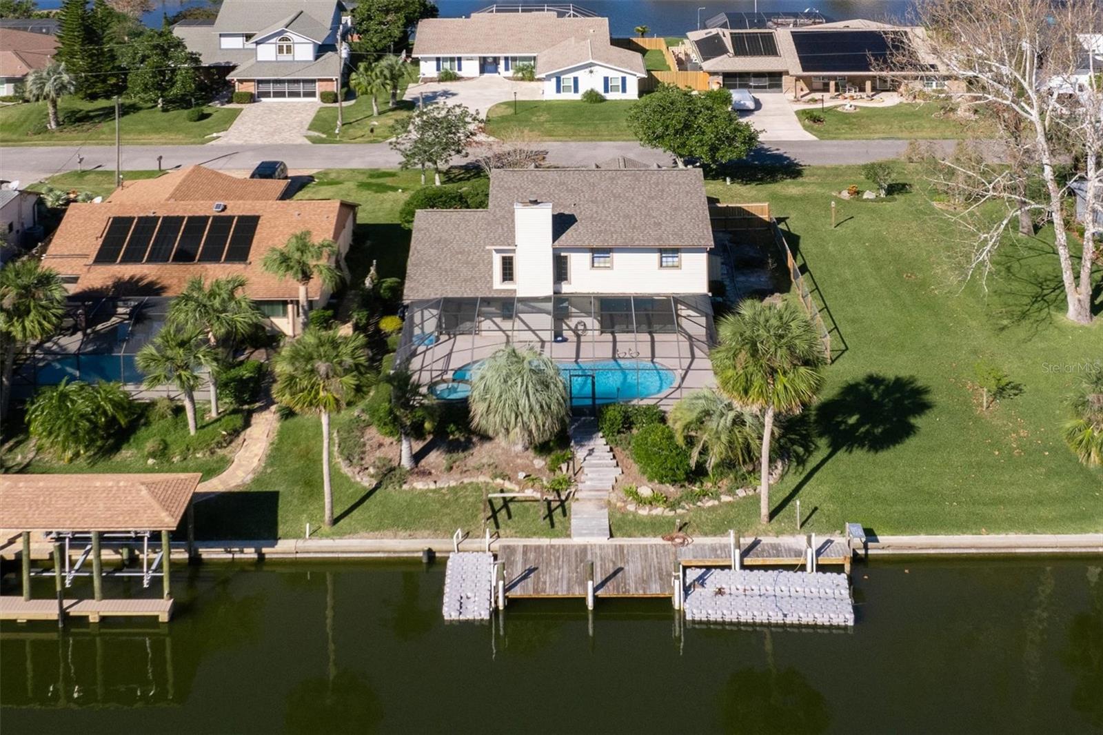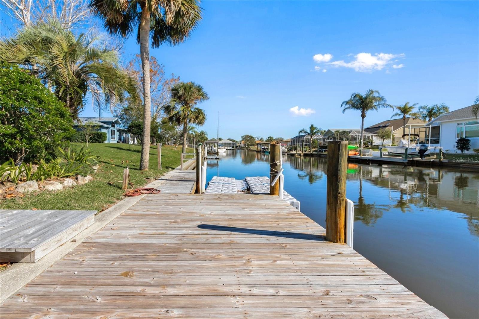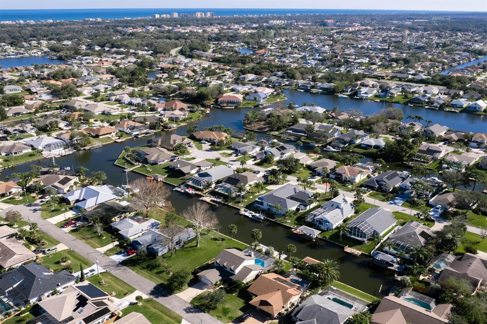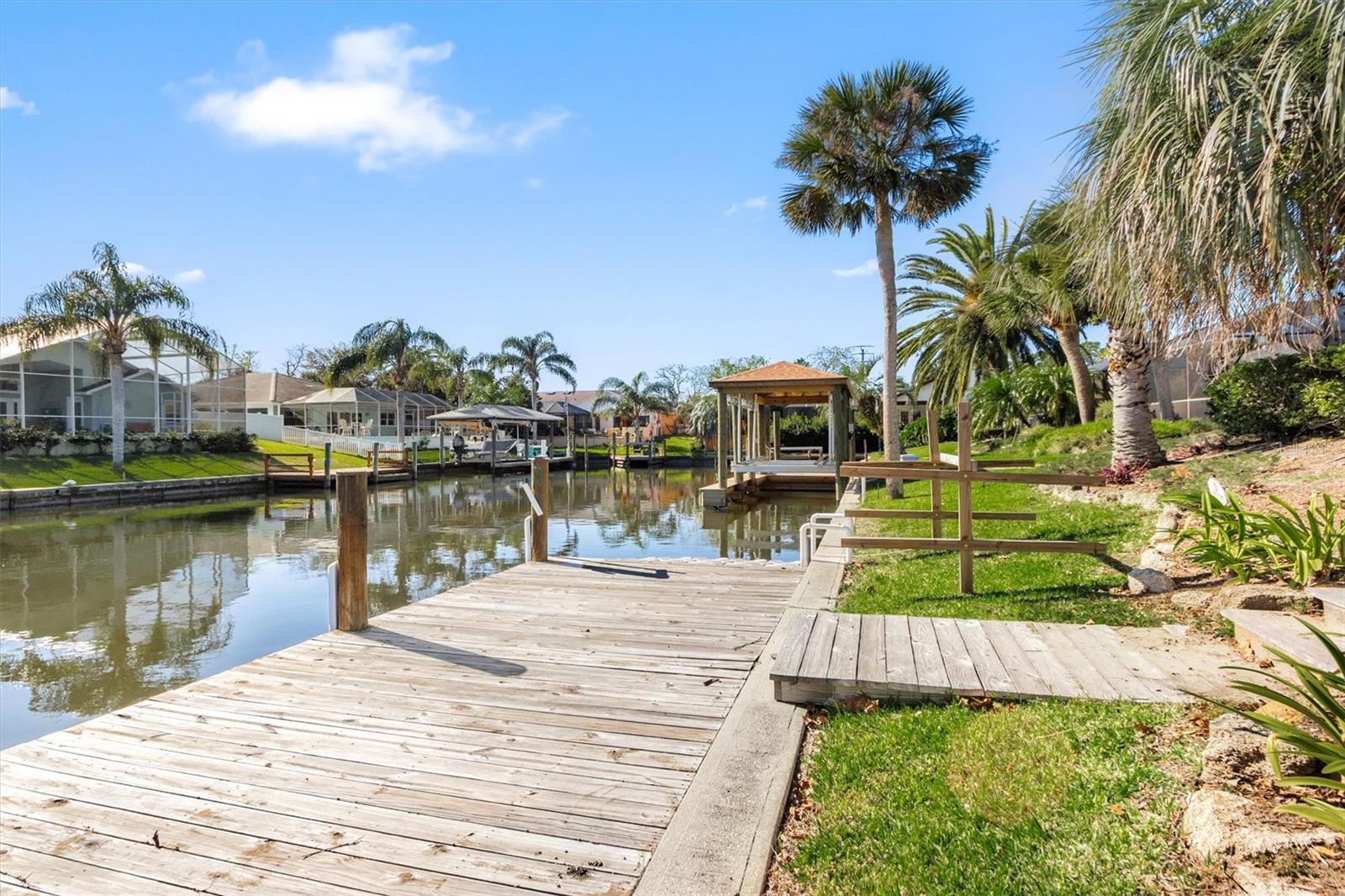 Experience the best of Florida living in this stunning canal-front pool home. This 3-bedroom, 2.5-bathroom home embodies the relaxed lifestyle it was created to provide, blending comfort, elegance, and functionality in every detail. From the moment you enter through the double front doors, you’re greeted by a sense of warmth and charm. The kitchen is a true centerpiece, perfectly equipped for everything from casual meals to grand gatherings. With ample cabinet and counter space, an island for seating, and a pantry closet to keep essentials neatly tucked away, this space is both practical and beautiful. The family room and dining room offer stunning views to enjoy while you dine. The living room is a welcoming retreat, featuring a cozy fireplace and tall ceilings that enhance the sense of space.. The outdoor living area includes a sparkling screened in pool overlooking the canal. Beyond, the backyard provides green space ideal for gardening or play, and a walkway leads to the dock and canal. Here, you’ll find a platform-style dock, the perfect spot for fishing, boating, or simply soaking in the Florida sunshine as dolphins swim by. The en-suite master bedroom can be found downstairs and is a private sanctuary, offering tranquil views of the pool and a luxurious master bath with a walk-in shower. Head up the stairs where a spacious 10x9 loft that overlooks the living room, can be used as a second family room or just a spot to read. There are two additional bedrooms and a shared bathroom on the second level. Nestled on a quiet street, this home offers the charm of a small neighborhood while being just minutes from beaches, shopping, dining, and more. Come and see for yourself—your perfect Florida lifestyle awaits!