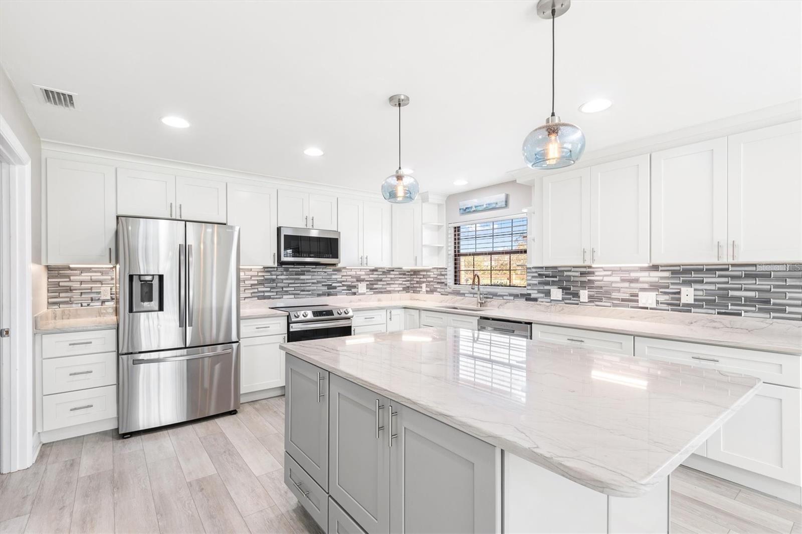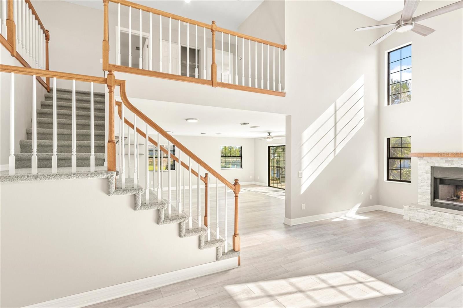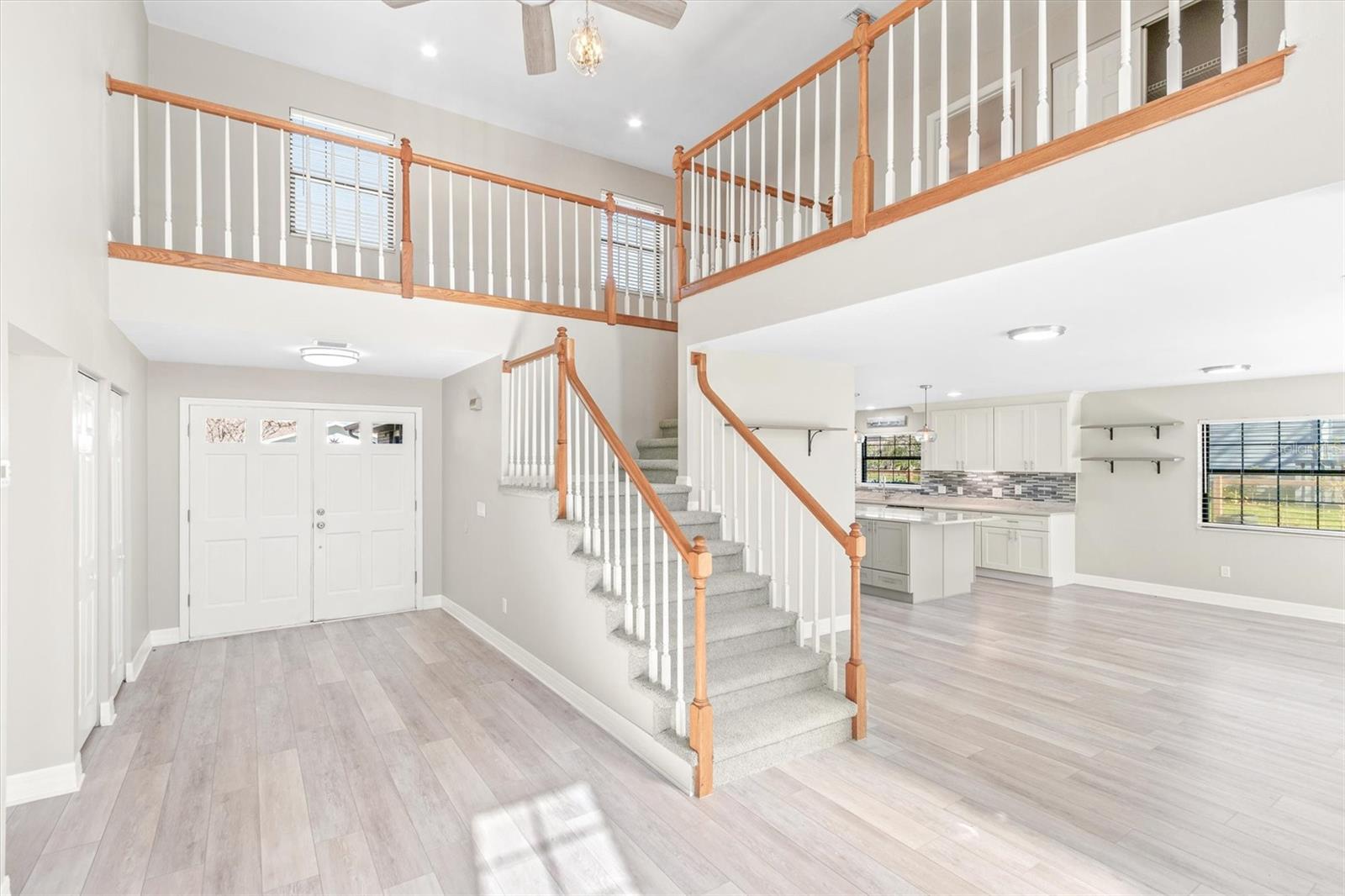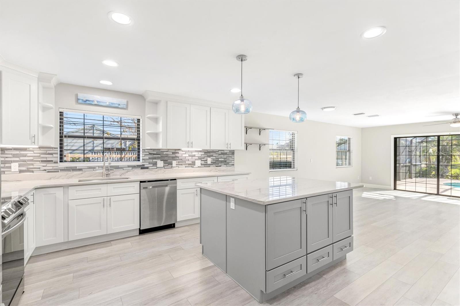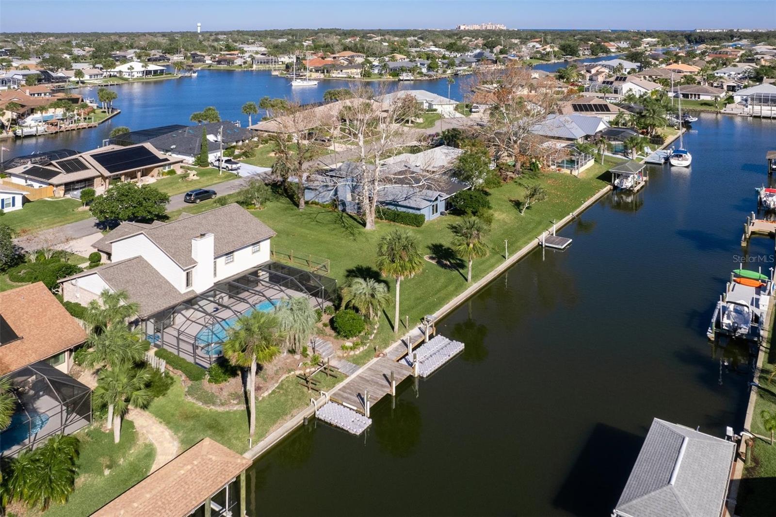 Experience the best of Florida living in this stunning canal-front pool home. This 3-bedroom, 2.5-bathroom home embodies the relaxed lifestyle it was created to provide, blending comfort, elegance, and functionality in every detail. From the moment you enter through the double front doors, you’re greeted by a sense of warmth and charm. The kitchen is a true centerpiece, perfectly equipped for everything from casual meals to grand gatherings. With ample cabinet and counter space, an island for seating, and a pantry closet to keep essentials neatly tucked away, this space is both practical and beautiful. The family room and dining room offer stunning views to enjoy while you dine. The living room is a welcoming retreat, featuring a cozy fireplace and tall ceilings that enhance the sense of space.. The outdoor living area includes a sparkling screened in pool overlooking the canal. Beyond, the backyard provides green space ideal for gardening or play, and a walkway leads to the dock and canal. Here, you’ll find a platform-style dock, the perfect spot for fishing, boating, or simply soaking in the Florida sunshine as dolphins swim by. The en-suite master bedroom can be found downstairs and is a private sanctuary, offering tranquil views of the pool and a luxurious master bath with a walk-in shower. Head up the stairs where a spacious 10x9 loft that overlooks the living room, can be used as a second family room or just a spot to read. There are two additional bedrooms and a shared bathroom on the second level. Nestled on a quiet street, this home offers the charm of a small neighborhood while being just minutes from beaches, shopping, dining, and more. Come and see for yourself—your perfect Florida lifestyle awaits!