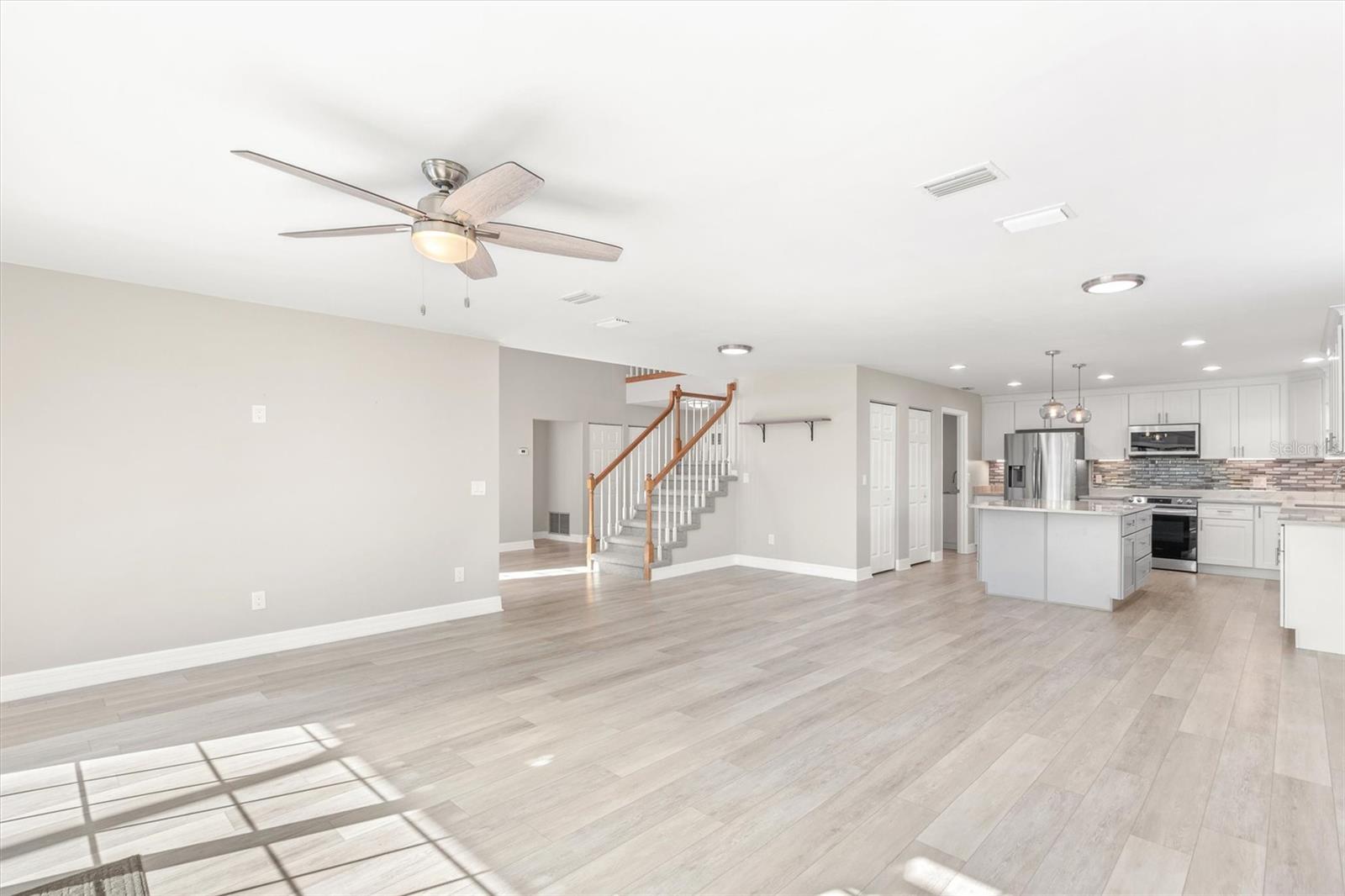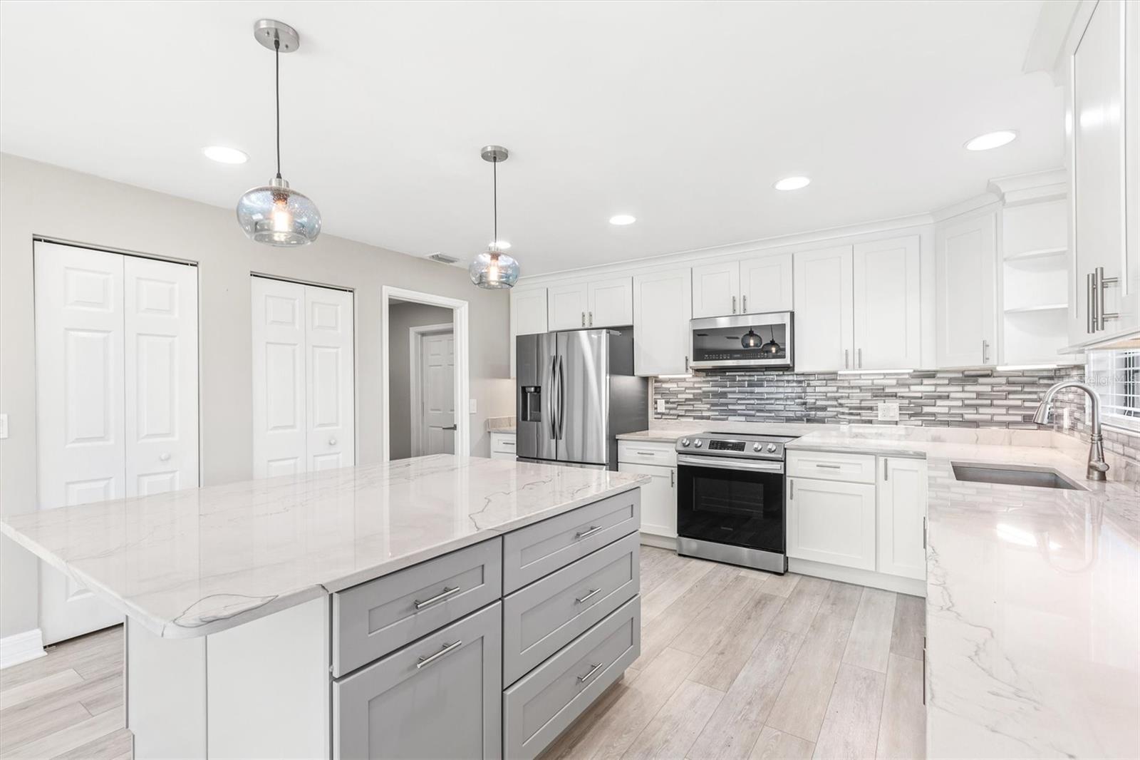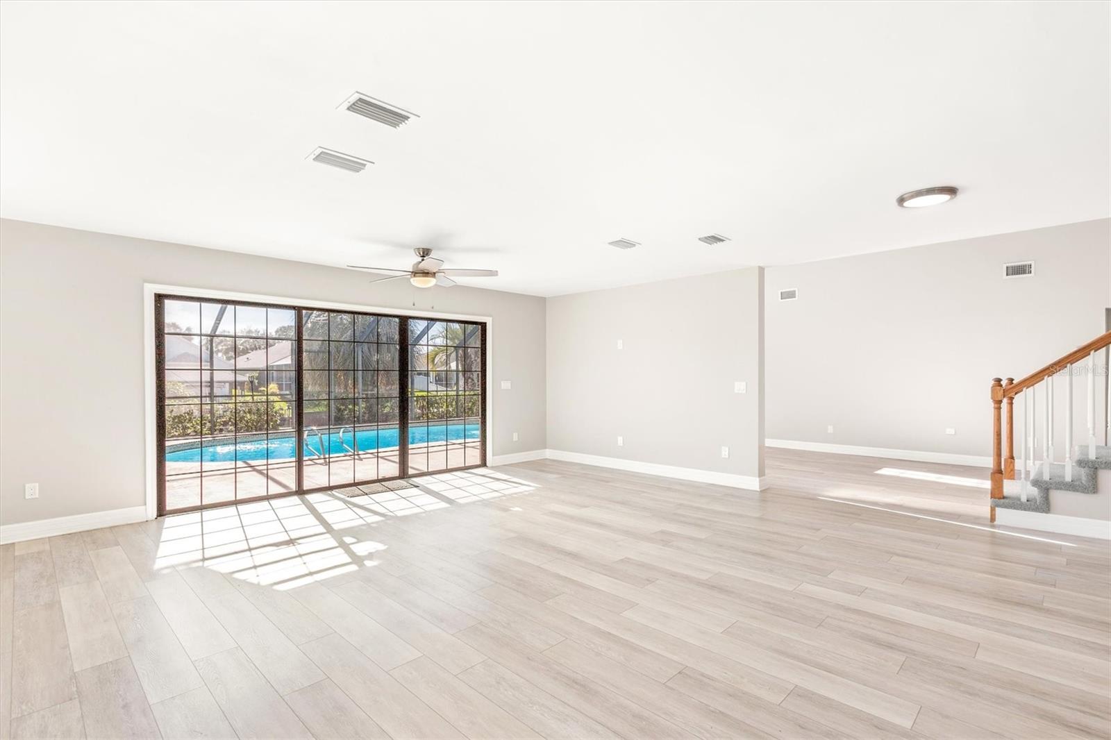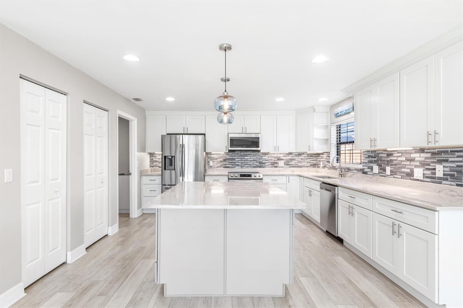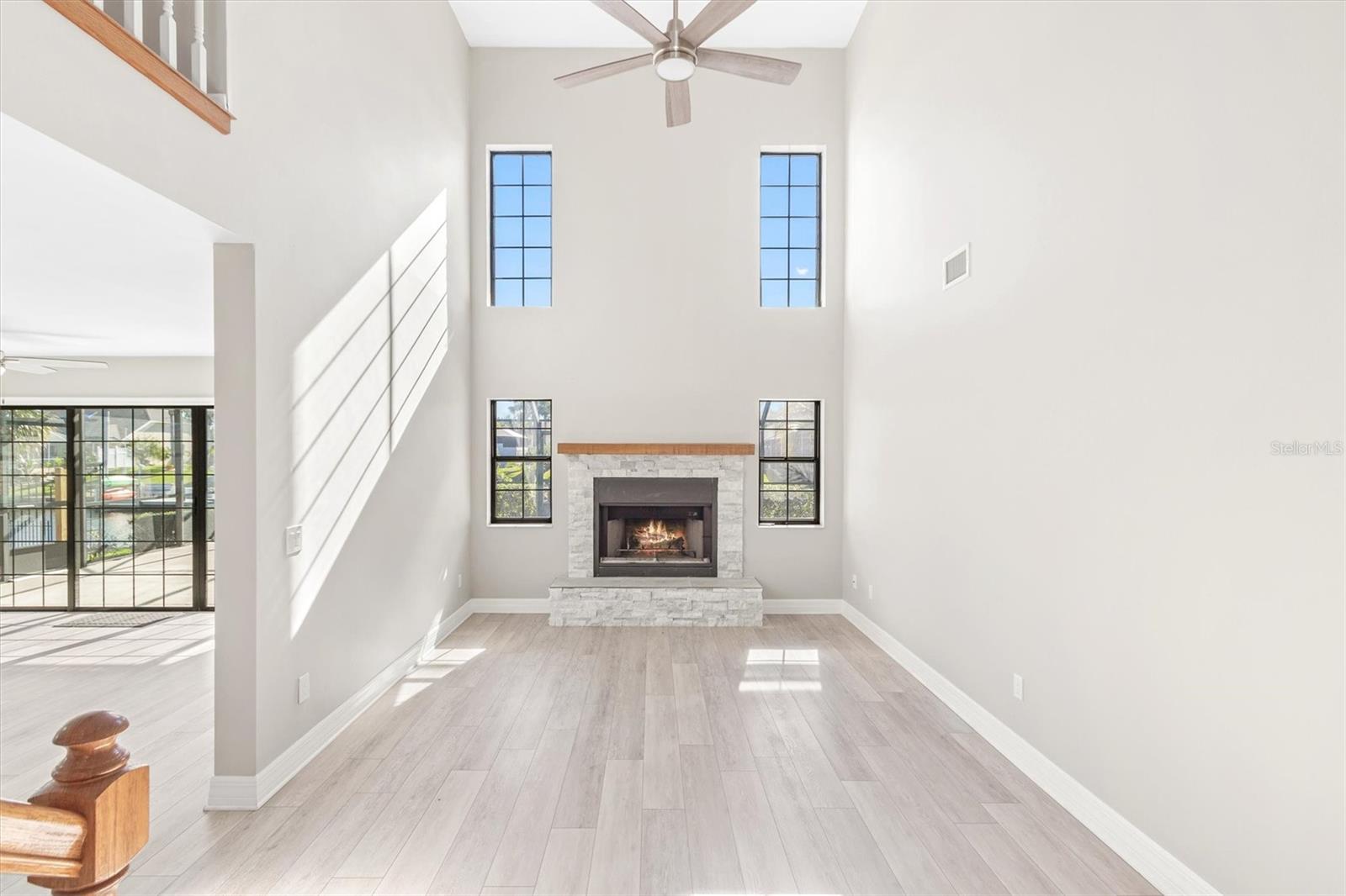 Experience the best of Florida living in this stunning canal-front pool home. This 3-bedroom, 2.5-bathroom home embodies the relaxed lifestyle it was created to provide, blending comfort, elegance, and functionality in every detail. From the moment you enter through the double front doors, you’re greeted by a sense of warmth and charm. The kitchen is a true centerpiece, perfectly equipped for everything from casual meals to grand gatherings. With ample cabinet and counter space, an island for seating, and a pantry closet to keep essentials neatly tucked away, this space is both practical and beautiful. The family room and dining room offer stunning views to enjoy while you dine. The living room is a welcoming retreat, featuring a cozy fireplace and tall ceilings that enhance the sense of space.. The outdoor living area includes a sparkling screened in pool overlooking the canal. Beyond, the backyard provides green space ideal for gardening or play, and a walkway leads to the dock and canal. Here, you’ll find a platform-style dock, the perfect spot for fishing, boating, or simply soaking in the Florida sunshine as dolphins swim by. The en-suite master bedroom can be found downstairs and is a private sanctuary, offering tranquil views of the pool and a luxurious master bath with a walk-in shower. Head up the stairs where a spacious 10x9 loft that overlooks the living room, can be used as a second family room or just a spot to read. There are two additional bedrooms and a shared bathroom on the second level. Nestled on a quiet street, this home offers the charm of a small neighborhood while being just minutes from beaches, shopping, dining, and more. Come and see for yourself—your perfect Florida lifestyle awaits!