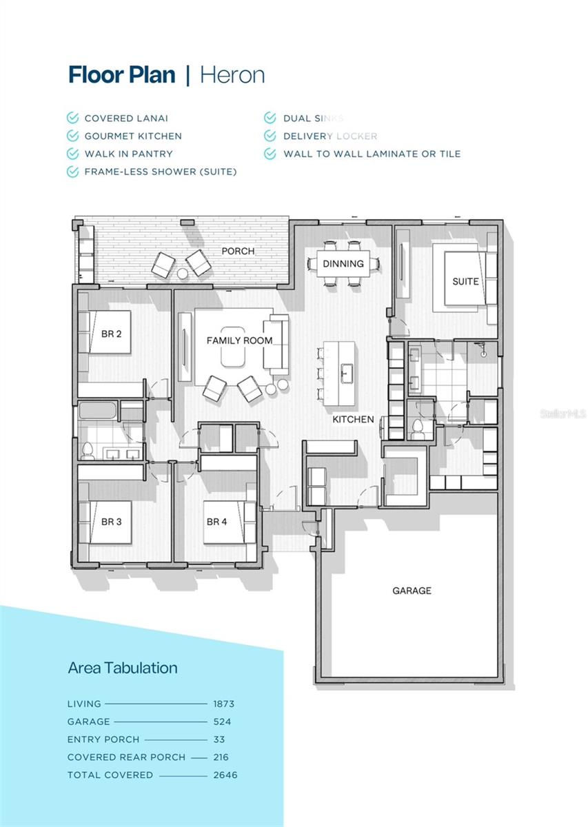 "MOVE IN READY" Heron- Beautiful New Construction in an established neighborhood! Once you walk past the stone front facade and see the soaring 9+ foot ceilings and the extra-large (8 foot) slide you won't want to leave! The beautiful kitchen is a cook's dream. Quartz counters atop solid wood cabinets with soft closed doors and drawers with elegant hardware. A center island completes this dream room. You won't believe the huge pantry and laundry areas tucked away and out of sight. The Primary bedroom is spacious and has a top tier bathroom with a tiled walk-in shower, dual sinks and a massive walk-in closet and separate toilet room. There are 3 more spacious bedrooms. The entire family can comfortably spread out in the expansive great room. There is solid surface flooring throughout the home for easy cleaning. Upgraded raised height vanities and toilets in all bathrooms. Extra-large covered lanai for enjoying the Florida weather. Don't miss out on this incredible opportunity to own this beautiful home. Call Today!!! Come visit us at our model home at 159 Bird of Paradise.