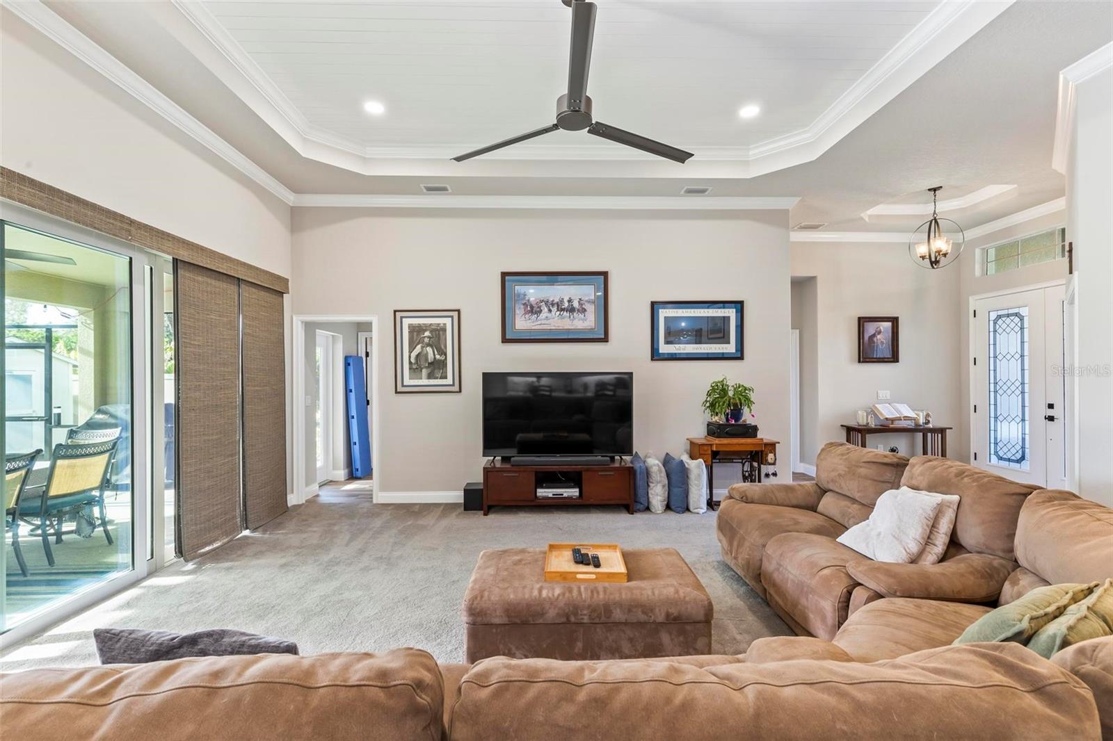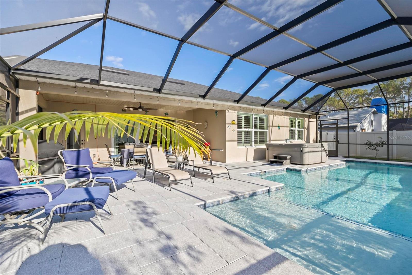 Welcome to your dream home in the charming Pine Lakes subdivision of Palm Coast! Just 20 minutes from the beautiful shores of Flagler Beach, this custom-built 2022 home by PCB of North Florida offers modern luxury and thoughtful design. The open floor plan is perfect for entertaining, with three sliding glass doors that open seamlessly to the screened-in, heated saltwater pool and above-ground spa, creating the ultimate indoor-outdoor living experience. Inside, no detail has been overlooked, from the elegant crown molding to the luxury vinyl plank flooring and upgraded luxury carpet. The kitchen is a chef’s delight, featuring granite countertops, plenty of cabinet space, and a layout that makes meal prep a breeze. Retreat to the spacious master bedroom, complete with a large walk-in closet and an en-suite bathroom featuring a soaking tub—your personal spa-like sanctuary. The owners have added thoughtful upgrades including, whole home automatic switched generator, whole home water softener, point of delivery osmosis water filtration, ceiling fans, fencing, a shed, well delivered irrigation, professional landscaping, and plantation shutters throughout. This stunning home combines modern elegance with comfort, all set in a peaceful neighborhood. Don’t miss this opportunity to own a truly exceptional property!