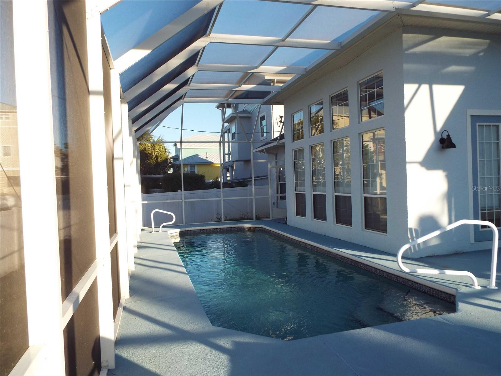Welcome to 57 Rollins Drive located on the East Coast of Florida on Route AIA between St. Augustine and Daytona Beach. This very nice, spacious home is among other fine homes in the wonderful Seaside Community of Marineland Acres. This gem is perfect for beach lovers and Surfers of all age groups! The home consists of almost 2,000 sq feet of living space and has solid poured concrete walls! The home boasts modern architecture, with towering ceilings, central vac, tiled floors, and a spacious open floor plan for relaxing and entertaining! There are 3 bedrooms, Master bath with jacuzzi garden tub and 2 guest bedrooms with a bathroom that provides outside access to the pool area! Relax outdoors and keep fit in the 10x30 lap pool. Enjoy your morning coffee with the beautiful sunrise and best of all relax on the fabulous, uncrowded Atlantic Beach that is only a few steps from your own front door! HOUSE SOLD AS IS ! ROOF 2 YEARS OLD, A/C REPLACED NOV 2024, POOL SCREEN REPLACED 2022