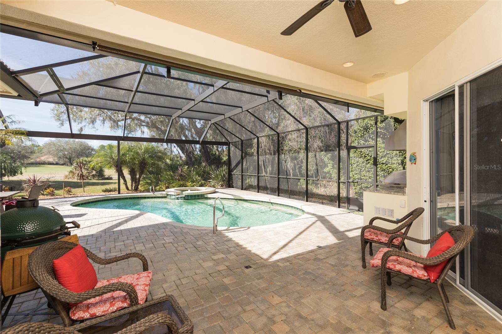 Golf Course Home with Private Pool & Outdoor Oasis in Grand Haven!! Welcome to your dream home in the beautiful Grand Haven community! From the moment you walk through the double frosted glass doors, you’ll feel the "wow" factor of this spacious and thoughtfully designed Rutenberg property. Inside, you’ll find formal living and dining areas, plus a separate family room with a stunning fireplace and custom-built-ins — perfect for cozy nights in. Elegant touches like tray ceilings, crown molding, and plantation shutters add a touch of charm throughout. The wraparound kitchen is a cook’s delight, with shiny granite countertops, an island, stainless steel appliances, and a huge walk-in pantry. The sunny breakfast nook is the ideal spot to sip your morning coffee while looking out at the sparkling pool. Your primary suite offers private access to the pool and gorgeous golf course views. The spa-like bathroom has a sunken jetted tub, a walk-in shower, double vanities, and a roomy walk-in closet. The other bedrooms and bathrooms are just as comfortable and give everyone their own space. Step outside and you’ll find your very own backyard oasis. The screened-in pool and spa are ready for relaxing or entertaining, and the outdoor kitchen and covered lanai make BBQs and dinners under the stars easy and fun, all with stunning vista views of the fairway. Extras include an oversized laundry room with custom cabinets, newer Anderson windows in the 3 guest rooms and above the living room fireplace, upgraded screens to maintain clear views of the golf course, and a spacious two-car garage with ample storage. Living in Grand Haven means you get access to two amazing amenity centers with pools, top-notch fitness facilities, and lots of activities. Love to golf? You’ll have a Jack Nicklaus-designed course right in your neighborhood. Tennis, pickleball, and bocce courts are ready for you, too. When you’re done, grab a bite to eat or a drink with neighbors at the café or golf club restaurant. This isn’t just a house — it’s a lifestyle. Come see it for yourself and fall in love with everything this Grand Haven gem has to offer. Book your private tour today!