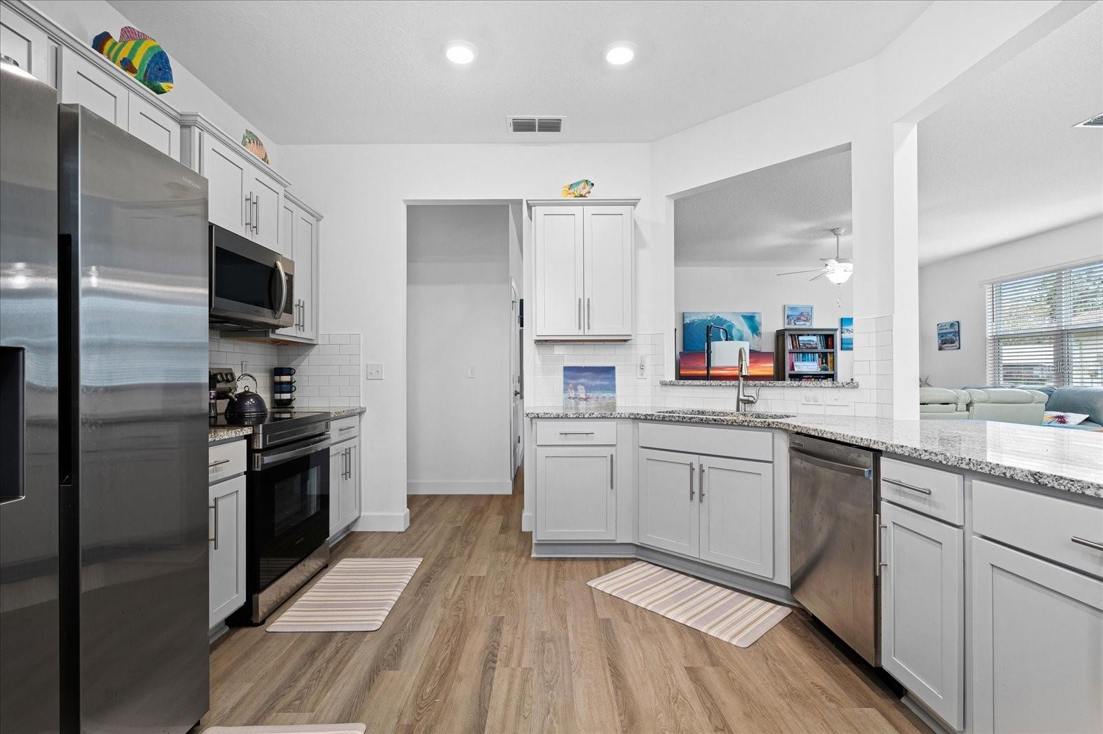 Welcome to this stunning new construction home built in 2023! This home has 10 foot ceilings and all the natural light but still has tons of Recessed lighting. Stunning open floorplan makes this home feel so much bigger than 1800 sf. Granite Countertops throughout, Luxury Vinyl Planking, Ceramic tile, Stainless Steel Appliances, 3 tab architectural shingles! Move in and don't worry about purchasing a single appliance. Comes with Washer, Dryer, Microwave, dishwasher, Refrigerator with an ice maker and electric range stove! The owner is leaving them all! This home is better than new. Enjoy the convenience of being just minutes away from the beach and shopping, making it the perfect blend of having a coastal lifestyle while being close to all the important amenities. My favorite part about Leigh High woods is the Leigh High Trailhead! Enjoy being walking distance to one of the most beautiful biking/walking/running trails that Flagler County has to offer! Last but not least you are a bike ride away from the Southern Recreation Center. if you love trails, pickleball and Tennis then this is the place for you! Don’t miss the opportunity to call this gorgeous home yours!