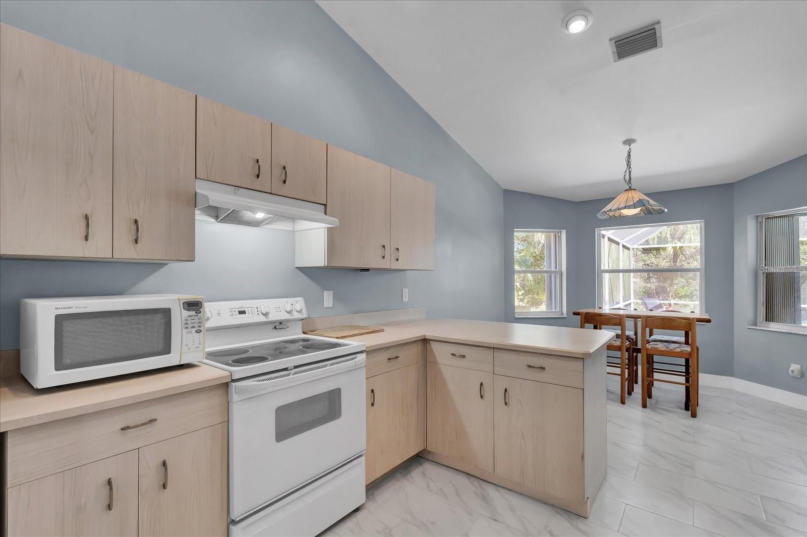 Discover the perfect blend of comfort and functionality in this beautifully maintained 3-bedroom, 2-bathroom pool home. High ceilings and abundant natural light create a spacious and inviting atmosphere. The open-concept dining and living room combo flows seamlessly to the covered patio through pocket sliding doors, offering an effortless indoor-outdoor lifestyle. The bright eat-in kitchen provides direct access to the pool area, making it easy to enjoy morning coffee or weekend barbecues while overlooking the peaceful freshwater canal. Hurricane shutters throughout add extra security and peace of mind. With no carpet and thoughtful upgrades throughout, this move-in-ready home is designed for easy living. Whether you're unwinding by the pool or entertaining in the open living space, this home is ready to welcome you. Schedule your showing today!