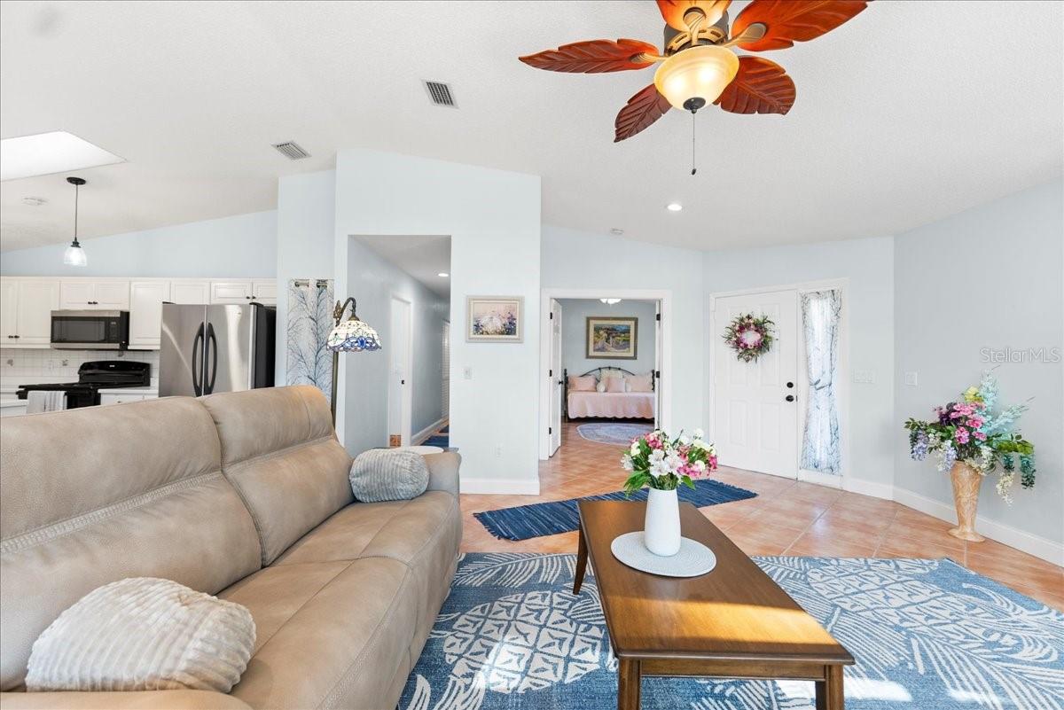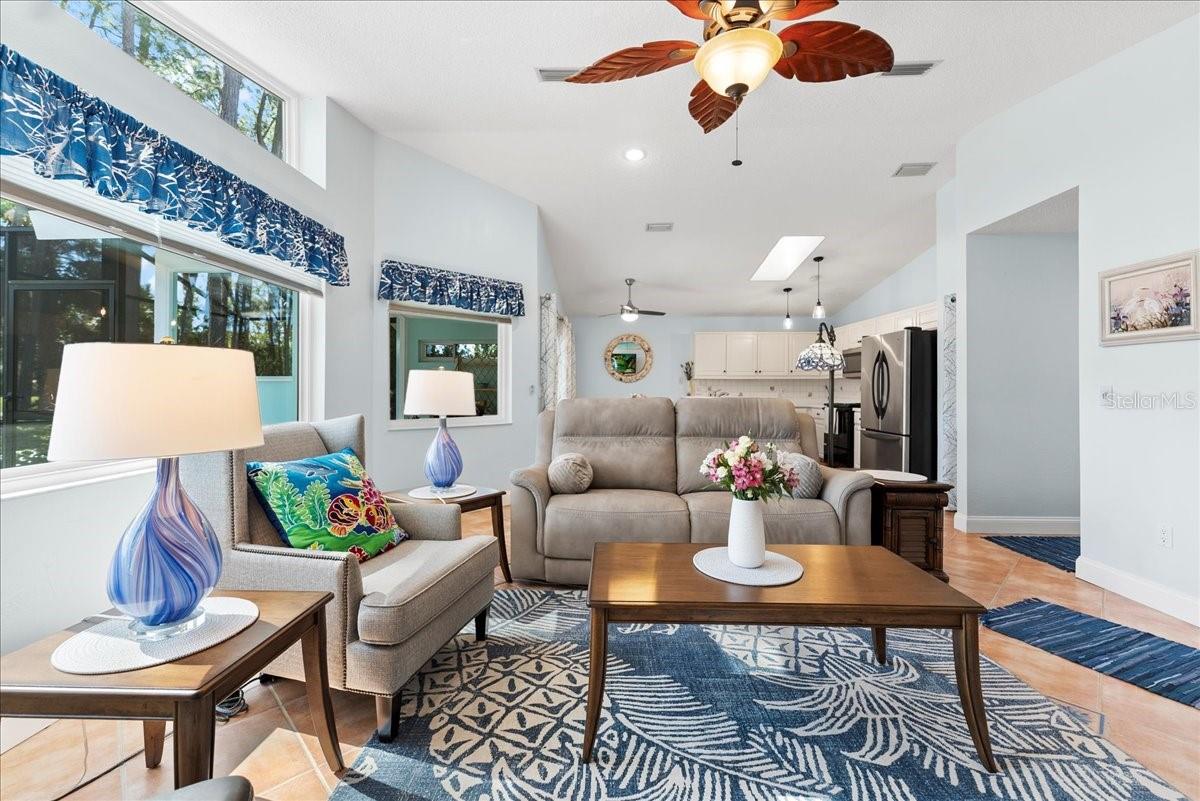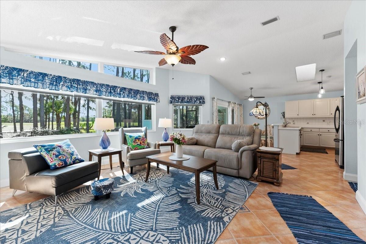 This golf community Florida Home is located on the 11th fairway of Pine Lakes and offers a great value, great location with NO HOA's or CDD's. 3 Bedrooms and 2 Baths all on one floor. On top of that, this home comes completely furnished! Its the perfect square footage to downsize, for a 2nd home and or a rental investment. Fenced in backyard for pets and privacy. All new windows and rear slider in 2022 and new HVAC in 2022. Completely painted inside and out in 2022. New fans and lighting throughout as well. New blinds and other custom upgrades. The tile roof has been meticulously maintained and does not show it's age. Rear view is wooded with expansive views. Easy yard to maintain. Can you update the kitchen and master bathroom, or love it just the way it is? Come see for yourself and make an offer! Seller is motivated!