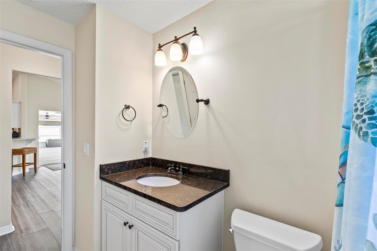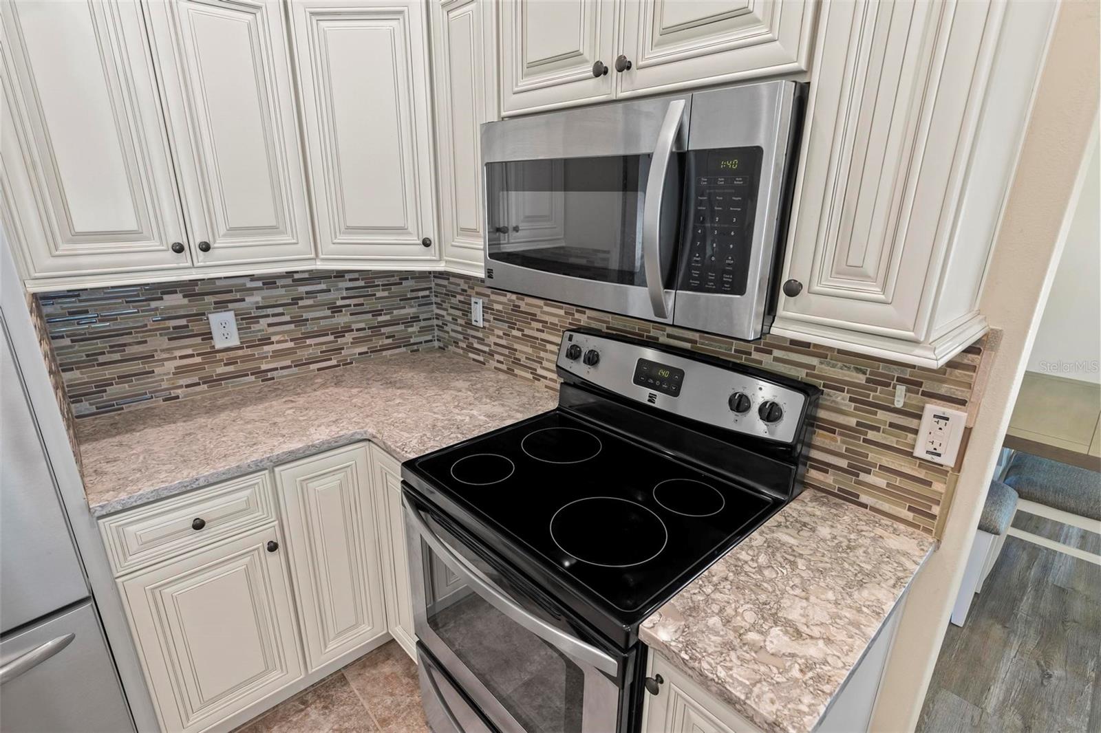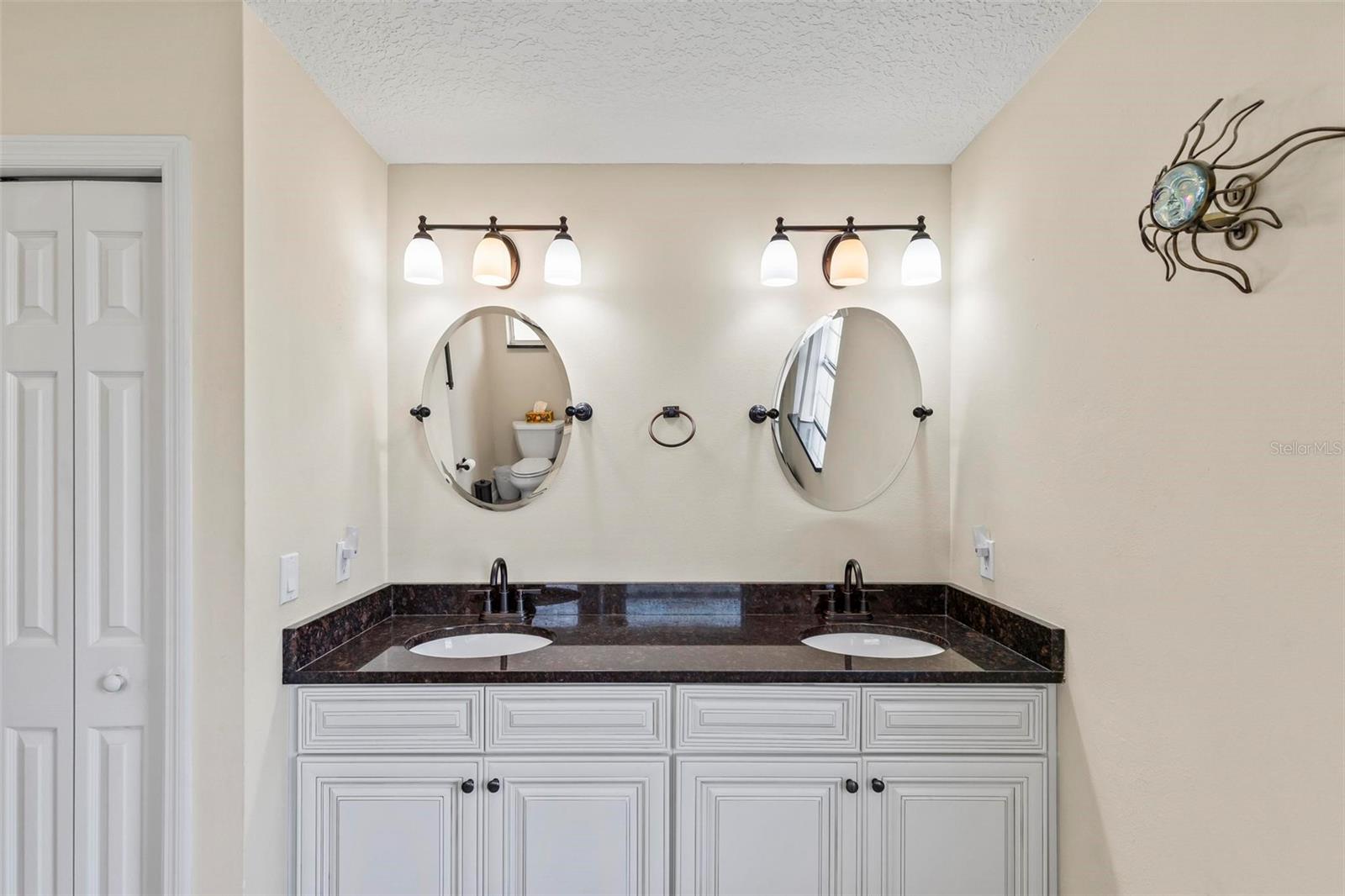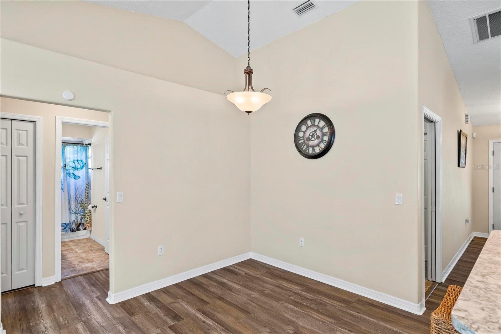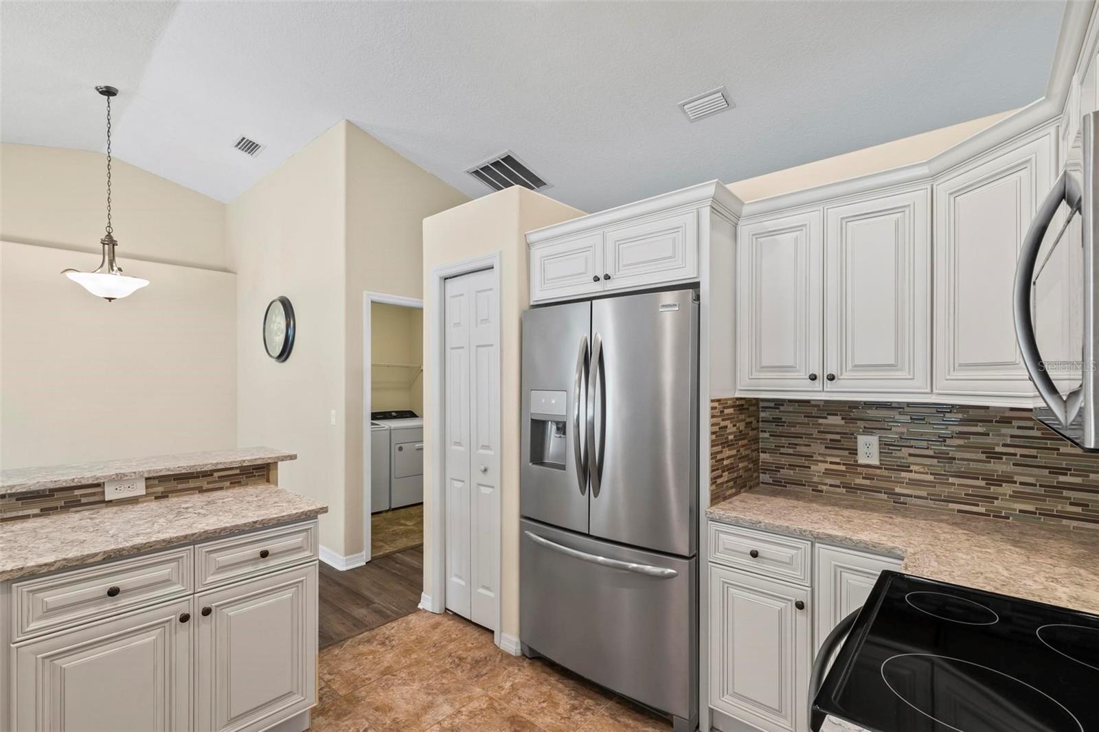 Florida living at it's finest! This pool home with a tile roof is ready for it's new family. It has a split floor plan with the primary bedroom and ensuite on one side and the other 2 bedrooms and bath on the other side. There is a living room and dining area along with a kitchen nook and family room area. The kitchen separates these spaces. Beautiful flooring, niches, vaulted ceiling, curved windows, sliding glass doors heading out to the pool and lanai from the family room and the primary bedroom, stainless steel appliances, solid surface counter tops, double sinks in the primary bath, 2 closets in the primary bedroom with one as a walk-in closet, a tiled walk-in shower in the primary bath, the amazing salt water pool is solar heated with a screened lanai, the yard is beautifully landscaped, and much more! Call to see this home soon. It could be what you have been looking for!