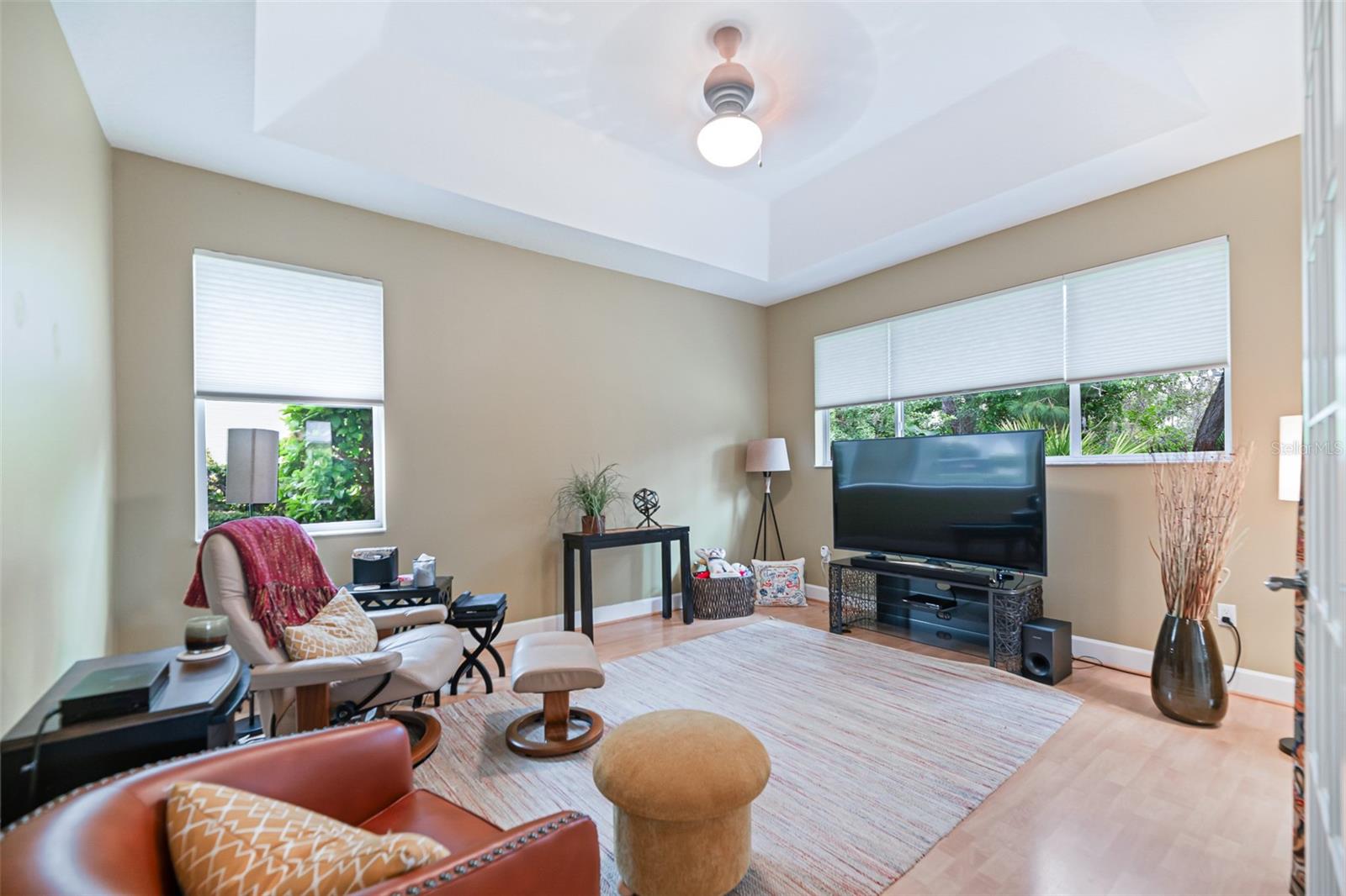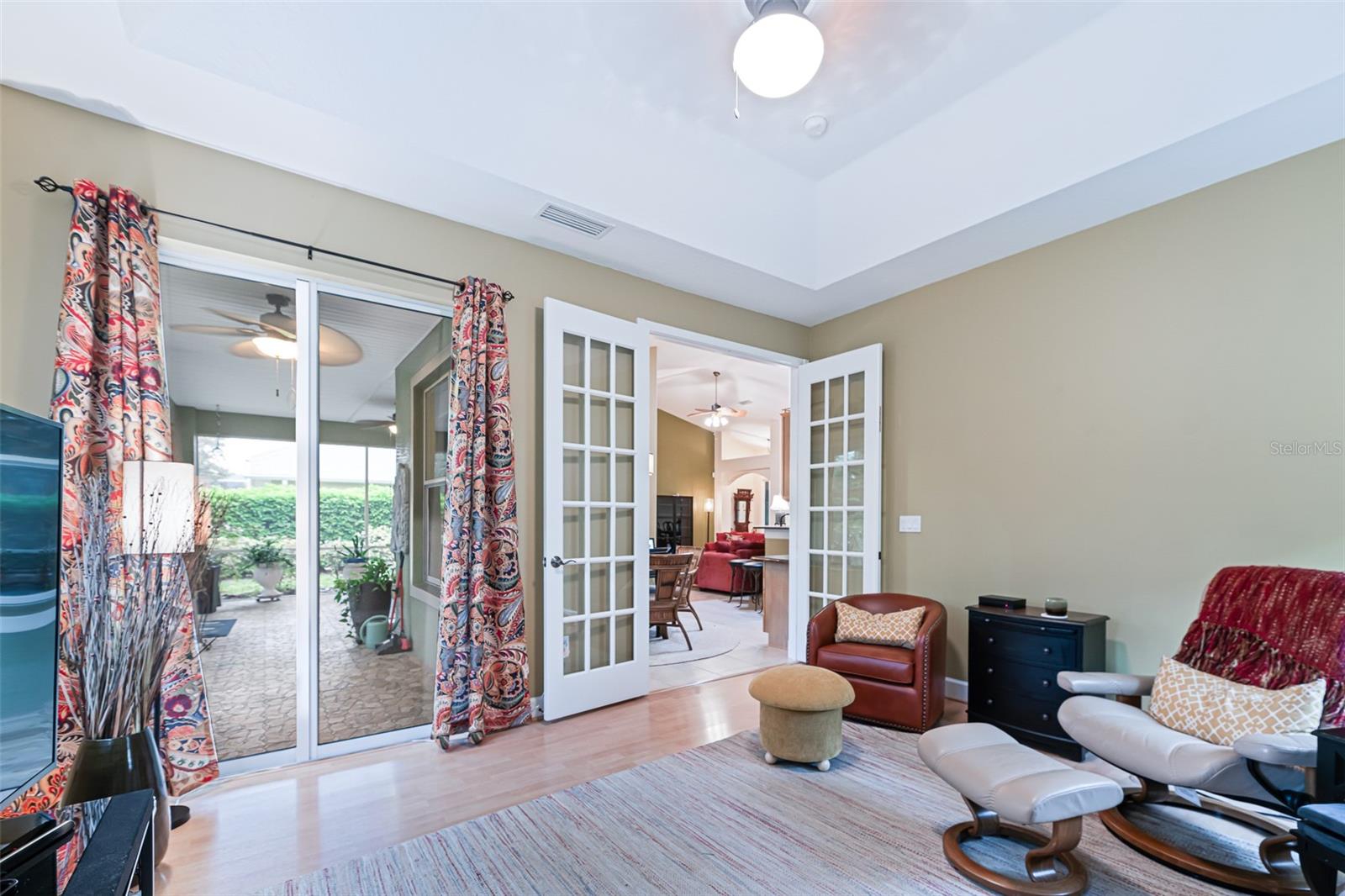 Experience the joy of living your best life in this stunning 3-bedroom, 2-bathroom home nestled in the coveted Grand Haven community. This property embodies a harmonious blend of luxury and convenience, enveloped in a serene atmosphere that offers both privacy and tranquility. As you step inside, you are welcomed by the breathtaking cathedral ceiling in the great room, creating an airy and spacious ambiance that invites you to relax and entertain. The kitchen is a chef's dream, featuring an abundance of counter space surrounded by modern cabinetry, perfect for culinary creations and family gatherings. Adjacent to the kitchen, the charming den with elegant French doors serves as an inviting indoor sanctuary. Whether you're curling up with a good book, enjoying your favorite television show, or setting up a productive home office, this cozy retreat offers versatility and comfort. It can even serve as a convenient guest room when needed. Each beautifully designed bedroom is a private haven, complete with ample closet storage and thoughtfully planned layouts that ensure restful nights and peaceful mornings. The expansive screened lanai invites you to unwind and immerse yourself in the beauty of the surrounding gardens and lush foliage. Enjoy the delightful company of nature, with only the occasional visit from deer and birds to share your backyard paradise. This meticulously maintained home features upgraded baseboards and moldings, paired with tasteful lighting decor that adds an elegant touch to every room. Beyond your front door, the Grand Haven community boasts a wealth of amenities, including a sparkling community pool, a stylish clubhouse, a dining restaurant, a picturesque golf course (membership required), and scenic sidewalks for leisurely strolls. Seize this opportunity to own your own slice of paradise and experience the lifestyle you’ve always dreamed of!
