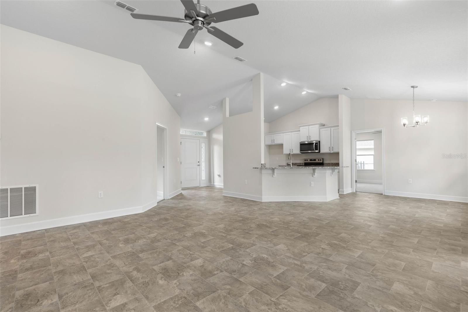 Under Construction. Up to $10,000 flex cash available. ONLY $1,000 Deposit required. Pictures are not of actual home. Pricing INCLUDES lot! This is a beautiful open floor plan with large, vaulted ceilings and open kitchen. The Kitchen includes, Whirlpool range, dishwasher and microwave. It opens up to the Great Room with a large breakfast bar perfect for eating, cooking, and entertaining. Master bath is a 5' easy step in shower with clear glass door. Windows are double-paned, tilt ins for easy cleaning while providing you money savings on your electric bill and a quieter home. 10x14 Rear patio perfect for your Bbq's and sitting enjoyment. Located in the heart of Palm Coast, near shopping, restaurants, and schools, minutes to the beach.