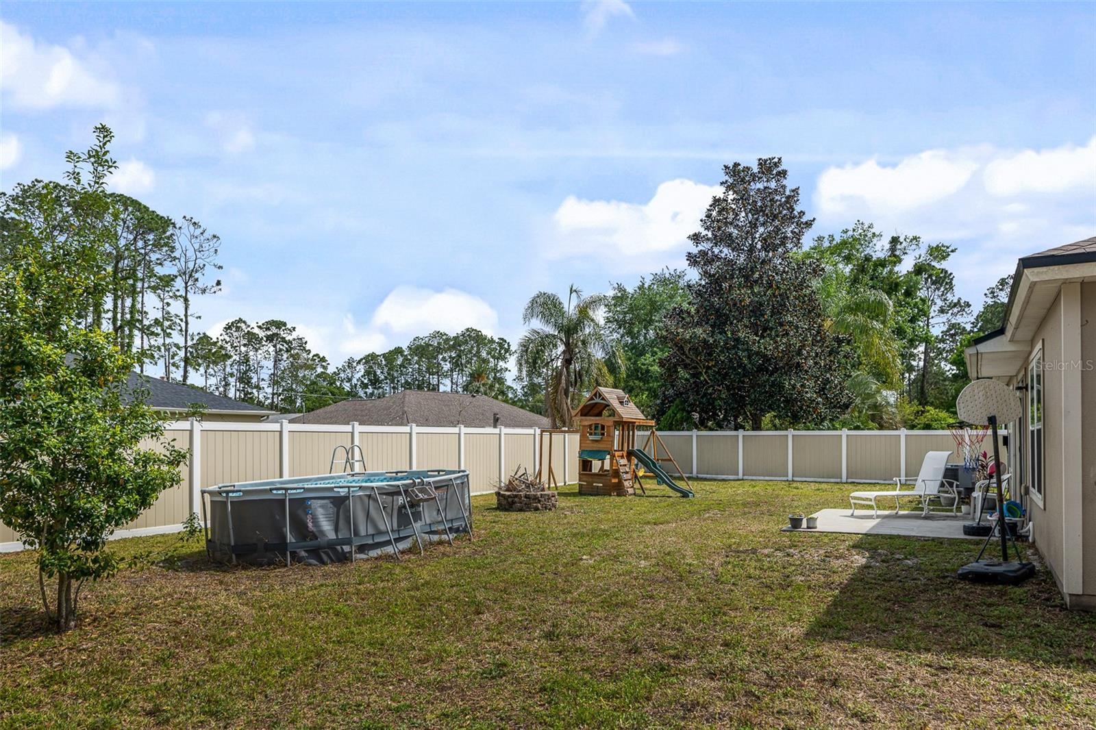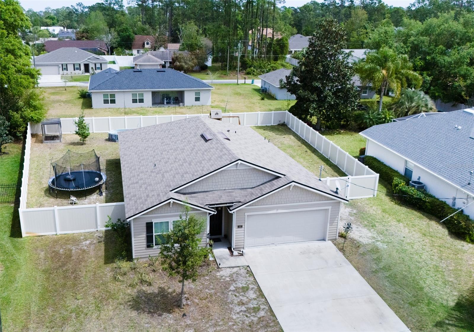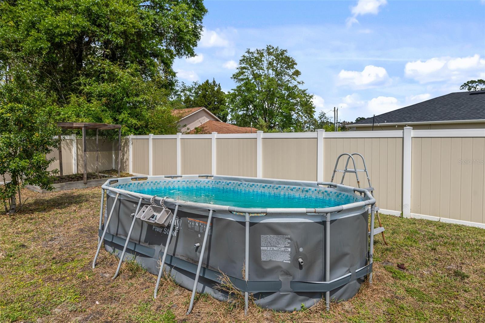 Modern 4-Bedroom Smart Home with Spacious Living & Backyard Oasis Step into this beautifully designed 4-bedroom, 2-bath smart home, built in 2021, offering a perfect blend of comfort, functionality, and modern convenience. The heart of the home is the inviting great room and kitchen combo, ideal for family gatherings and entertaining. The stunning kitchen features a center island with extra seating, ample counter space, and a large pantry for all your storage needs. The flexible 4th bedroom can serve as a home office or cozy den. The spacious master suite boasts a walk-in closet and an en-suite bath with dual sinks and a walk-in shower. All bedrooms are carpeted for comfort, while the kitchen and bathrooms feature stylish vinyl plank flooring. Additional upgrades include upper plugs for wall-mounted TVs, LED lighting throughout, and a full irrigation system with sprinklers for effortless lawn care. Step outside to enjoy the open rear patio and expansive, fully fenced backyard—complete with an above-ground swimming pool for endless summer fun (optional to stay). This move-in-ready home is packed with modern touches and ready for its next chapter—could it be yours?