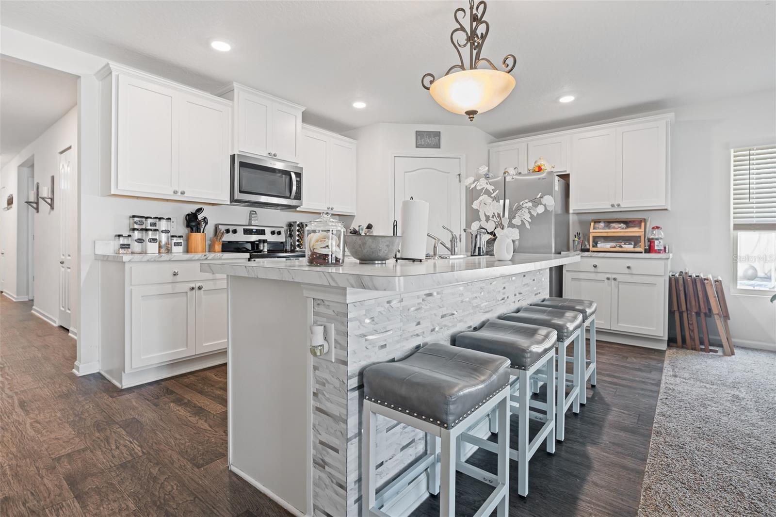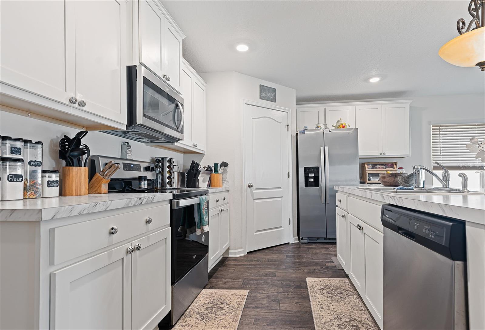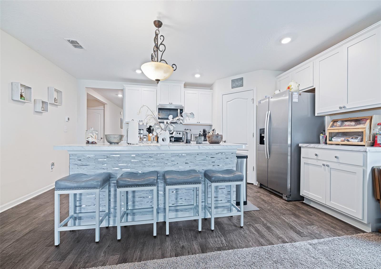 Modern 4-Bedroom Smart Home with Spacious Living & Backyard Oasis Step into this beautifully designed 4-bedroom, 2-bath smart home, built in 2021, offering a perfect blend of comfort, functionality, and modern convenience. The heart of the home is the inviting great room and kitchen combo, ideal for family gatherings and entertaining. The stunning kitchen features a center island with extra seating, ample counter space, and a large pantry for all your storage needs. The flexible 4th bedroom can serve as a home office or cozy den. The spacious master suite boasts a walk-in closet and an en-suite bath with dual sinks and a walk-in shower. All bedrooms are carpeted for comfort, while the kitchen and bathrooms feature stylish vinyl plank flooring. Additional upgrades include upper plugs for wall-mounted TVs, LED lighting throughout, and a full irrigation system with sprinklers for effortless lawn care. Step outside to enjoy the open rear patio and expansive, fully fenced backyard—complete with an above-ground swimming pool for endless summer fun (optional to stay). This move-in-ready home is packed with modern touches and ready for its next chapter—could it be yours?