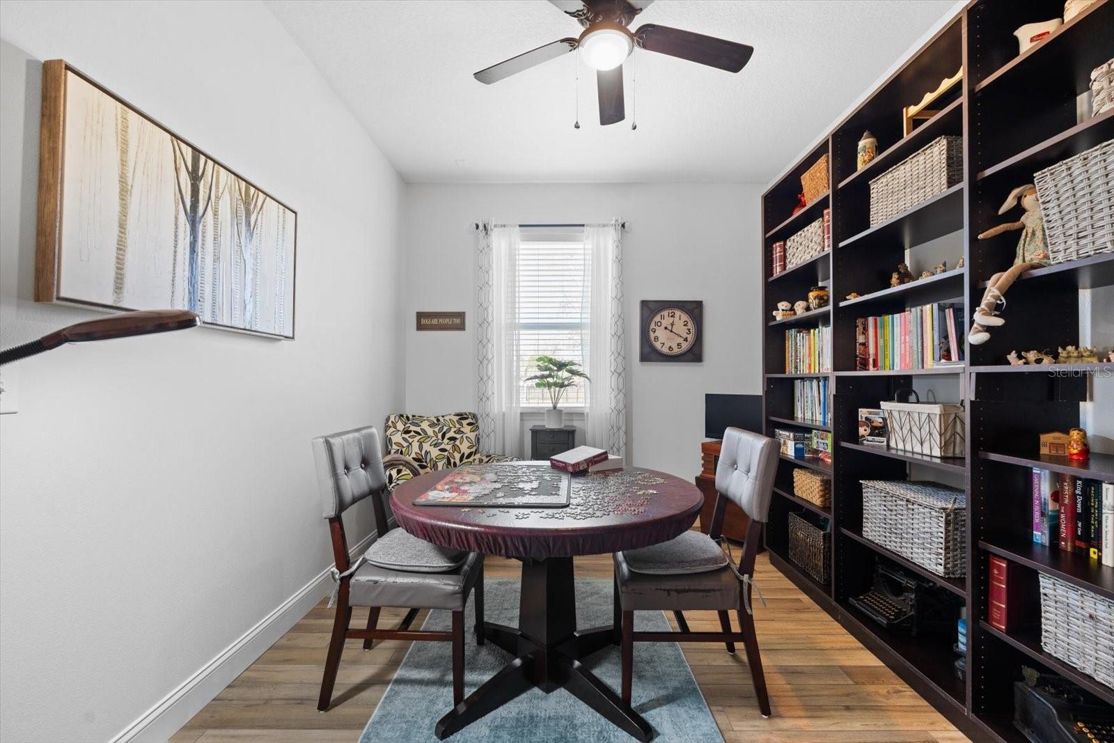 One of the largest lots in Grand Landings—over half an acre—with stunning lakefront views and a backyard made for relaxing and entertaining. Located inside the beautiful Grand Landing's community (low HOA, no CDD, and tons of amenities included gated access, pool, clubhouse + more), this beautifully maintained 3-bedroom, 2-bath home offers high end updates and a spacious layout with a formal dining room, living room with beautiful gas fireplace, family room, and a dedicated office with custom built-ins. The kitchen features new stainless high end steel appliances- Bosch Induction Stove, new Bosch dishwasher, a new double oven, and upgraded microwave. The kitchen also features a granite countertops and a large custom island. The oversized primary suite includes a luxurious bathroom (large separate soaking tub + walk in shower) and a custom walk-in closet system. Step outside to your private oasis with a large screened-in lanai, extended paver patio, and a lakeside fire pit, all within a fully fenced backyard. Additional highlights include fresh exterior paint (2022), an wifi irrigation system, hurricane shutters, generator hookup, concrete landscape curbing with stone borders, and an oversized 3-car garage with attic storage. This home truly combines comfort, function, and incredible outdoor living in an amazing HOA community!