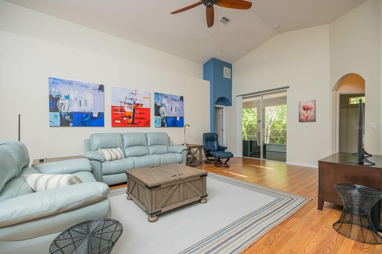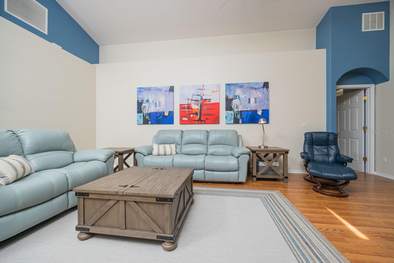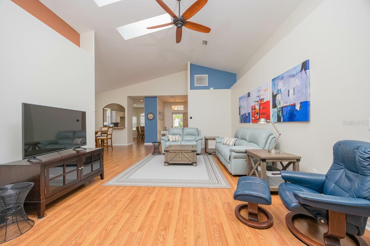 Enjoy the ultimate in stress-free living in this adorable home in The Crossings at Grand Haven! This exclusive neighborhood is gated, providing security and peace-of-mind, and lawn service is included. All furnishings are included, so move right in and make yourself at home! Brand NEW A/C (2025) and NEW ROOF being installed!! Step inside to find a bright, open living area with beautiful wood floors, vaulted ceilings, and skylights. An additional flex room just off the living room can be used as an office, small home gym, or a cozy den. The kitchen provides ample storage & counter space, stainless appliances, and a cozy breakfast nook. The dining area and breakfast bar overlook the kitchen. Unwind in the spacious primary suite with an en-suite bathroom and generous closet space. The split floor plan offers privacy and comfort for guests or family, with the second bedroom and full bath on the opposite side of the home. You'll love the bonus screened-in porch, offering a year-round outdoor living space to relax or entertain guests. The private community pool is a short stroll away, and many more amenities are available in Grand Haven, including multiple pools, fitness centers, a restaurant, pickleball and tennis courts, and more! Golf memberships are also available for the Jack Nicklaus designed 18-hole golf course. Just minutes to the beach & shopping, and easy access to the interstate.