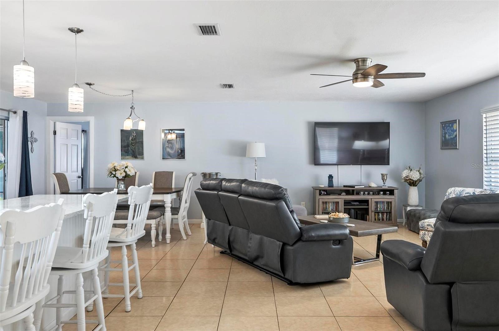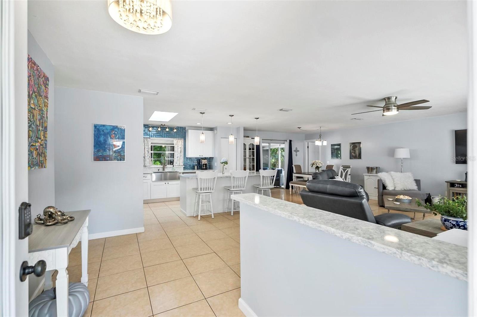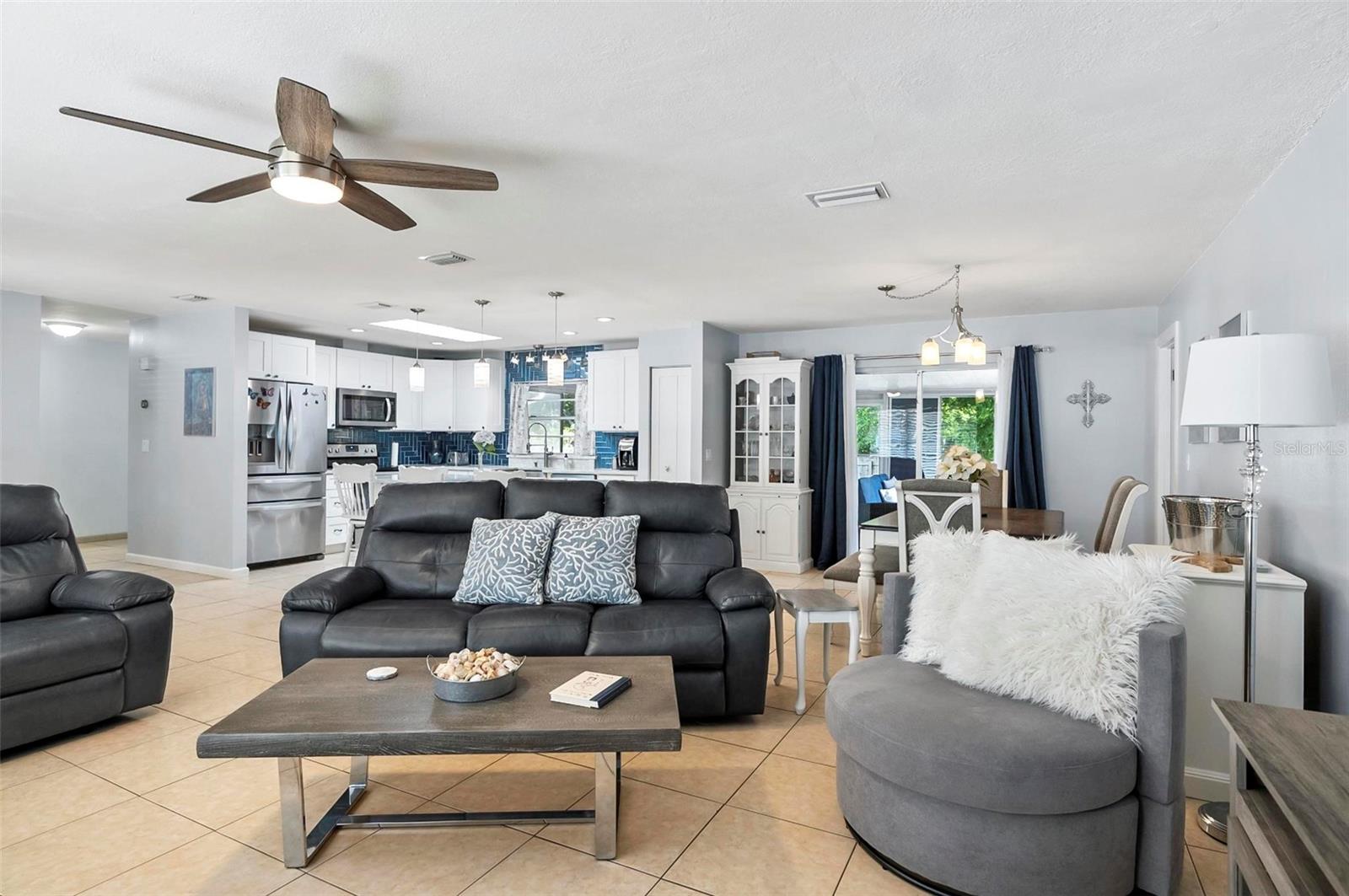 Located in the quiet, desirable subdivision of Palm Coast, this beautifully updated home offers modern comfort surrounded by nature. Just steps from scenic walking trails and peaceful preserves, this gem truly has it all! The open-concept layout centers around a stunning updated kitchen featuring custom wood cabinets, quartz countertops, a large center island, farmhouse sink, tiled backsplash, and new stainless steel appliances. The inviting family room flows seamlessly into the formal dining area, perfect for everyday living and entertaining. A smart split floor plan ensures privacy, while smart-home features let you control lights, HVAC, garage, and security from your mobile device. The spacious primary suite includes a walk-in closet and a beautifully updated shower. One guest bedroom and sliding doors that lead to a private deck—ideal as a home office or guest retreat. The garage boasts an epoxy floor and overhead storage racks. New HVAC and water heater installed in 2017 offer peace of mind. Outside, relax year-round in the large covered lanai or enjoy the fenced backyard—truly a gardener’s paradise with mature landscaping and fruit trees. Meticulously maintained and move-in ready, this home is a must-see. Don’t miss your chance—schedule your private tour today!