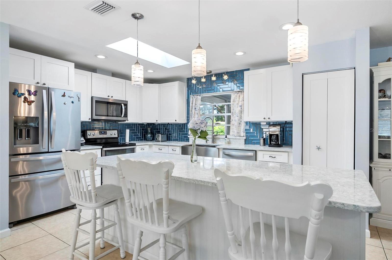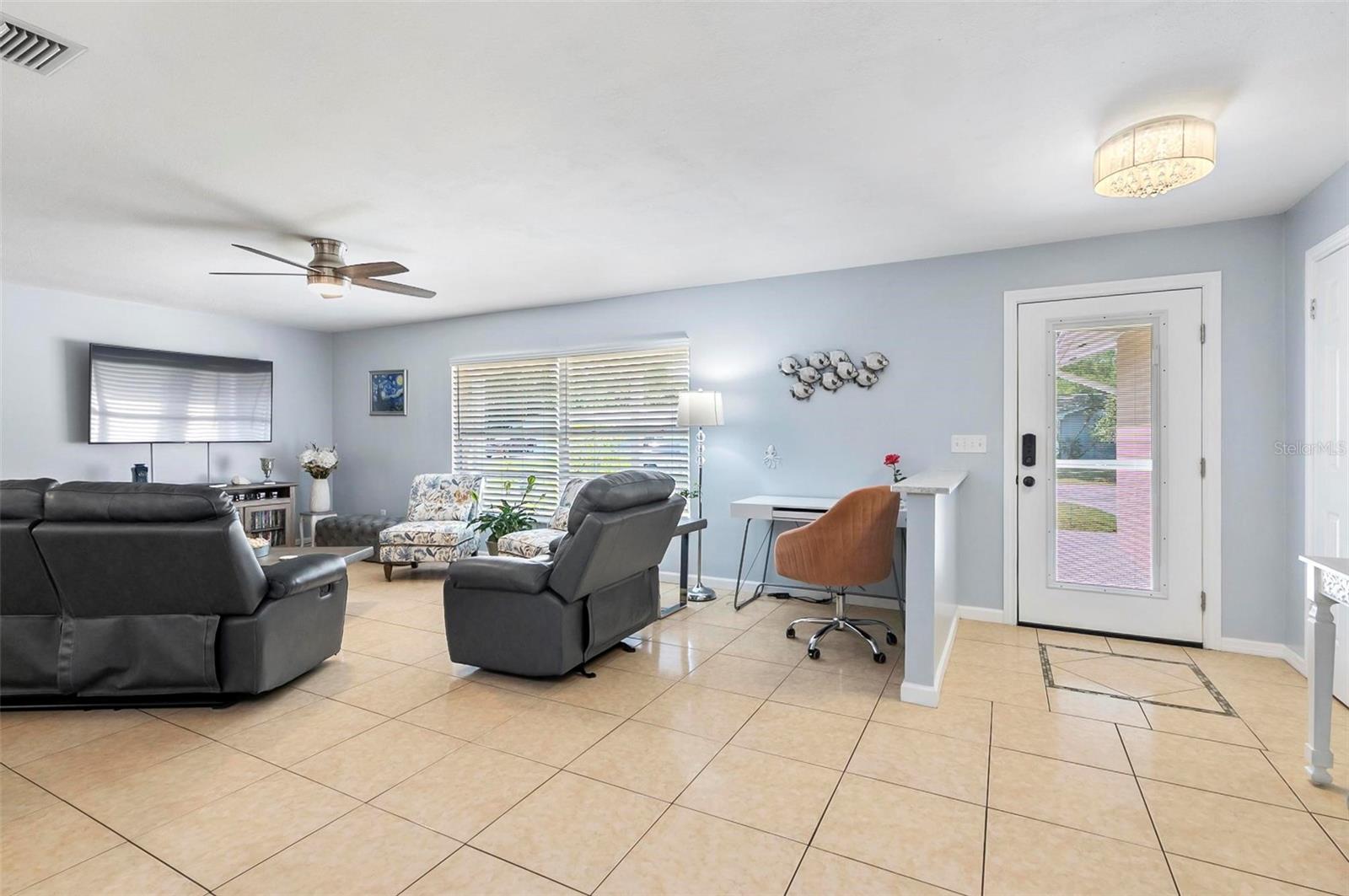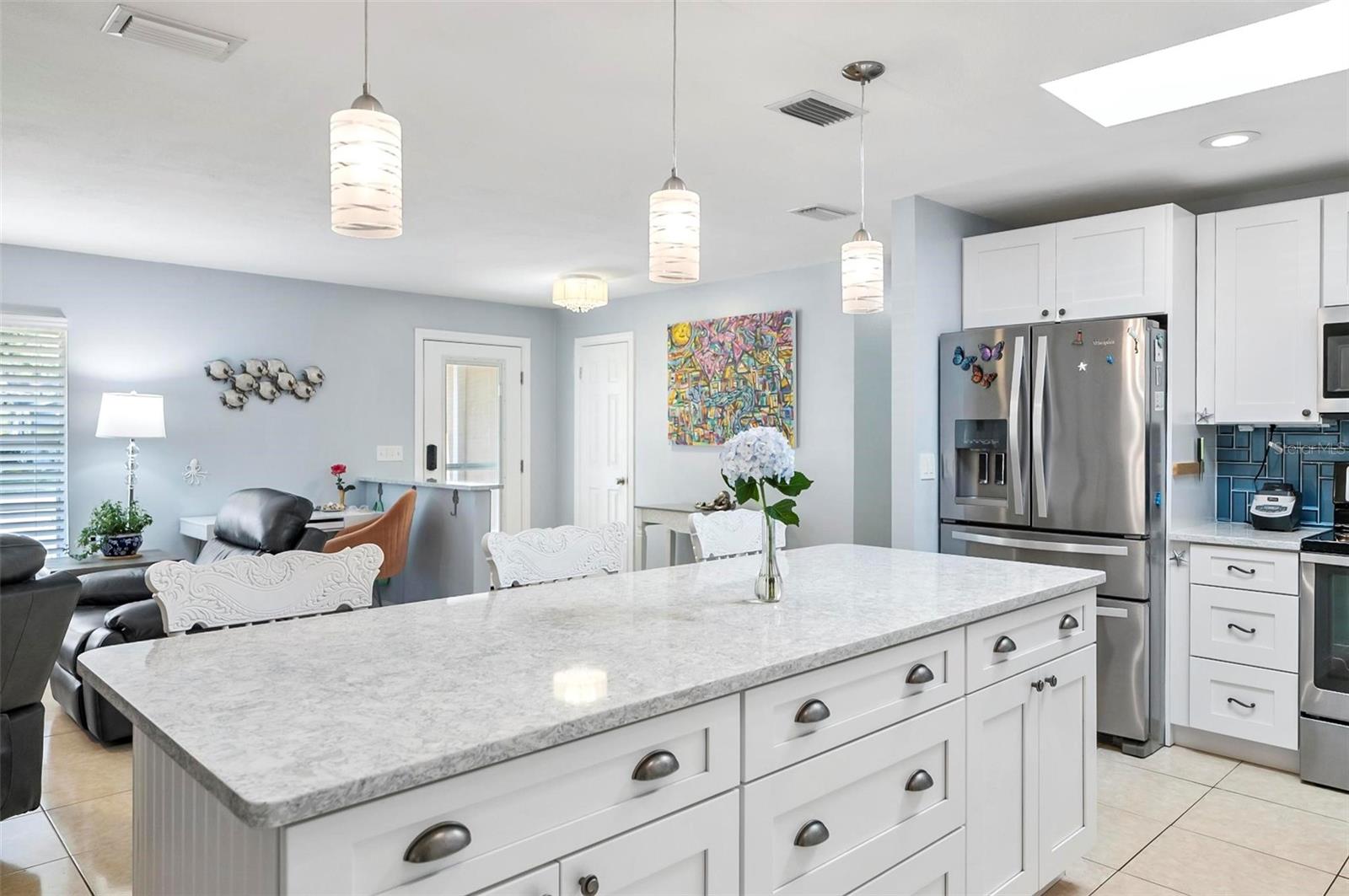 Located in the quiet, desirable subdivision of Palm Coast, this beautifully updated home offers modern comfort surrounded by nature. Just steps from scenic walking trails and peaceful preserves, this gem truly has it all! The open-concept layout centers around a stunning updated kitchen featuring custom wood cabinets, quartz countertops, a large center island, farmhouse sink, tiled backsplash, and new stainless steel appliances. The inviting family room flows seamlessly into the formal dining area, perfect for everyday living and entertaining. A smart split floor plan ensures privacy, while smart-home features let you control lights, HVAC, garage, and security from your mobile device. The spacious primary suite includes a walk-in closet and a beautifully updated shower. One guest bedroom and sliding doors that lead to a private deck—ideal as a home office or guest retreat. The garage boasts an epoxy floor and overhead storage racks. New HVAC and water heater installed in 2017 offer peace of mind. Outside, relax year-round in the large covered lanai or enjoy the fenced backyard—truly a gardener’s paradise with mature landscaping and fruit trees. Meticulously maintained and move-in ready, this home is a must-see. Don’t miss your chance—schedule your private tour today!