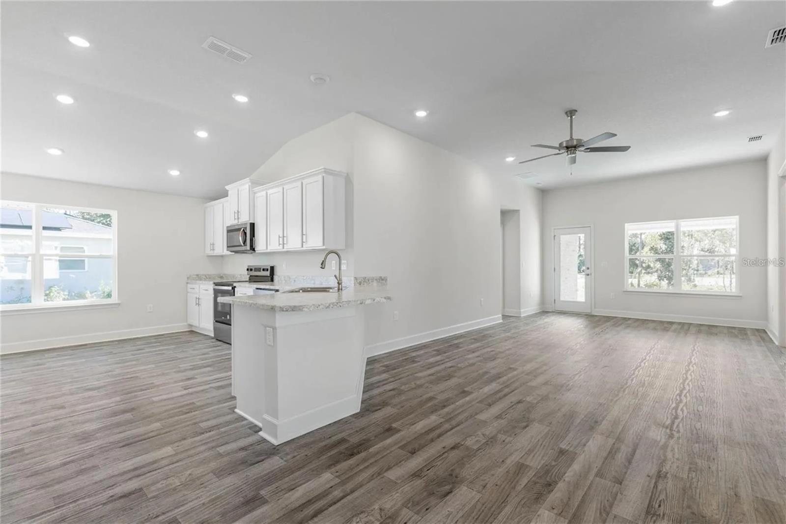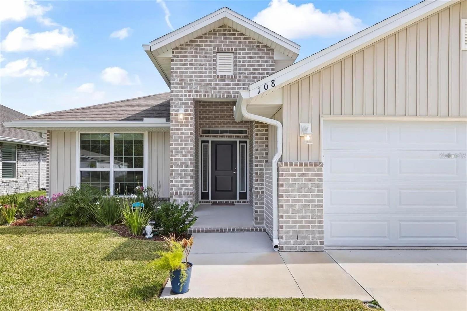 Under Construction. This ALL BRICK 4bedroom 2 bath home located in Seminole Woods Palm Coast is minutes from the beach, shopping, schools, and restaurants. Enjoy your covered rear patio with North eastern exposure. The spacious owner's suite includes a large walk-in closet, ceiling fan, and double sinks in the bath. This home has high ceilings throughout and is loaded with formal dining and living combination. Stainless steel Whirlpool appliances, tall 5.25" baseboards & modern door casings, sleek nickel finish lighting plus fans in family room and owner's bedroom. Bathrooms include upgraded MOEN nickel finish faucets, beautiful cabinetry that feature crown molding and modern rectangle porcelain sinks. Our double pane windows are extremely energy efficient and allow for abundant natural light. Fold in design makes windows a snap to clean and enhance the energy efficiency of our quality-built brick homes. Never paint again! Save thousands of dollars in homeowner maintenance! Builder offers a 1-year builder warranty, 2 year mechanical warranty (plumbing, electric, HVAC), and a 10-year structural warranty. Photos are for illustration only. Up to 10k flex cash with preferred lender only. Only 1,000 dollar deposit required. Schedule your appointment today! Current incentive up to 10K flex cash available . Cash Discount offered