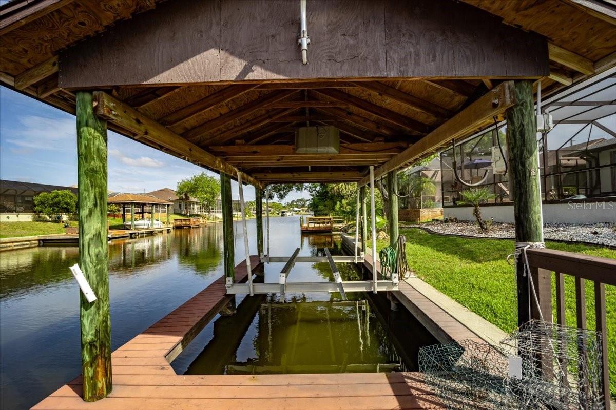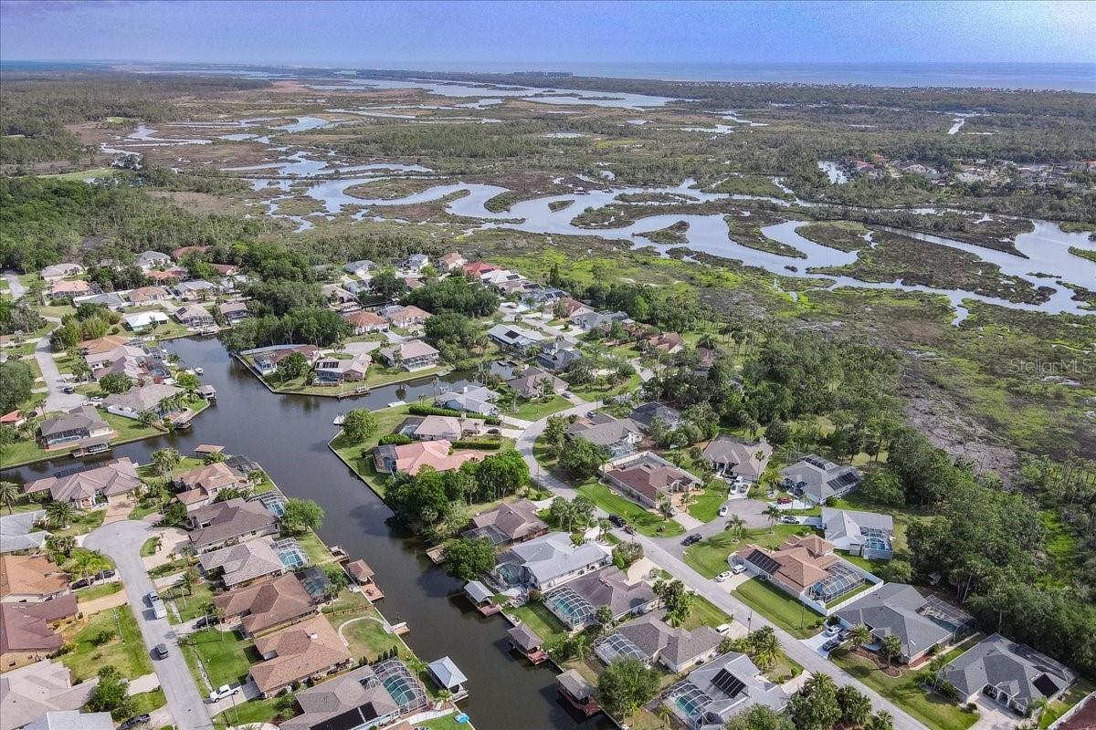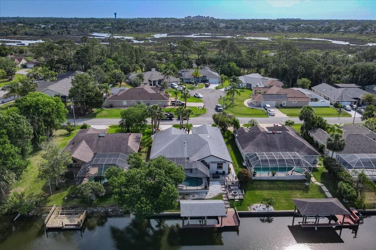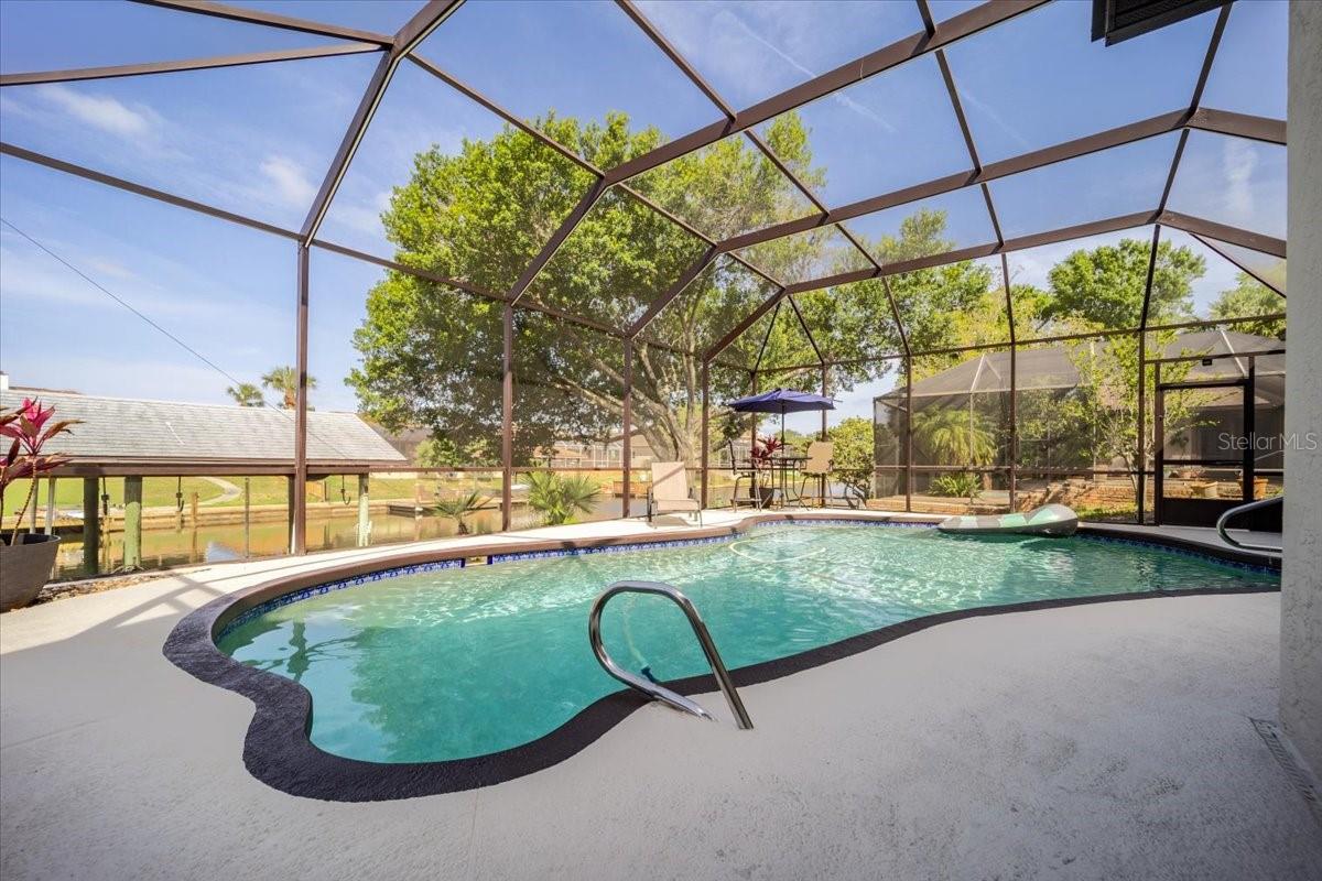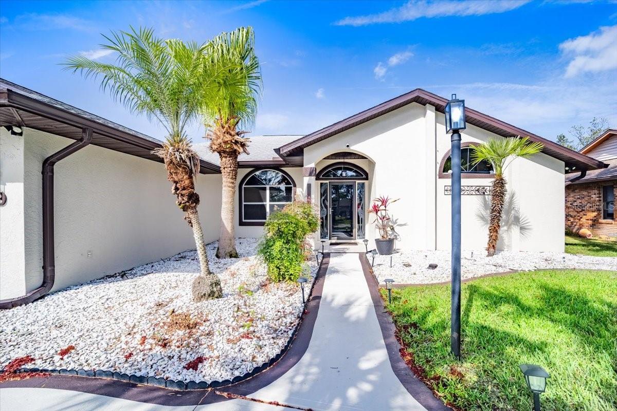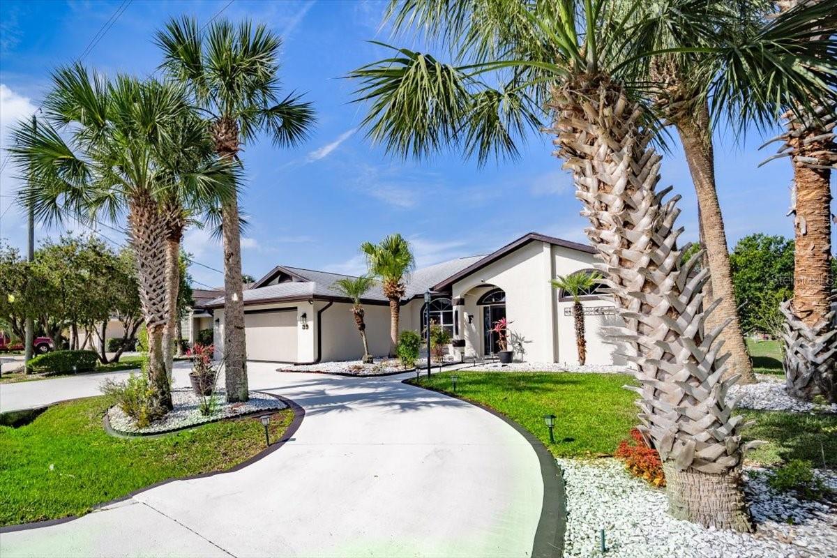 Live the Waterfront Lifestyle You've Been Dreaming Of! Welcome to your own slice of paradise on the saltwater canal—where boating, beach days, and backyard entertaining come together in one spectacular move-in ready home. Just a short ride to the Intracoastal Waterway and only ten minutes from the beach, this stunning 3-bedroom, 2.5-bath concrete block home offers over 2,000 square feet of upgraded coastal luxury in a no HOA, no CDD neighborhood where short-term rentals are allowed. Step outside and fall in love with the resort-style backyard, featuring a 10,000-pound boat lift with Trex decking, a sparkling saltwater pool heated with gas, and a gorgeous paver patio with a fire pit that’s perfect for evening gatherings. The fully equipped granite summer kitchen—complete with a dedicated pool bath—makes entertaining effortless, while the electric awning and custom exterior lighting create the perfect setting for day or night relaxation. Inside, you'll find an open, airy layout with tray ceilings, luxury vinyl plank flooring, and a designer kitchen that boasts quartz countertops, stainless steel appliances, and a double oven. The owner's suite is a true retreat, offering a jetted tub, a walk-in shower, and dual sinks for comfort and convenience. An additional en-suite bedroom provides flexibility for guests or family, and the spacious indoor laundry room with sink and storage makes everyday living easy. This home is packed with upgrades, including a whole-house generator powered by a 200-gallon gas tank, a new A/C system installed in 2020, and a roof from 2016. A massive circular driveway adds both charm and convenience, offering plenty of parking for guests or toys. Whether you're seeking a full-time residence, a vacation escape, or an investment opportunity, this home delivers luxury, location, and lifestyle . Schedule your private showing today—because waterfront living like this won’t last long! Possibly an Assumable VA Loan at 2.375%