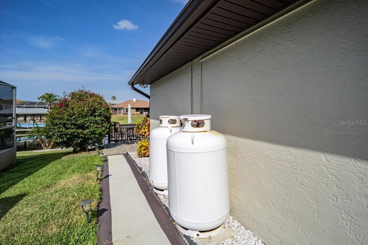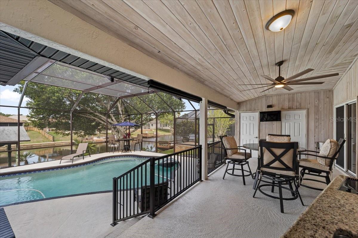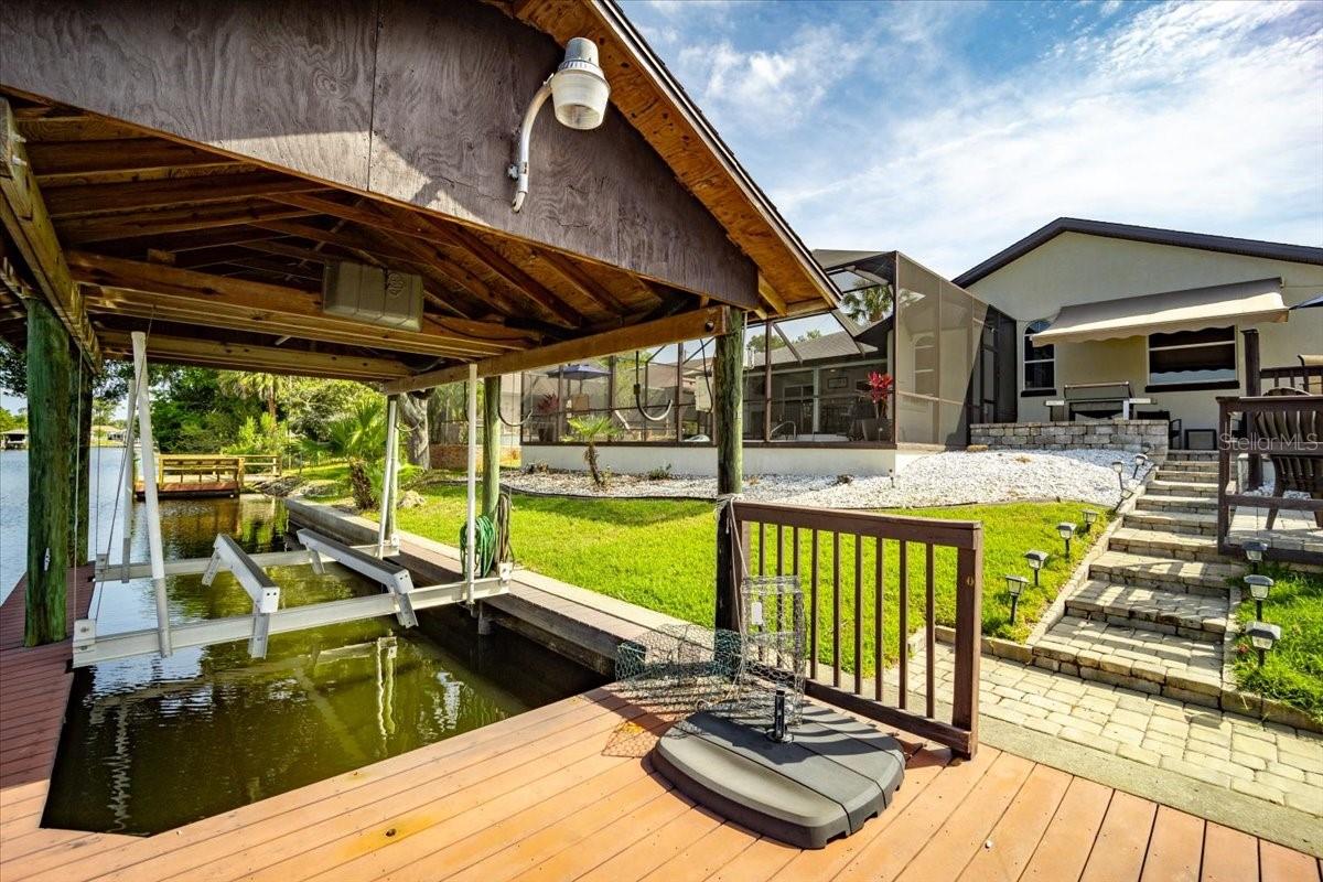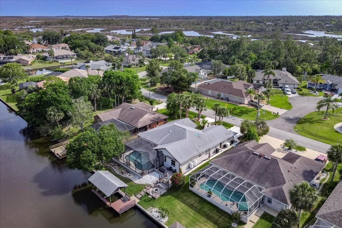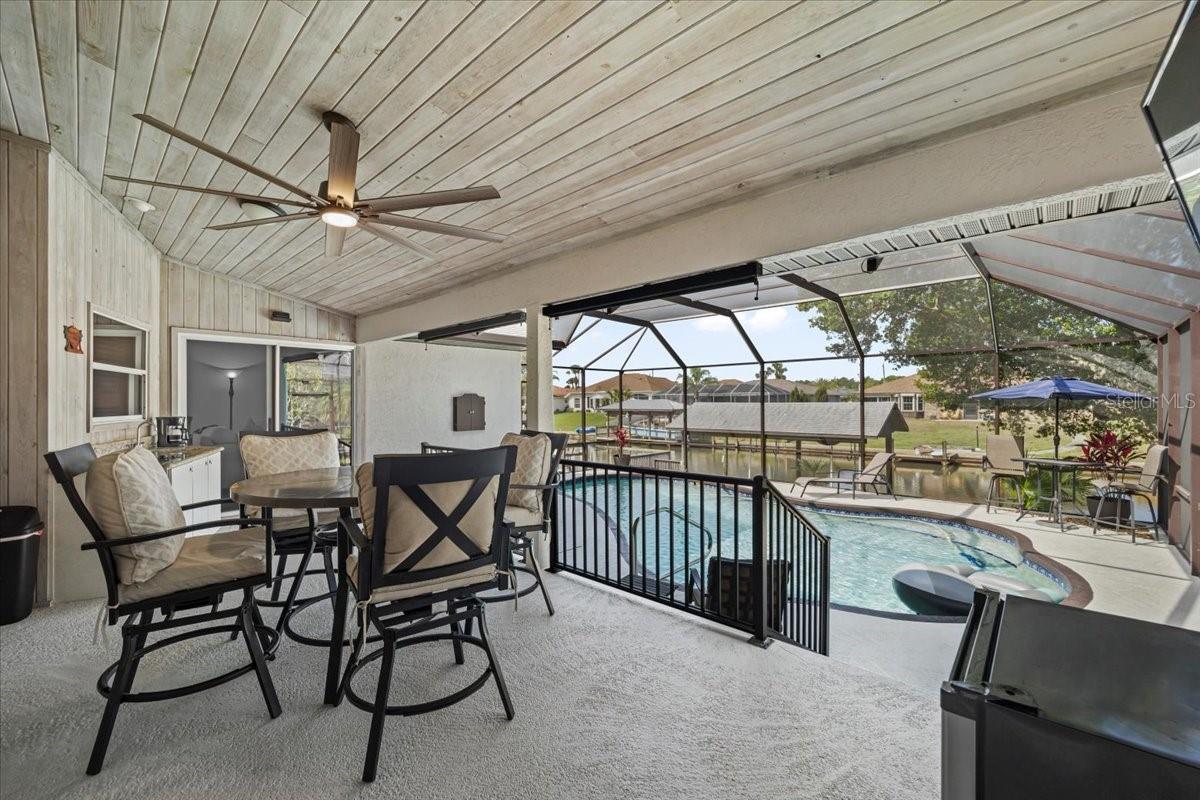 Live the Waterfront Lifestyle You've Been Dreaming Of! Welcome to your own slice of paradise on the saltwater canal—where boating, beach days, and backyard entertaining come together in one spectacular move-in ready home. Just a short ride to the Intracoastal Waterway and only ten minutes from the beach, this stunning 3-bedroom, 2.5-bath concrete block home offers over 2,000 square feet of upgraded coastal luxury in a no HOA, no CDD neighborhood where short-term rentals are allowed. Step outside and fall in love with the resort-style backyard, featuring a 10,000-pound boat lift with Trex decking, a sparkling saltwater pool heated with gas, and a gorgeous paver patio with a fire pit that’s perfect for evening gatherings. The fully equipped granite summer kitchen—complete with a dedicated pool bath—makes entertaining effortless, while the electric awning and custom exterior lighting create the perfect setting for day or night relaxation. Inside, you'll find an open, airy layout with tray ceilings, luxury vinyl plank flooring, and a designer kitchen that boasts quartz countertops, stainless steel appliances, and a double oven. The owner's suite is a true retreat, offering a jetted tub, a walk-in shower, and dual sinks for comfort and convenience. An additional en-suite bedroom provides flexibility for guests or family, and the spacious indoor laundry room with sink and storage makes everyday living easy. This home is packed with upgrades, including a whole-house generator powered by a 200-gallon gas tank, a new A/C system installed in 2020, and a roof from 2016. A massive circular driveway adds both charm and convenience, offering plenty of parking for guests or toys. Whether you're seeking a full-time residence, a vacation escape, or an investment opportunity, this home delivers luxury, location, and lifestyle . Schedule your private showing today—because waterfront living like this won’t last long! Possibly an Assumable VA Loan at 2.375%