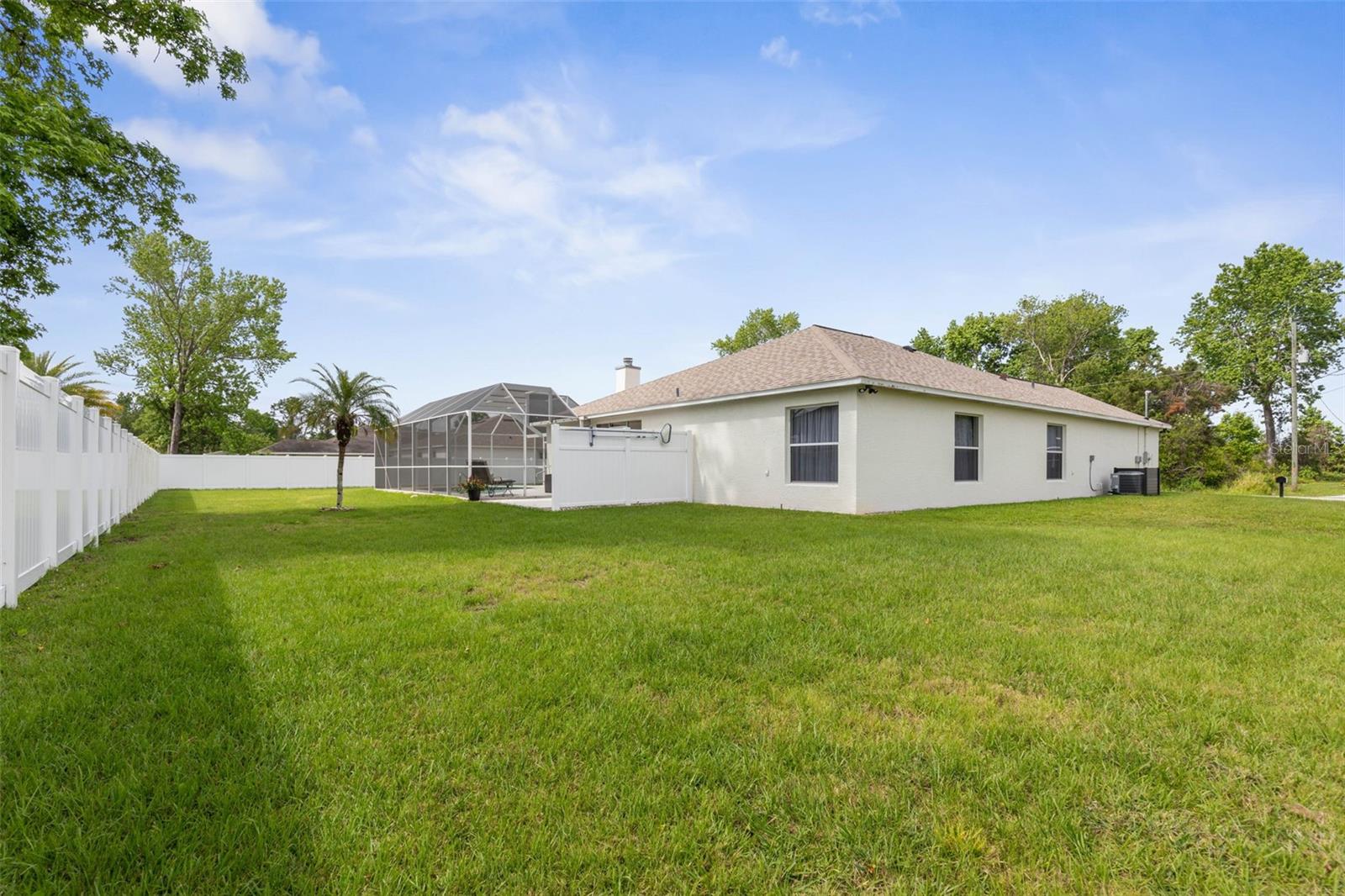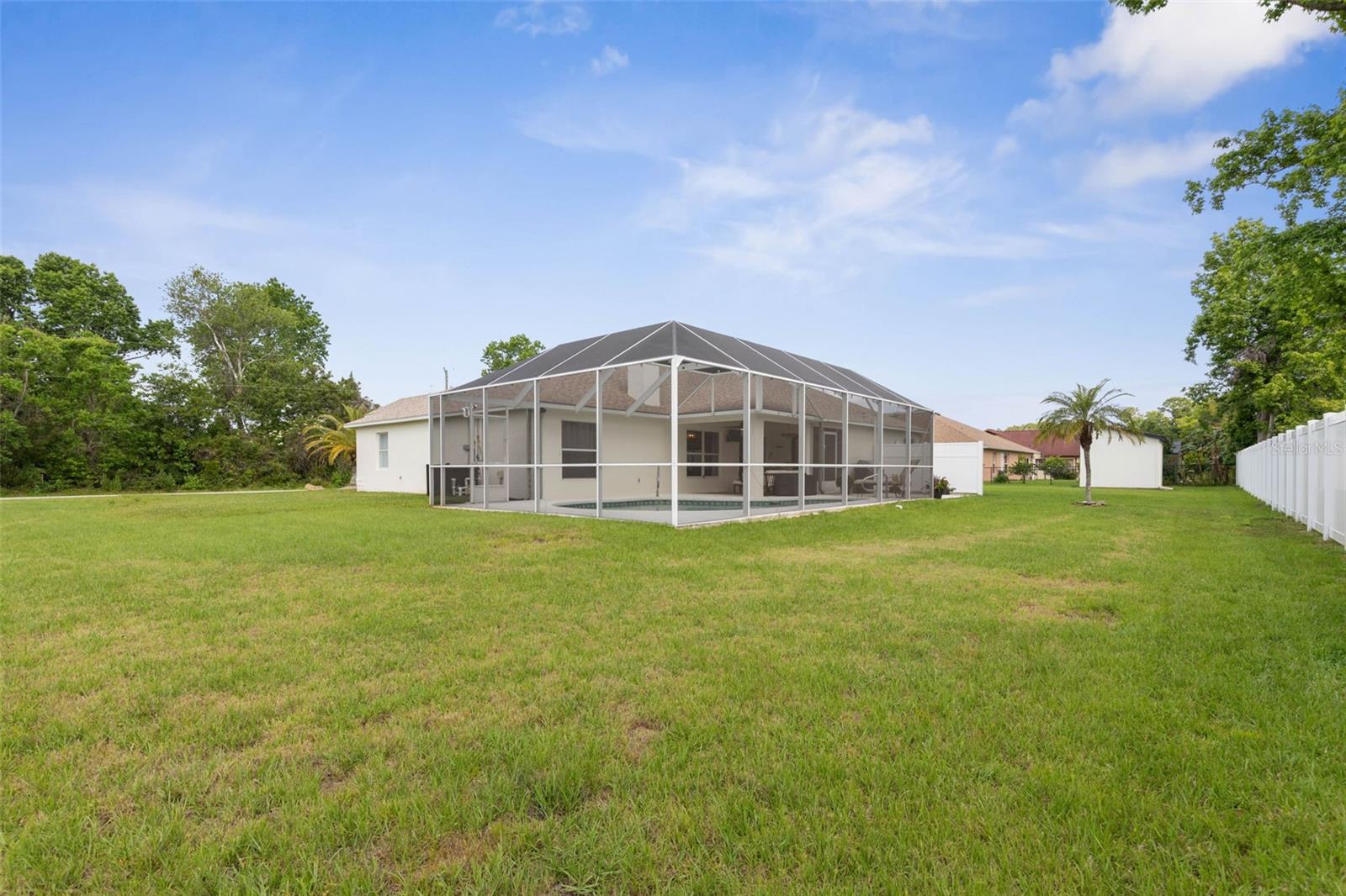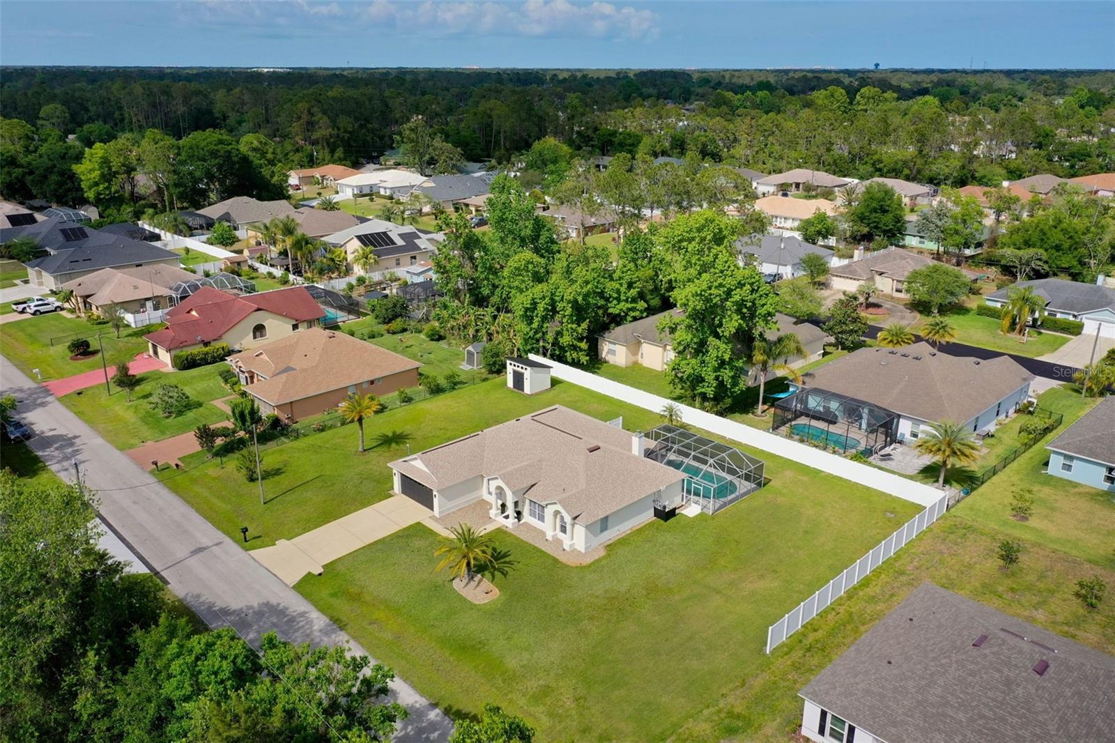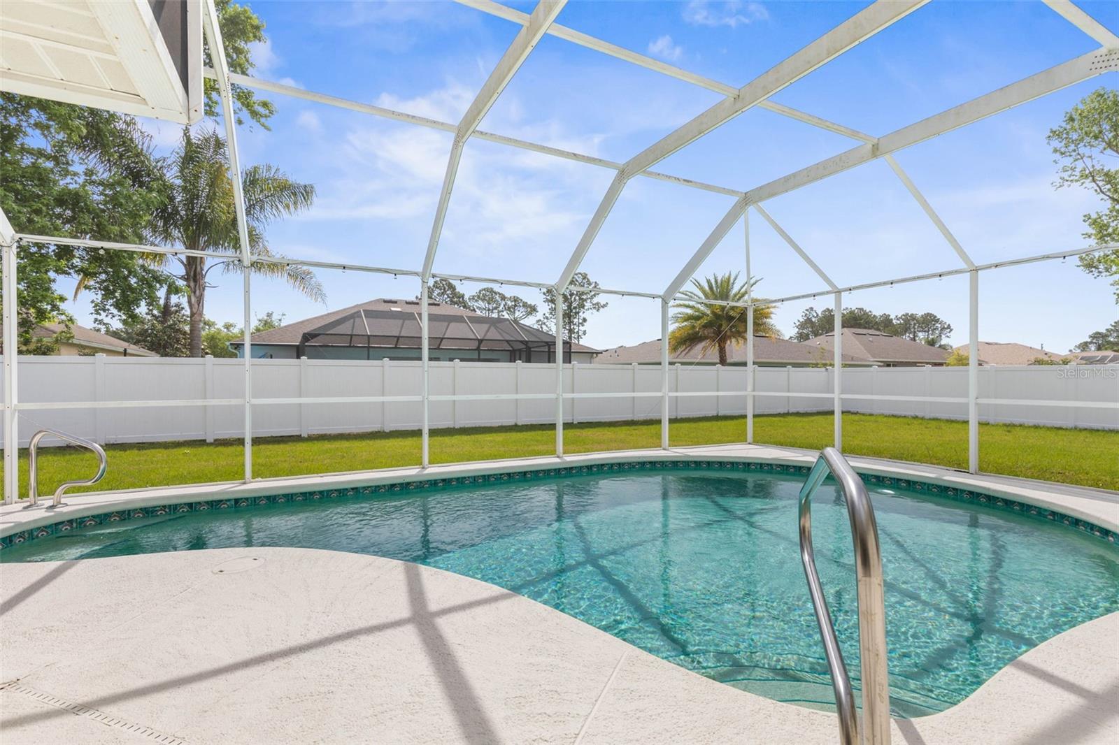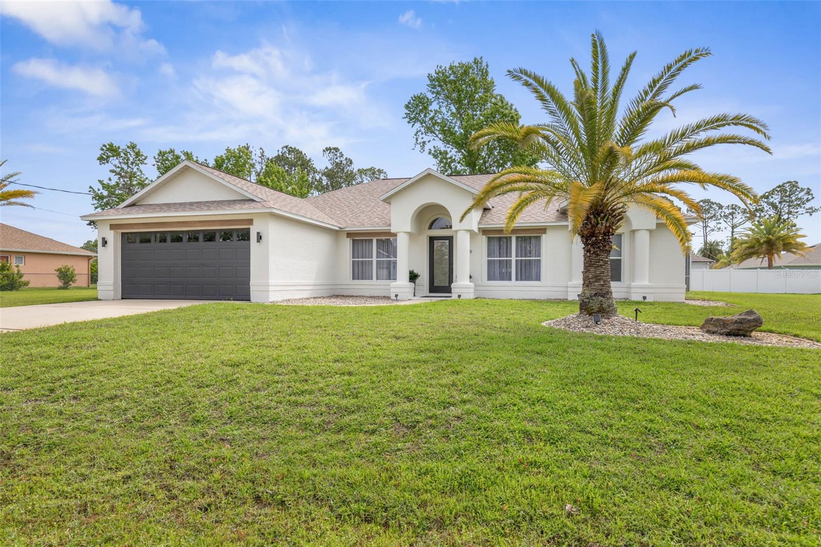 Magazine worthy- 5-Bedroom Pool Home on Expansive Double Lot – Fully furnished Step into serene sophistication with this fully renovated, move-in-ready 5-bedroom, 2.5-bath residence, perfectly positioned on a rare double lot in the Pine Lakes community of Palm Coast. Boasting 2,911 square feet under roof, this home seamlessly blends modern elegance with everyday functionality—offering the ideal setting for family living, entertaining, and relaxing in style. Meticulously updated over the past two years, the home features a new architectural shingle roof, brand-new pool lanai screening, and a regularly serviced HVAC system for worry-free living. The partially fenced yard offering privacy. The oversized lot has a storage shed, but allows for building another structure. What's your dream, a workshop, RV garage, guest cabana? This is the place dreams come true! Be sure to watch the virtual tour and read every detail on this home! Inside, discover a beautifully designed split-bedroom floor plan enhanced by new luxury vinyl plank flooring, smooth-finish walls and ceilings, and a harmonious blend of contemporary finishes throughout. The open-concept kitchen is a chef’s dream with quartz countertops, soft-close cabinetry, a built-in pantry. The spacious family room has ample natural light and a fireplace for cozy evenings. A formal dining room near the entry sets the stage for elegant dinners and memorable gatherings. The tranquil primary suite overlooks the sparkling pool and offers a true retreat with dual closets and a spa-inspired en-suite bathroom featuring double vanities, a luxurious walk-in shower, a deep soaker tub beneath a statement chandelier, and a private water closet. With four additional bedrooms—two currently serving as a home office and fitness room—this home provides space for every need. A newly added half bath enhances convenience for guests, while the laundry room and garage with built-in cabinets, sink, and fridge add to the home’s exceptional practicality. Step outside to your private oasis. The screened lanai opens to a beautifully landscaped backyard with a large pool, a detached modern storage shed, and ample space to garden, entertain, or simply unwind. Nestled in the heart of Palm Coast, Pine Lakes offers a quiet, well-established setting close to top-rated schools, shopping, dining, golf courses, and scenic walking trails. Centrally located between Daytona Beach and historic St. Augustine—with easy access to Jacksonville and Orlando—this home offers the best of Florida living. Bonus: Designer furnishings included—just bring your toothbrush.