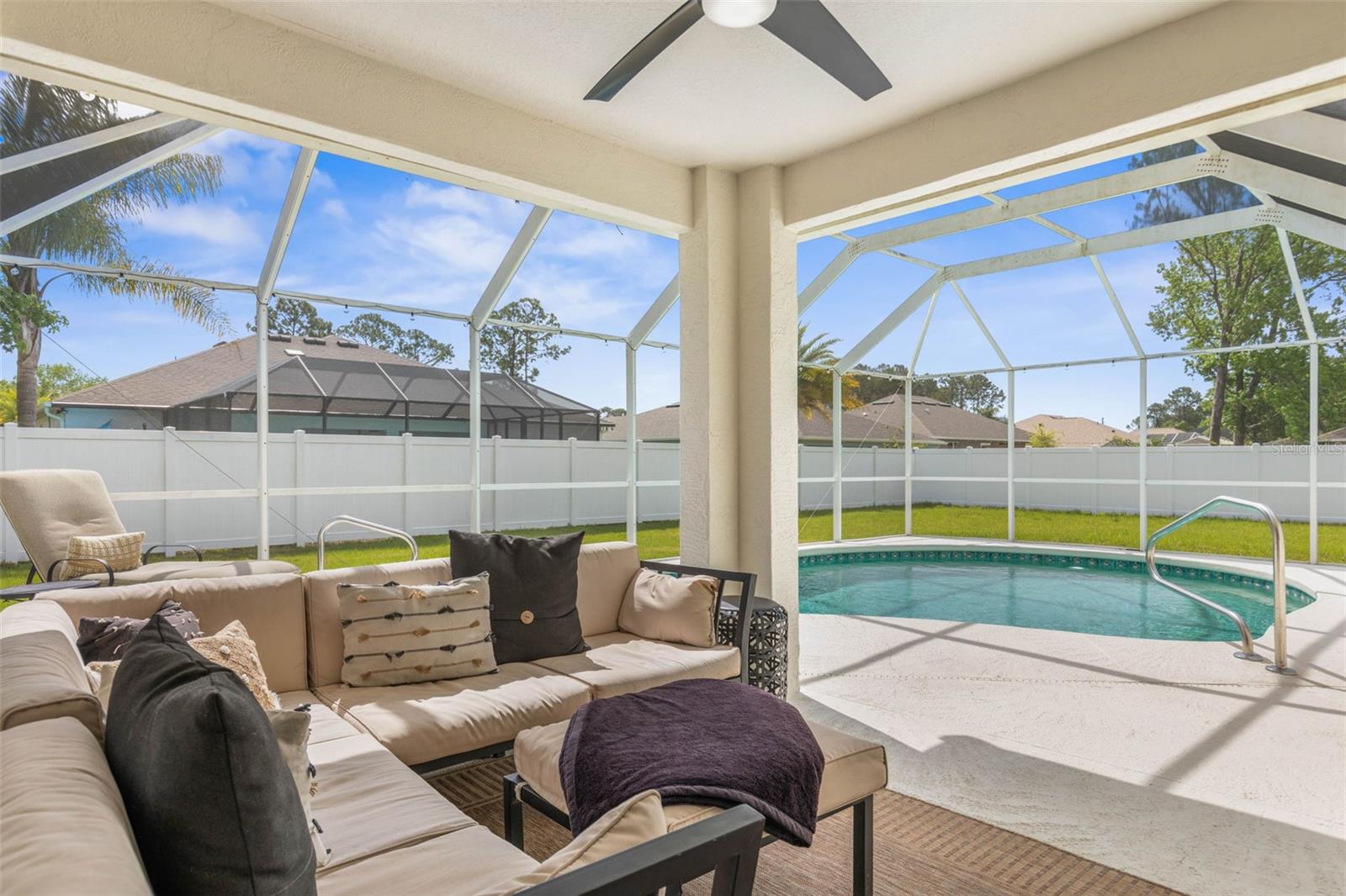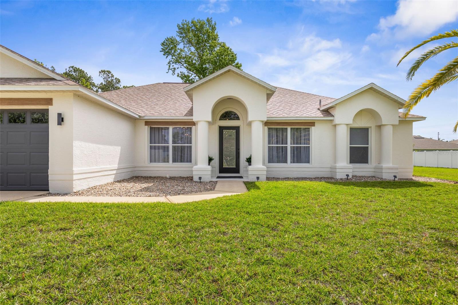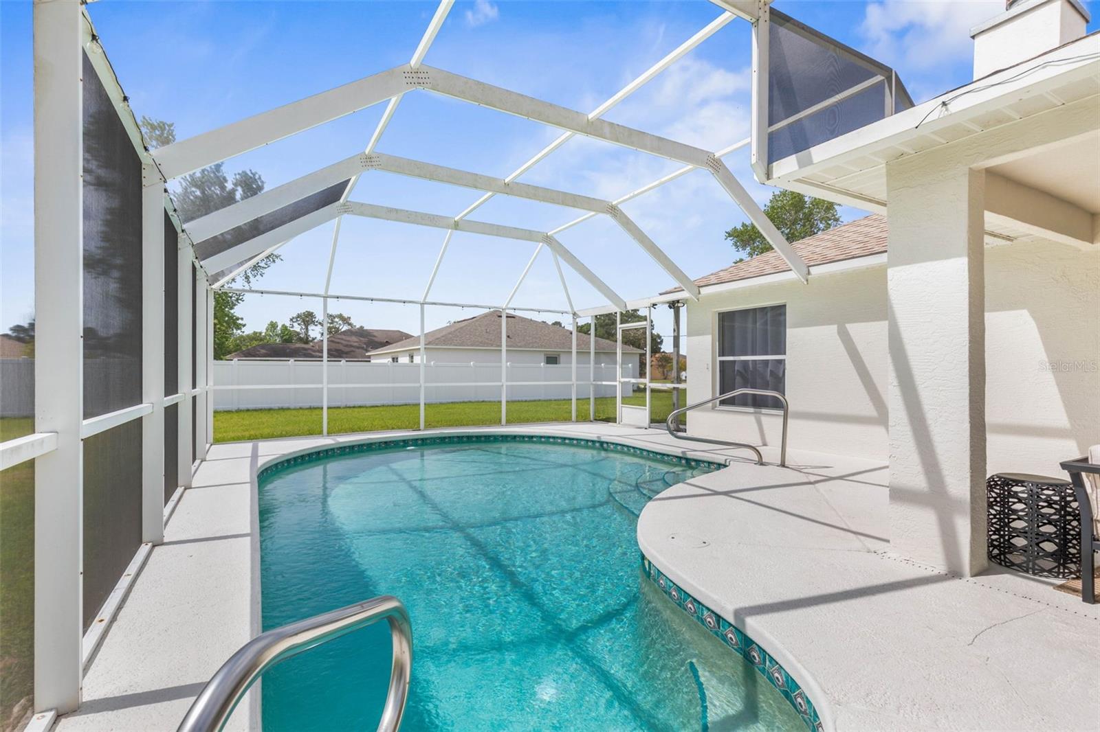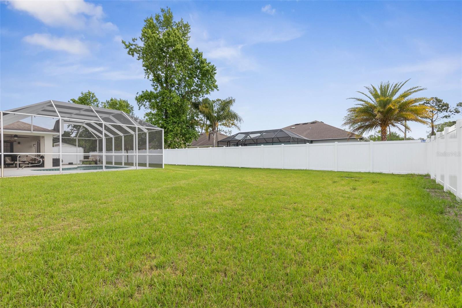Magazine worthy- 5-Bedroom Pool Home on Expansive Double Lot – Fully furnished Step into serene sophistication with this fully renovated, move-in-ready 5-bedroom, 2.5-bath residence, perfectly positioned on a rare double lot in the Pine Lakes community of Palm Coast. Boasting 2,911 square feet under roof, this home seamlessly blends modern elegance with everyday functionality—offering the ideal setting for family living, entertaining, and relaxing in style. Meticulously updated over the past two years, the home features a new architectural shingle roof, brand-new pool lanai screening, and a regularly serviced HVAC system for worry-free living. The partially fenced yard offering privacy. The oversized lot has a storage shed, but allows for building another structure. What's your dream, a workshop, RV garage, guest cabana? This is the place dreams come true! Be sure to watch the virtual tour and read every detail on this home! Inside, discover a beautifully designed split-bedroom floor plan enhanced by new luxury vinyl plank flooring, smooth-finish walls and ceilings, and a harmonious blend of contemporary finishes throughout. The open-concept kitchen is a chef’s dream with quartz countertops, soft-close cabinetry, a built-in pantry. The spacious family room has ample natural light and a fireplace for cozy evenings. A formal dining room near the entry sets the stage for elegant dinners and memorable gatherings. The tranquil primary suite overlooks the sparkling pool and offers a true retreat with dual closets and a spa-inspired en-suite bathroom featuring double vanities, a luxurious walk-in shower, a deep soaker tub beneath a statement chandelier, and a private water closet. With four additional bedrooms—two currently serving as a home office and fitness room—this home provides space for every need. A newly added half bath enhances convenience for guests, while the laundry room and garage with built-in cabinets, sink, and fridge add to the home’s exceptional practicality. Step outside to your private oasis. The screened lanai opens to a beautifully landscaped backyard with a large pool, a detached modern storage shed, and ample space to garden, entertain, or simply unwind. Nestled in the heart of Palm Coast, Pine Lakes offers a quiet, well-established setting close to top-rated schools, shopping, dining, golf courses, and scenic walking trails. Centrally located between Daytona Beach and historic St. Augustine—with easy access to Jacksonville and Orlando—this home offers the best of Florida living. Bonus: Designer furnishings included—just bring your toothbrush.