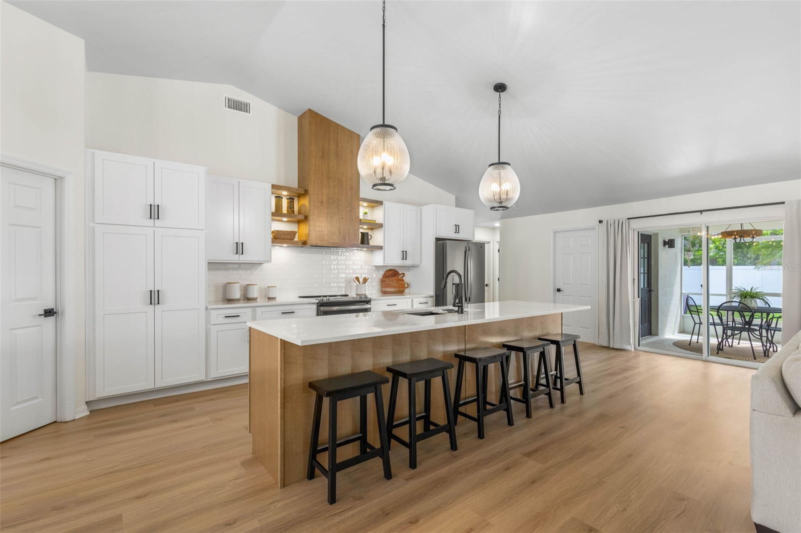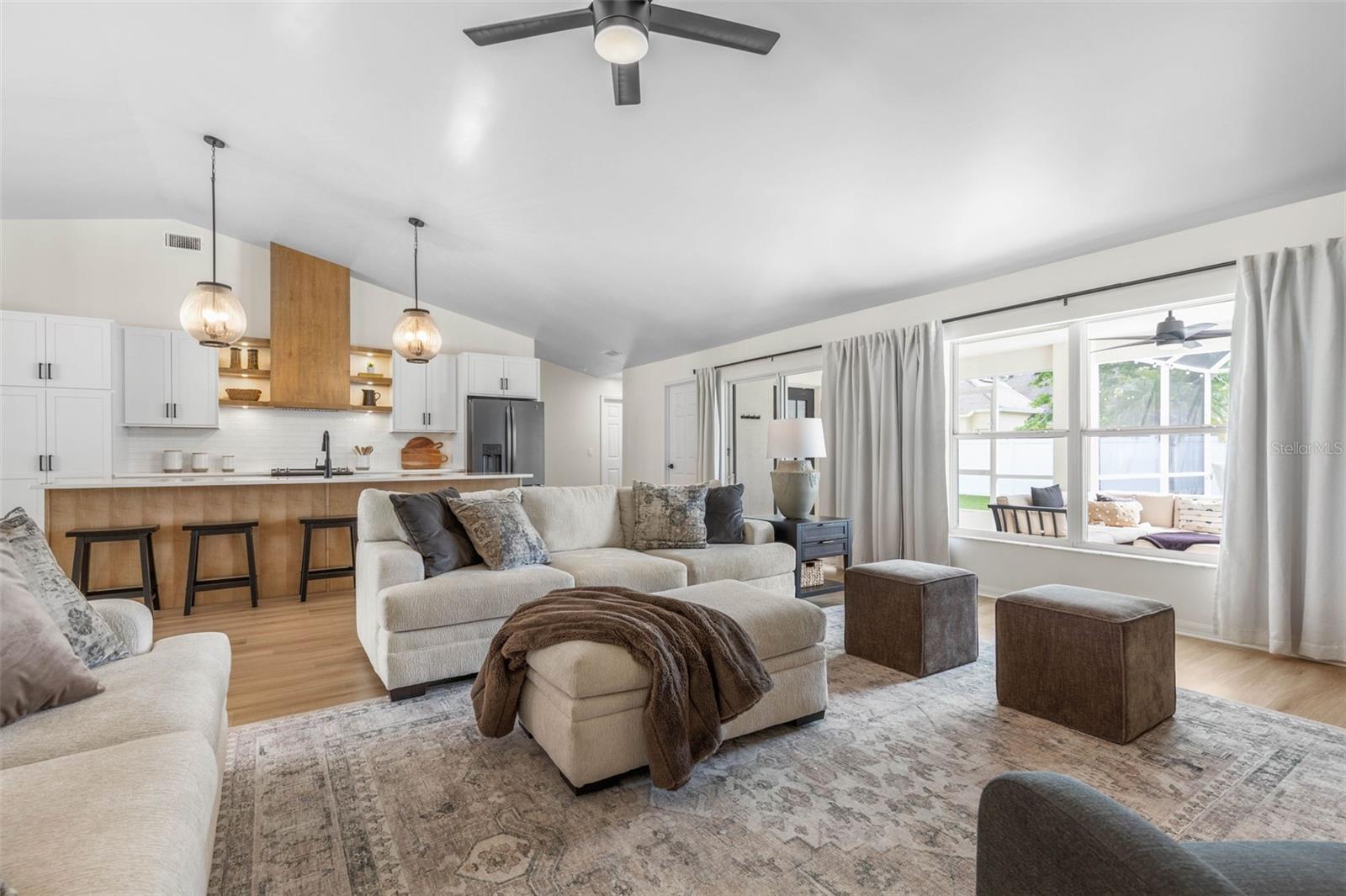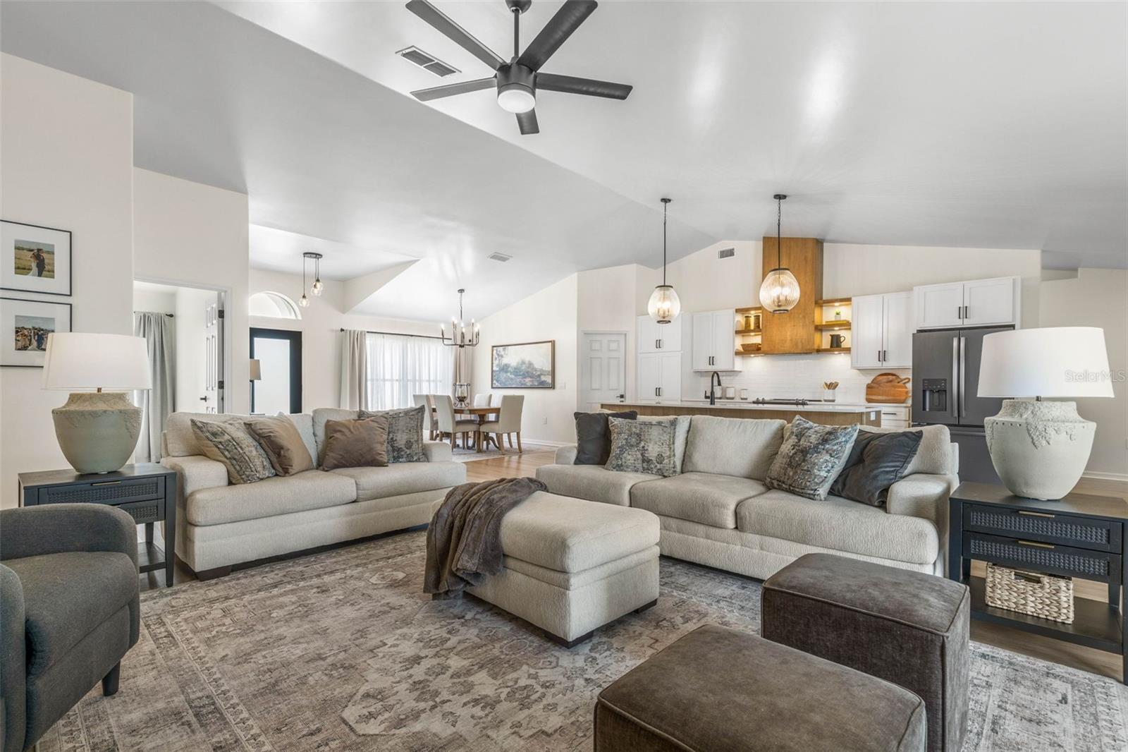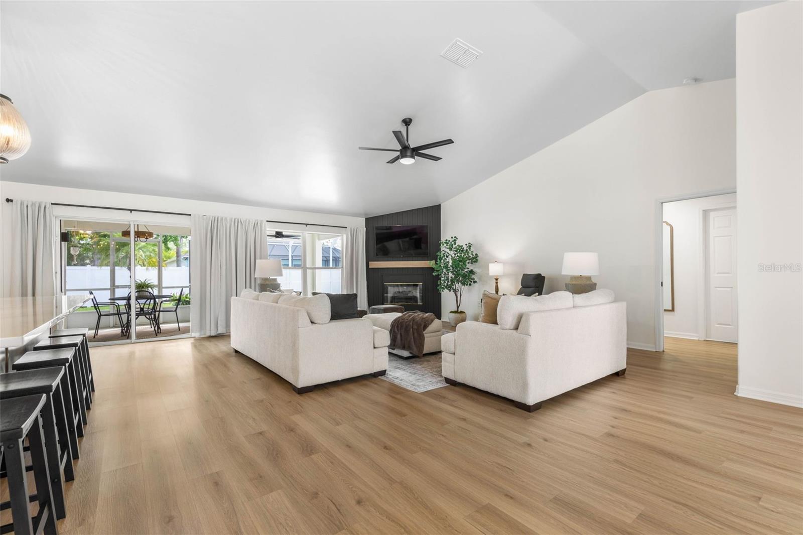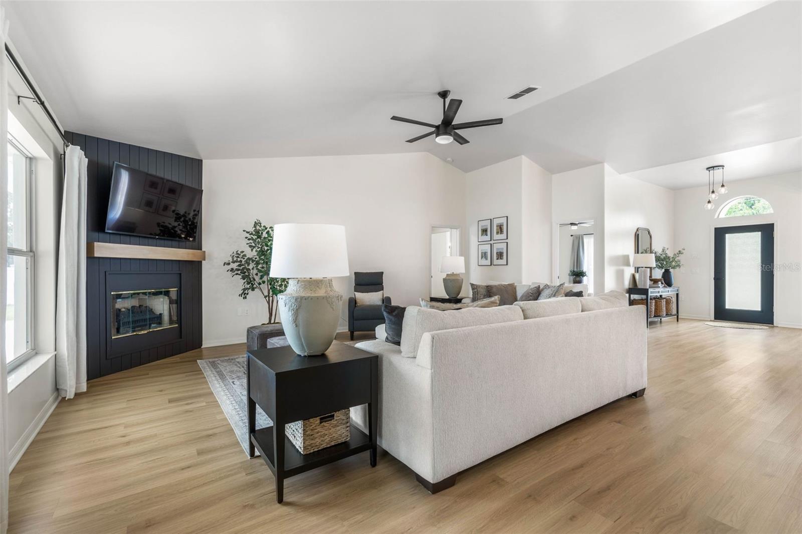 Magazine worthy- 5-Bedroom Pool Home on Expansive Double Lot – Fully furnished Step into serene sophistication with this fully renovated, move-in-ready 5-bedroom, 2.5-bath residence, perfectly positioned on a rare double lot in the Pine Lakes community of Palm Coast. Boasting 2,911 square feet under roof, this home seamlessly blends modern elegance with everyday functionality—offering the ideal setting for family living, entertaining, and relaxing in style. Meticulously updated over the past two years, the home features a new architectural shingle roof, brand-new pool lanai screening, and a regularly serviced HVAC system for worry-free living. The partially fenced yard offering privacy. The oversized lot has a storage shed, but allows for building another structure. What's your dream, a workshop, RV garage, guest cabana? This is the place dreams come true! Be sure to watch the virtual tour and read every detail on this home! Inside, discover a beautifully designed split-bedroom floor plan enhanced by new luxury vinyl plank flooring, smooth-finish walls and ceilings, and a harmonious blend of contemporary finishes throughout. The open-concept kitchen is a chef’s dream with quartz countertops, soft-close cabinetry, a built-in pantry. The spacious family room has ample natural light and a fireplace for cozy evenings. A formal dining room near the entry sets the stage for elegant dinners and memorable gatherings. The tranquil primary suite overlooks the sparkling pool and offers a true retreat with dual closets and a spa-inspired en-suite bathroom featuring double vanities, a luxurious walk-in shower, a deep soaker tub beneath a statement chandelier, and a private water closet. With four additional bedrooms—two currently serving as a home office and fitness room—this home provides space for every need. A newly added half bath enhances convenience for guests, while the laundry room and garage with built-in cabinets, sink, and fridge add to the home’s exceptional practicality. Step outside to your private oasis. The screened lanai opens to a beautifully landscaped backyard with a large pool, a detached modern storage shed, and ample space to garden, entertain, or simply unwind. Nestled in the heart of Palm Coast, Pine Lakes offers a quiet, well-established setting close to top-rated schools, shopping, dining, golf courses, and scenic walking trails. Centrally located between Daytona Beach and historic St. Augustine—with easy access to Jacksonville and Orlando—this home offers the best of Florida living. Bonus: Designer furnishings included—just bring your toothbrush.