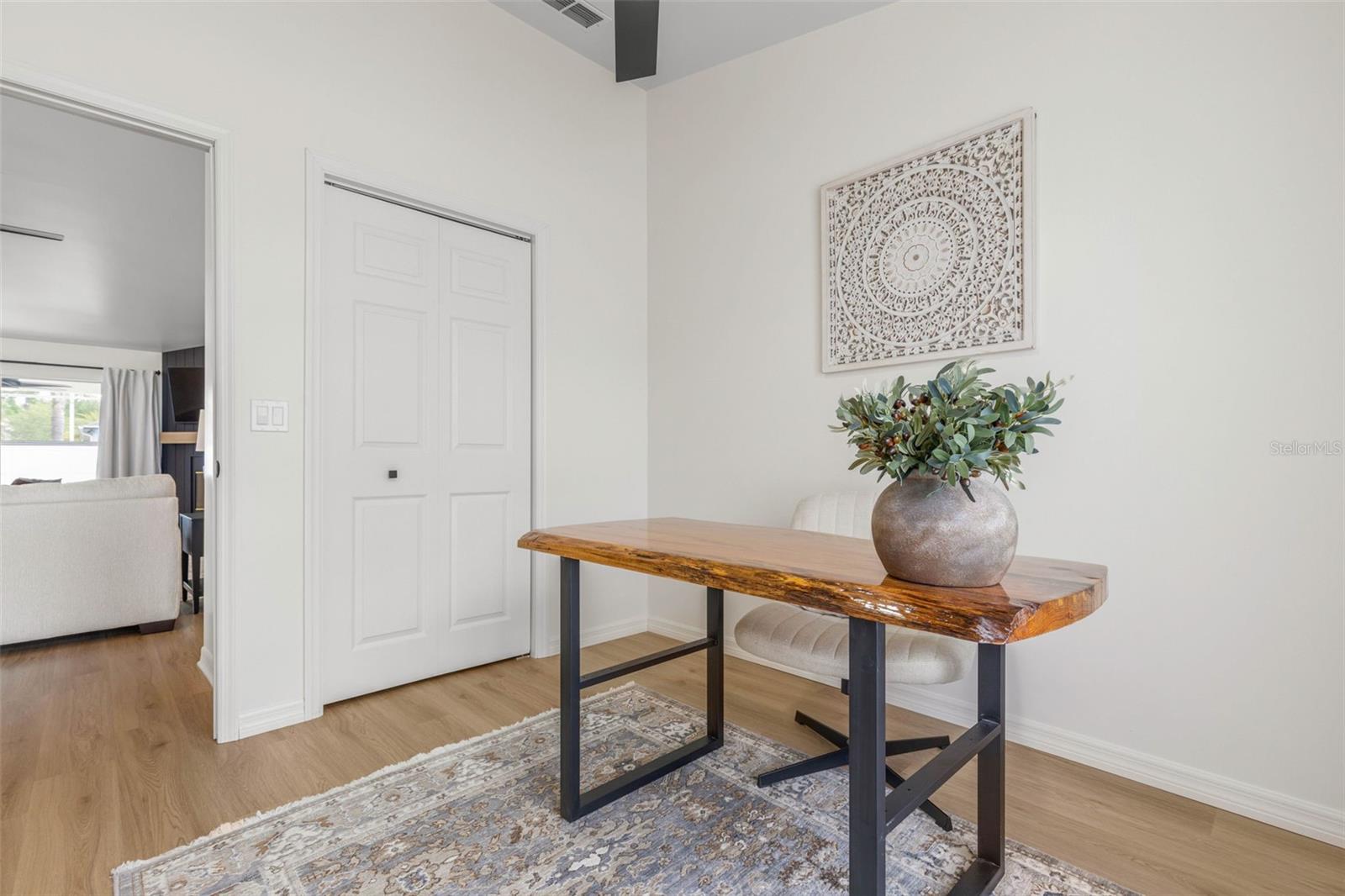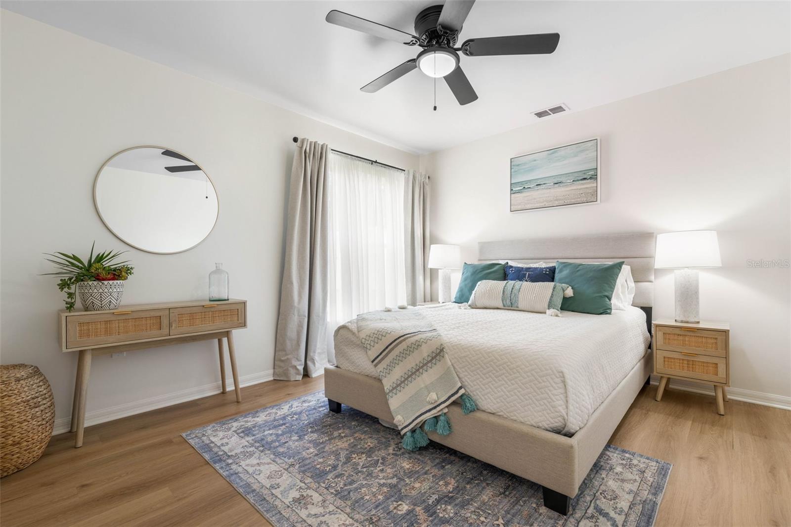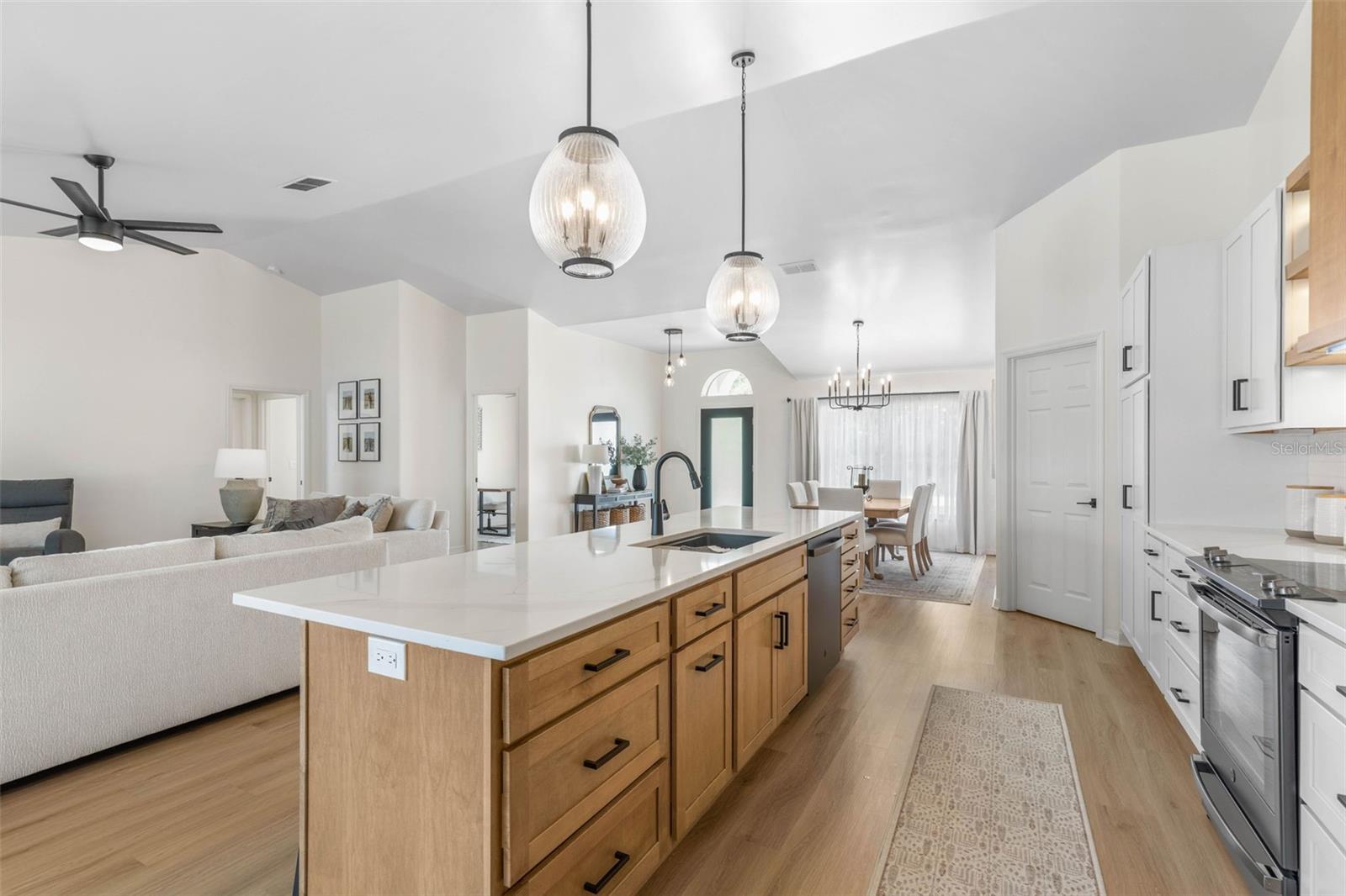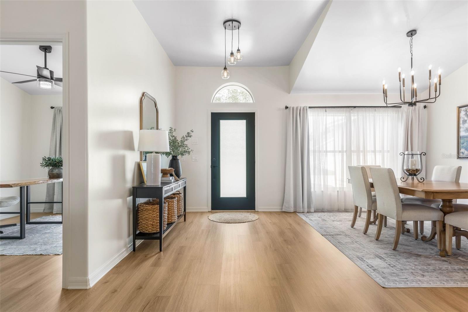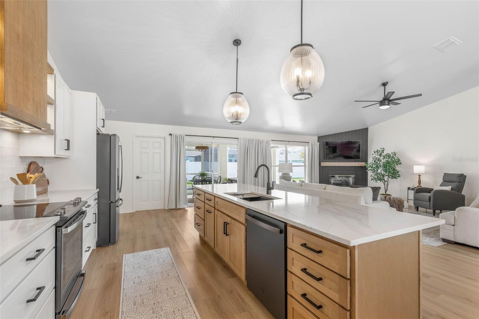 Magazine worthy- 5-Bedroom Pool Home on Expansive Double Lot – Fully furnished Step into serene sophistication with this fully renovated, move-in-ready 5-bedroom, 2.5-bath residence, perfectly positioned on a rare double lot in the Pine Lakes community of Palm Coast. Boasting 2,911 square feet under roof, this home seamlessly blends modern elegance with everyday functionality—offering the ideal setting for family living, entertaining, and relaxing in style. Meticulously updated over the past two years, the home features a new architectural shingle roof, brand-new pool lanai screening, and a regularly serviced HVAC system for worry-free living. The partially fenced yard offering privacy. The oversized lot has a storage shed, but allows for building another structure. What's your dream, a workshop, RV garage, guest cabana? This is the place dreams come true! Be sure to watch the virtual tour and read every detail on this home! Inside, discover a beautifully designed split-bedroom floor plan enhanced by new luxury vinyl plank flooring, smooth-finish walls and ceilings, and a harmonious blend of contemporary finishes throughout. The open-concept kitchen is a chef’s dream with quartz countertops, soft-close cabinetry, a built-in pantry. The spacious family room has ample natural light and a fireplace for cozy evenings. A formal dining room near the entry sets the stage for elegant dinners and memorable gatherings. The tranquil primary suite overlooks the sparkling pool and offers a true retreat with dual closets and a spa-inspired en-suite bathroom featuring double vanities, a luxurious walk-in shower, a deep soaker tub beneath a statement chandelier, and a private water closet. With four additional bedrooms—two currently serving as a home office and fitness room—this home provides space for every need. A newly added half bath enhances convenience for guests, while the laundry room and garage with built-in cabinets, sink, and fridge add to the home’s exceptional practicality. Step outside to your private oasis. The screened lanai opens to a beautifully landscaped backyard with a large pool, a detached modern storage shed, and ample space to garden, entertain, or simply unwind. Nestled in the heart of Palm Coast, Pine Lakes offers a quiet, well-established setting close to top-rated schools, shopping, dining, golf courses, and scenic walking trails. Centrally located between Daytona Beach and historic St. Augustine—with easy access to Jacksonville and Orlando—this home offers the best of Florida living. Bonus: Designer furnishings included—just bring your toothbrush.